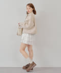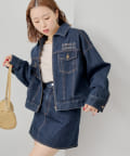 ・同素材のスカートと合わせたセットアップコーデもおすすめです。