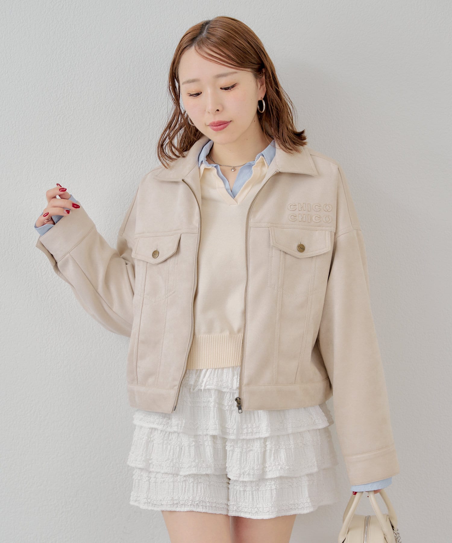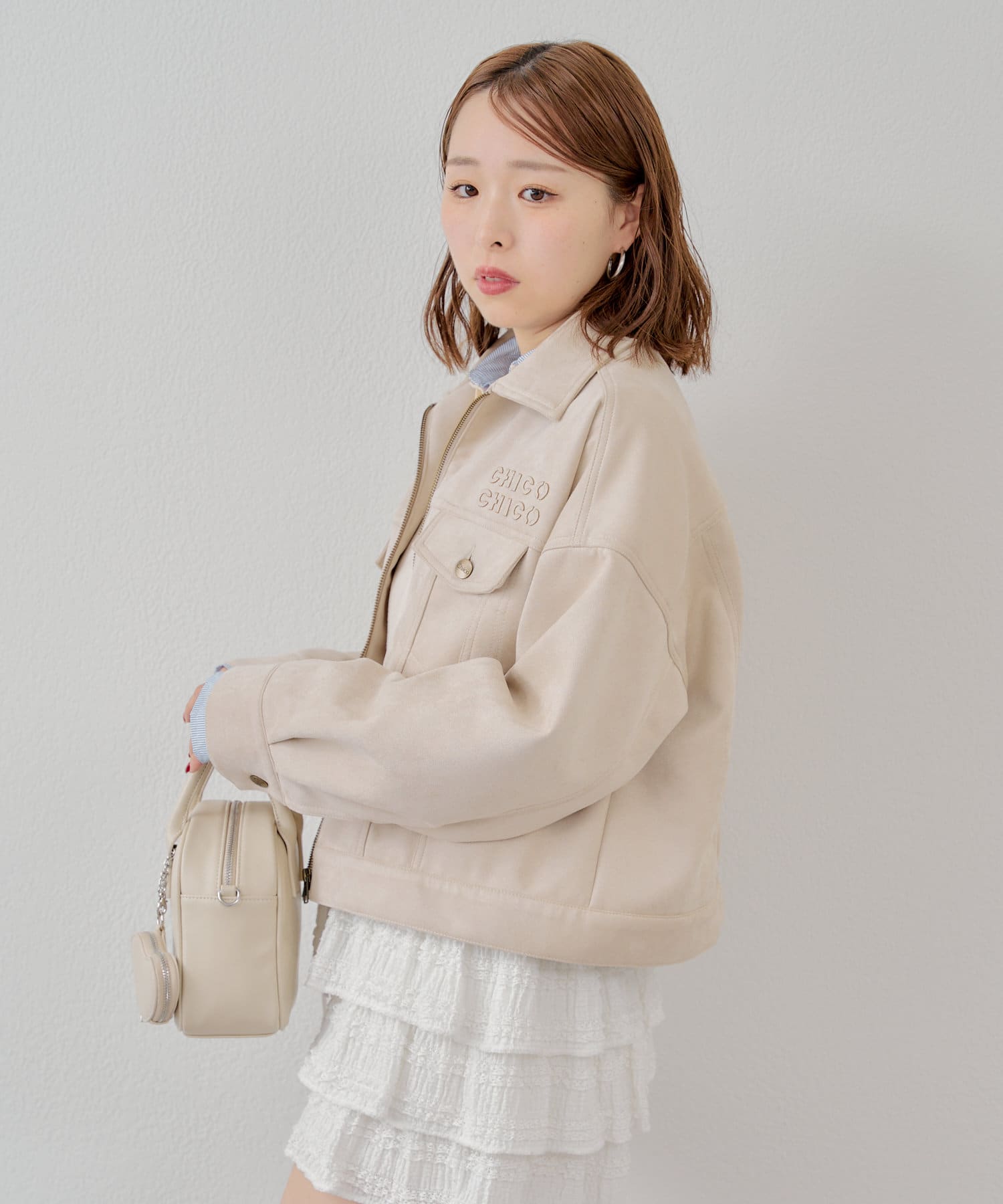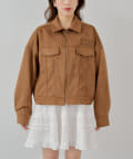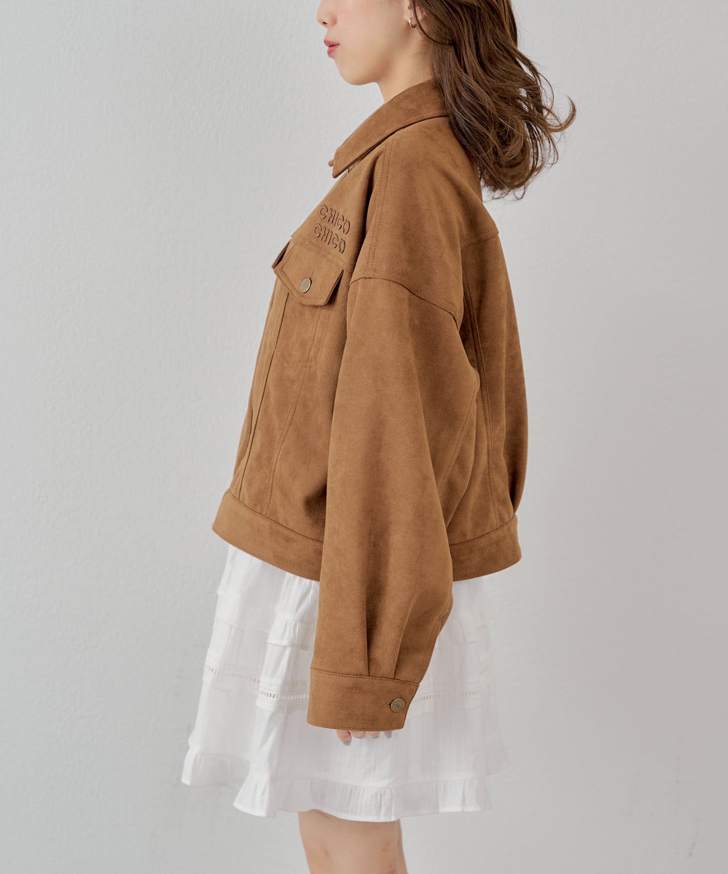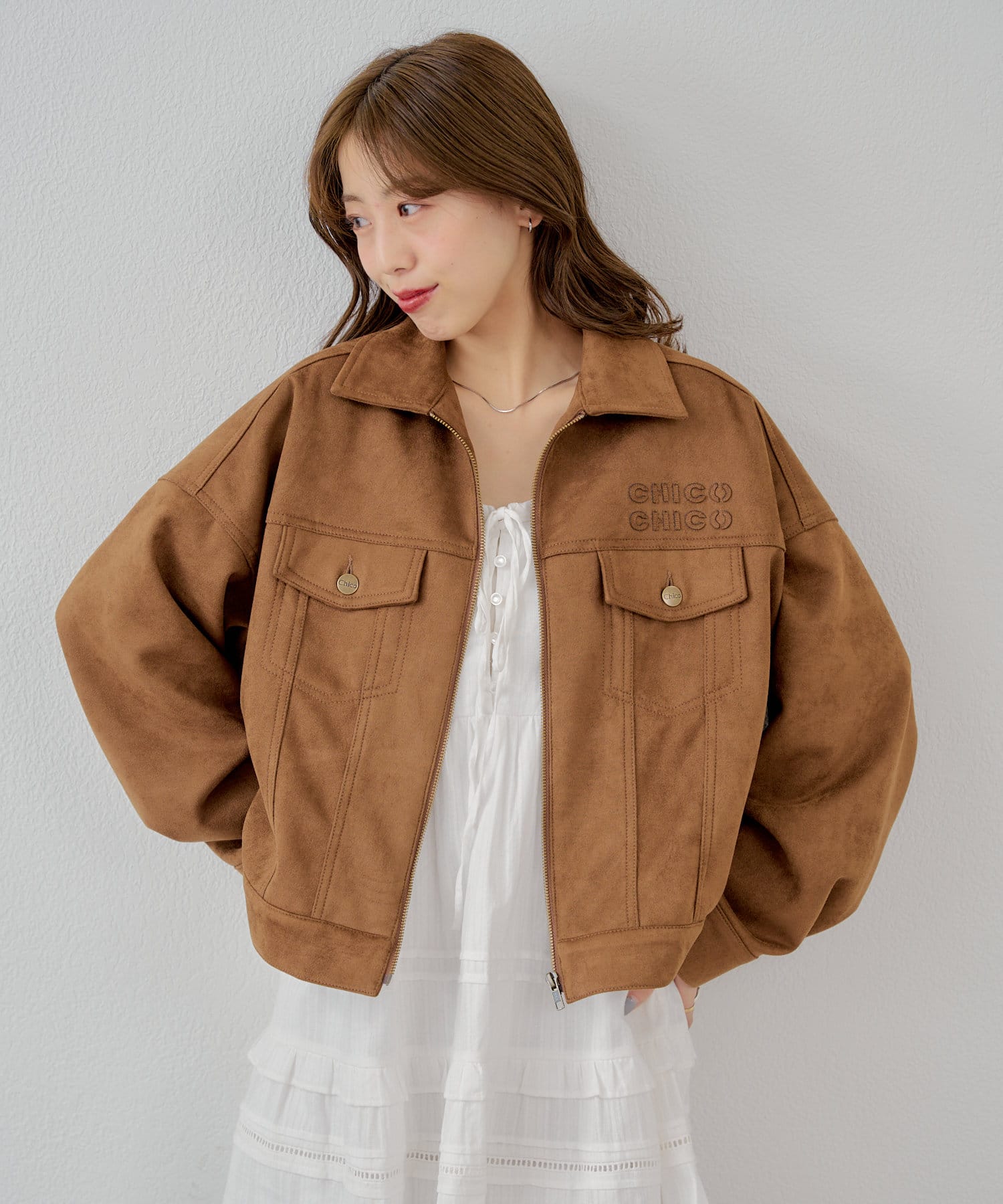 ・【お気に入り総選挙1位】胸ロゴショート丈スエードジップブルゾン