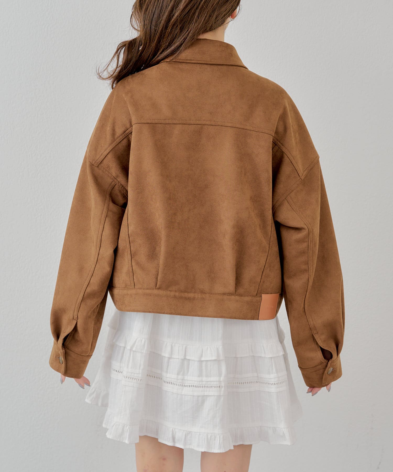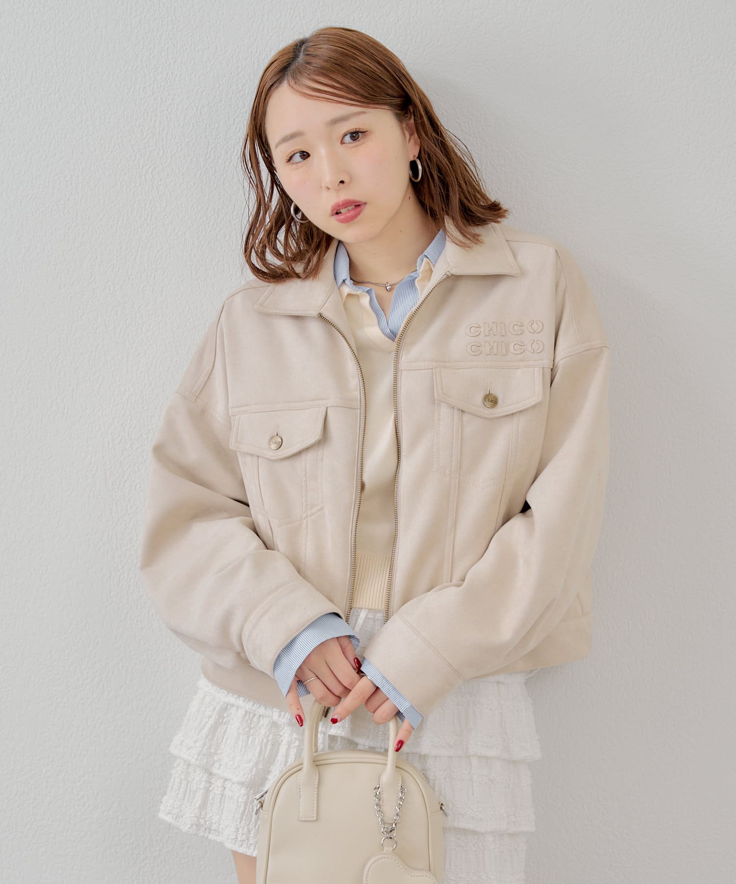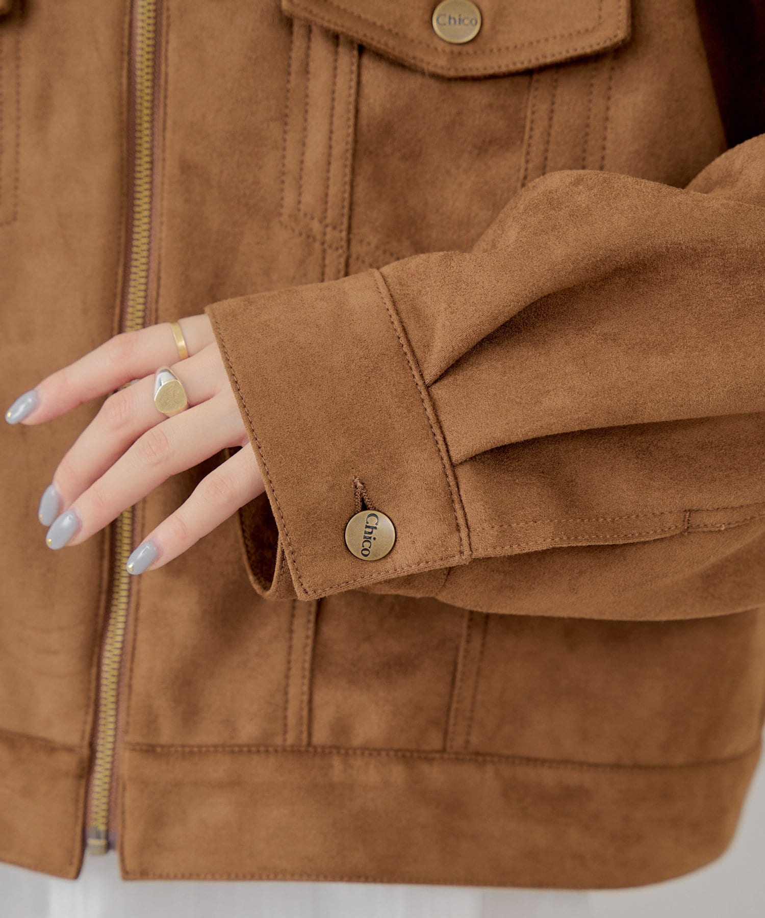・【お気に入り総選挙1位】胸ロゴショート丈スエードジップブルゾン
