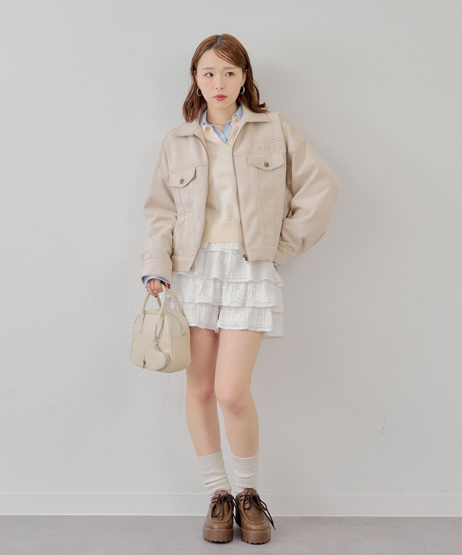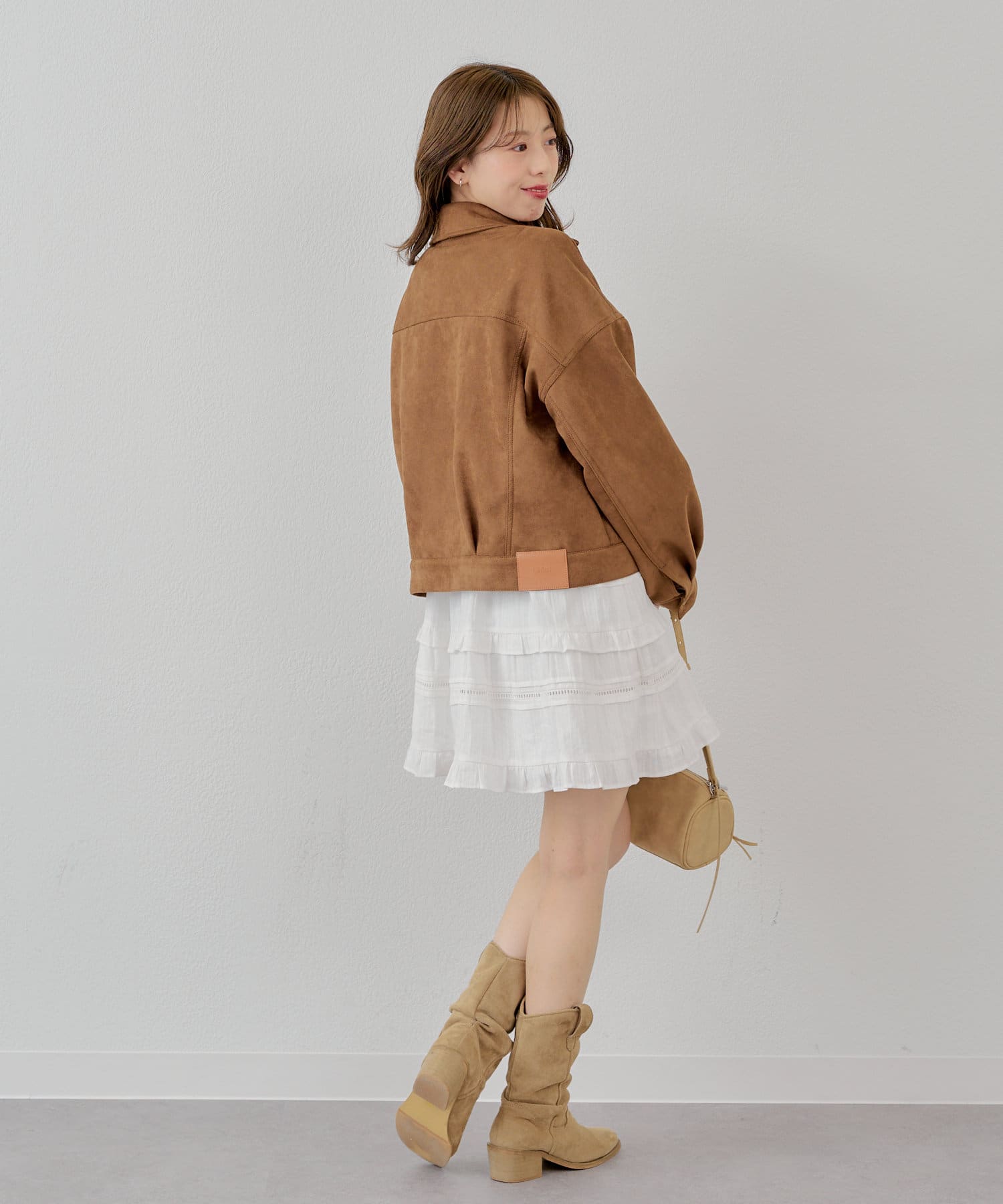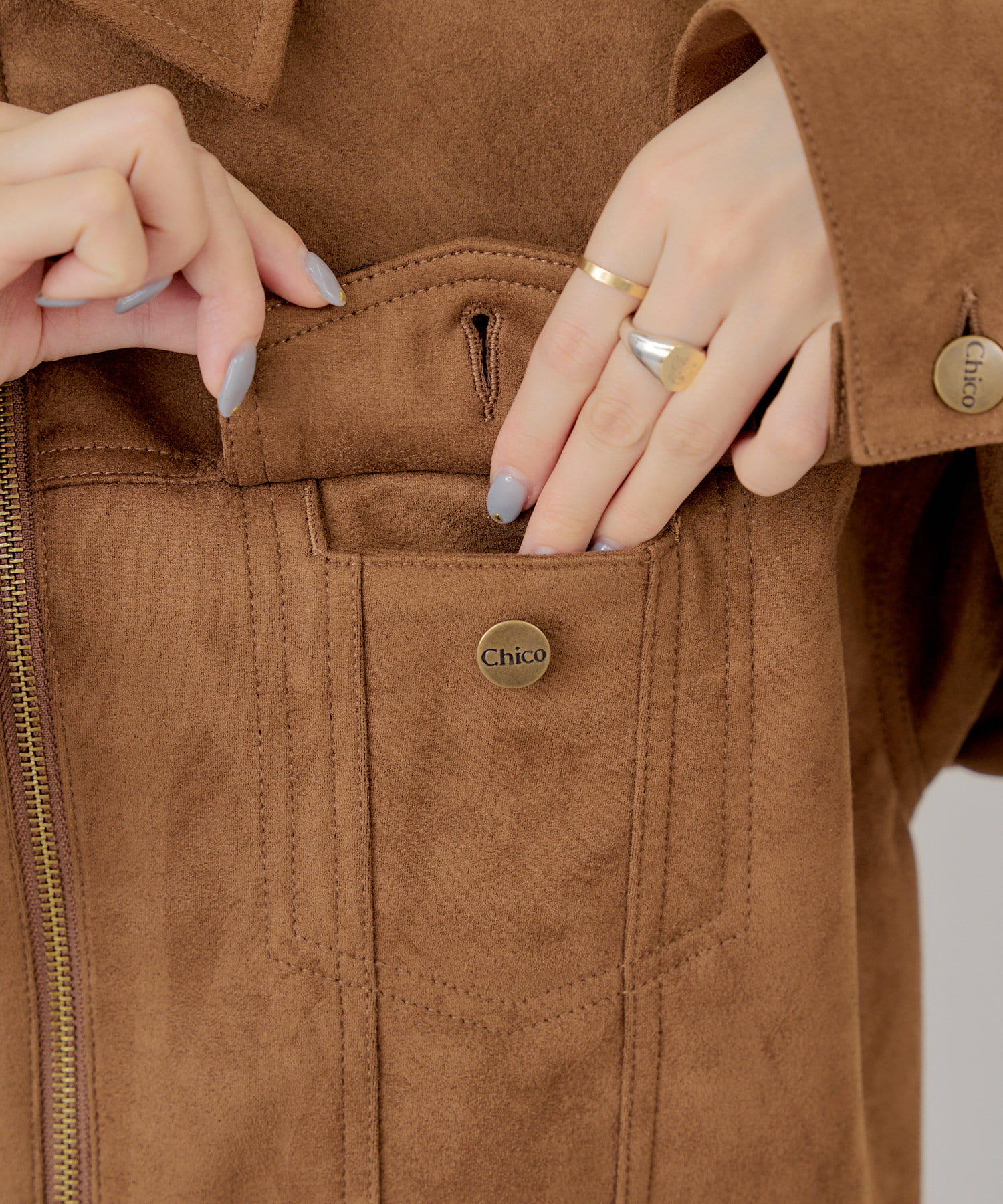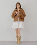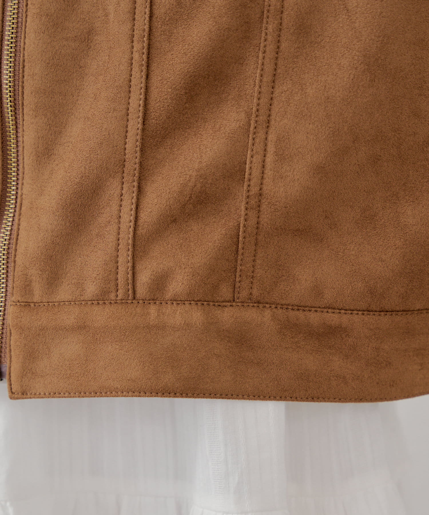 ・【お気に入り総選挙1位】胸ロゴショート丈スエードジップブルゾン