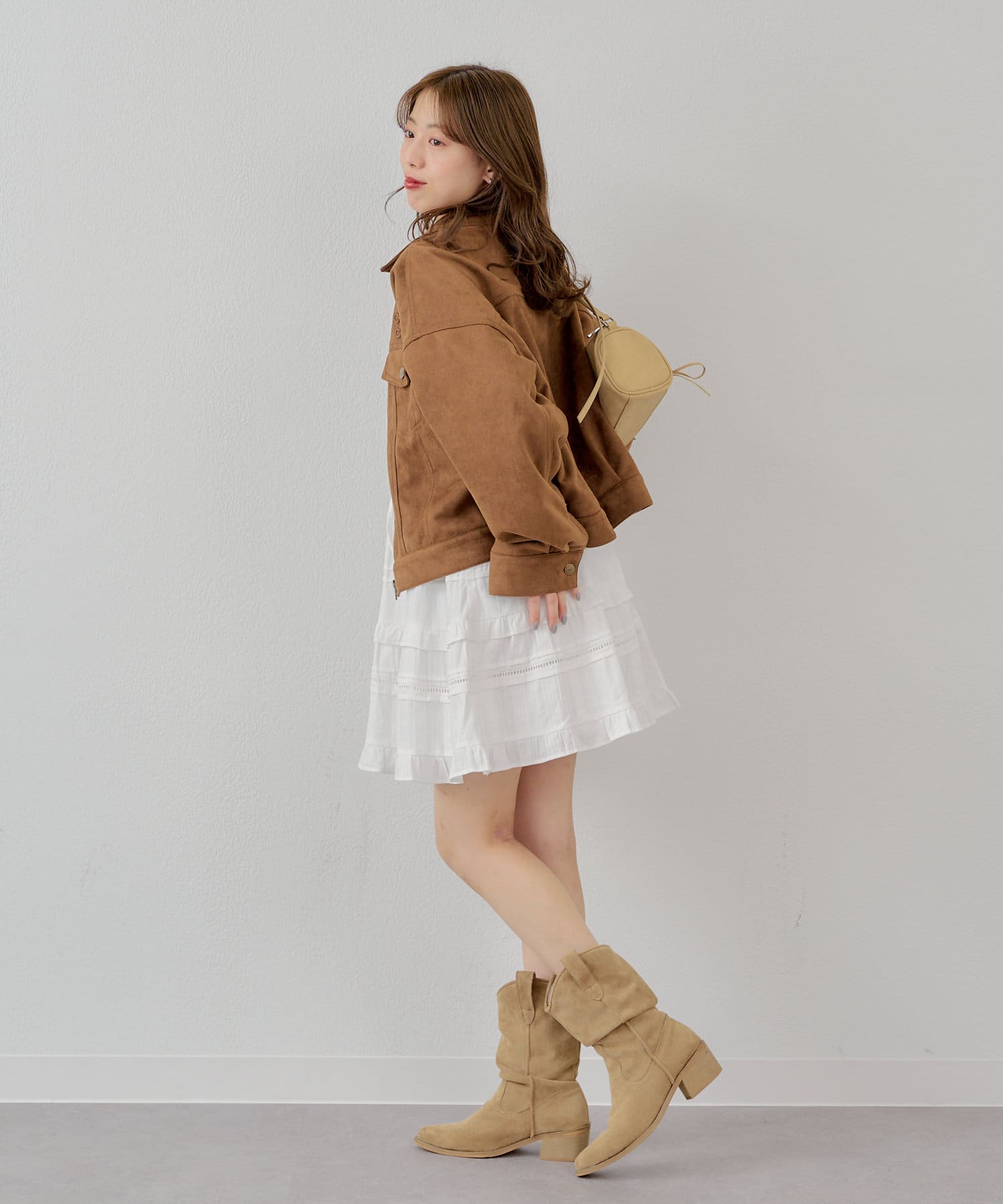 ・デニム生地はデニムオンデニムスタイル、スエード生地はレースアイテムと合わせたボヘミアンスタイルがおすすめです。