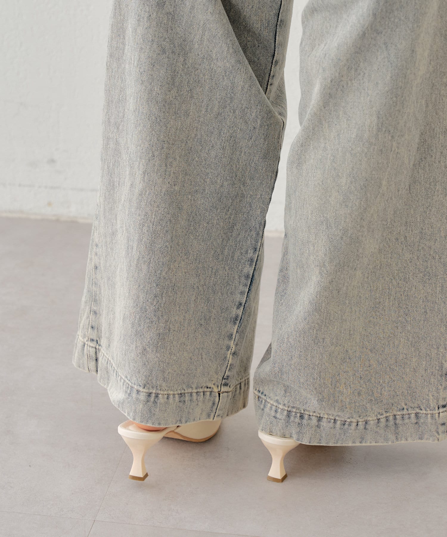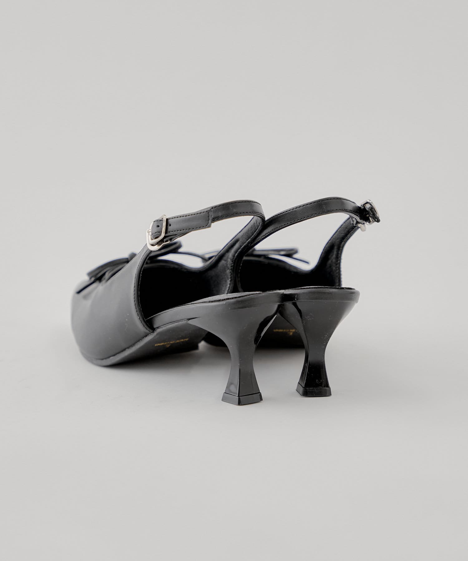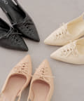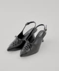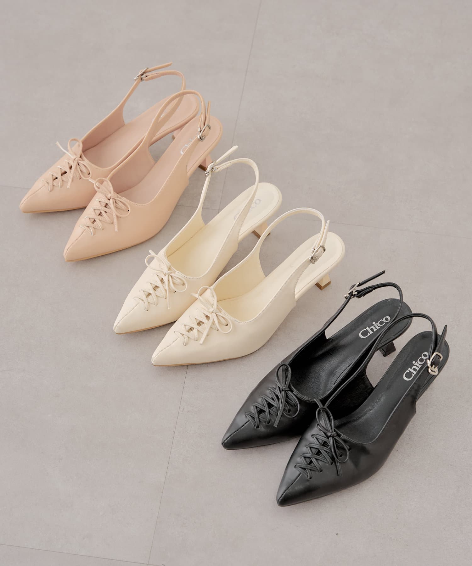 レースアップデザインが目を惹くポインテッドトゥミュール