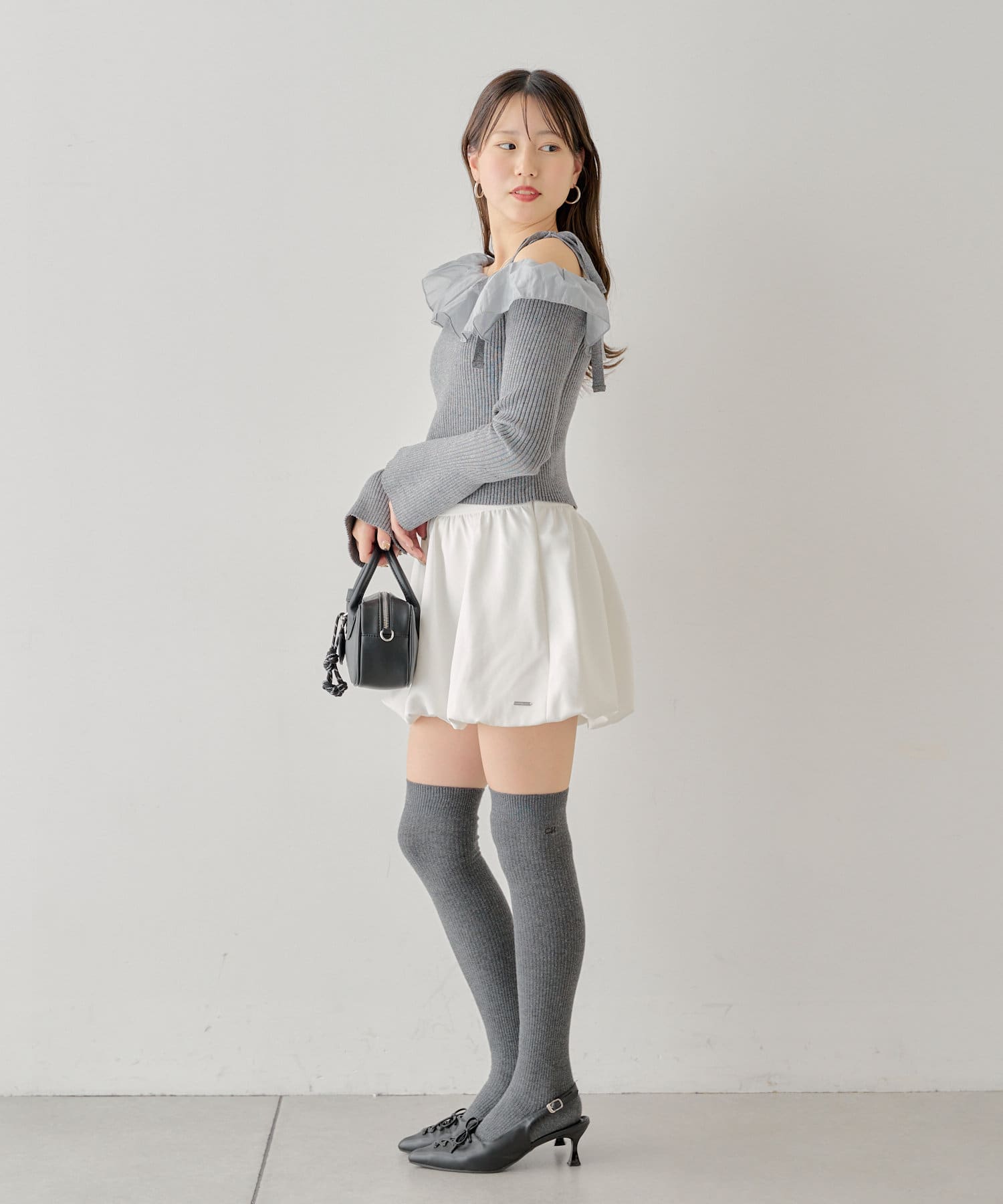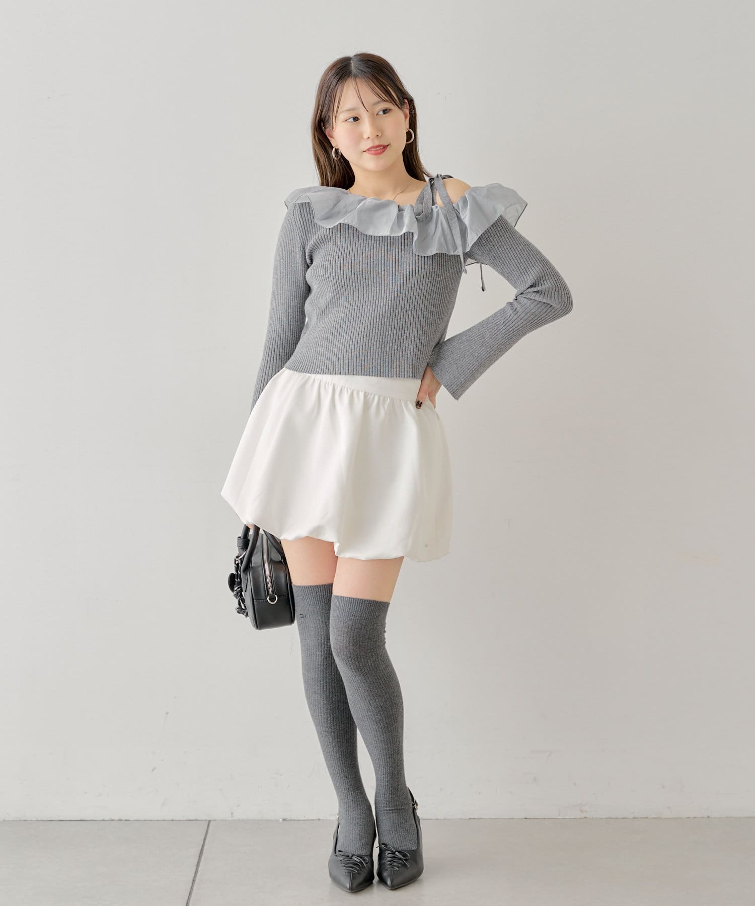 ・ロングボトム合わせだけでなく、今期はシアーソックスとミニボトムと合わせたスタイリングもおすすめです。