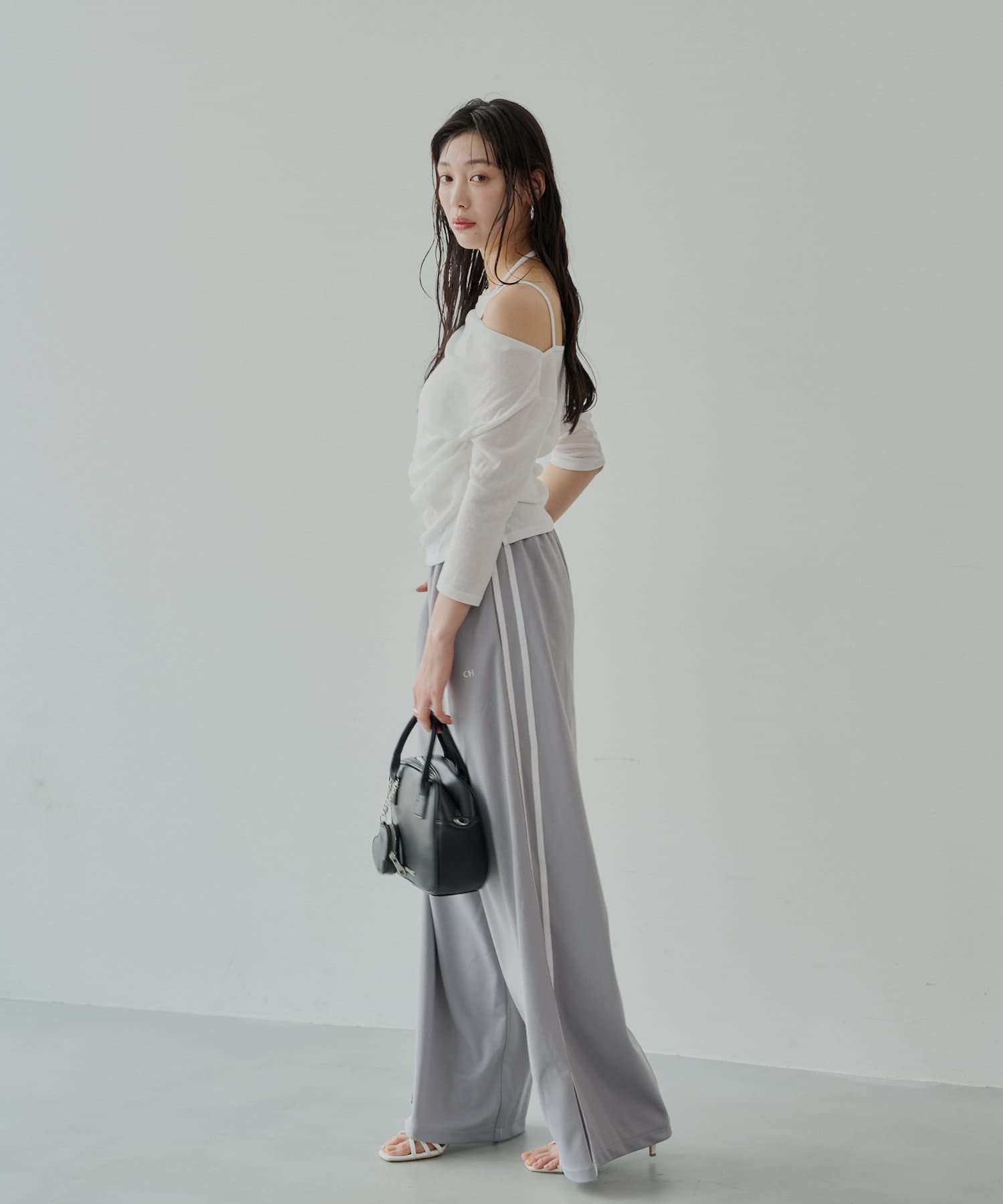 ・コンパクトトップスやオフショルトップスでちらっと肌見せするとトレンドライクな印象に。