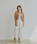 ・レースのロングスカートを合わると女性らしい柔らかい雰囲気で着ていただけます。