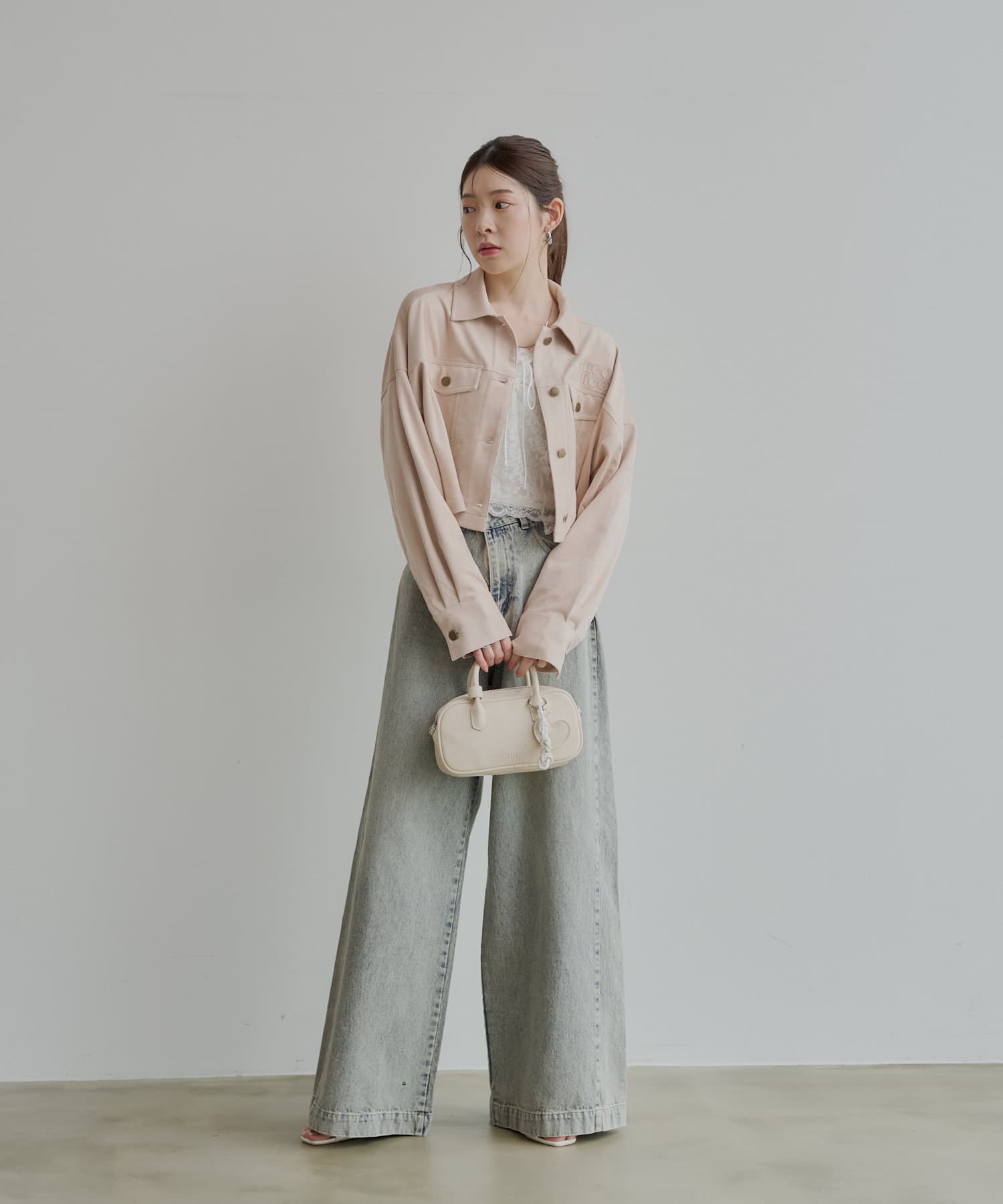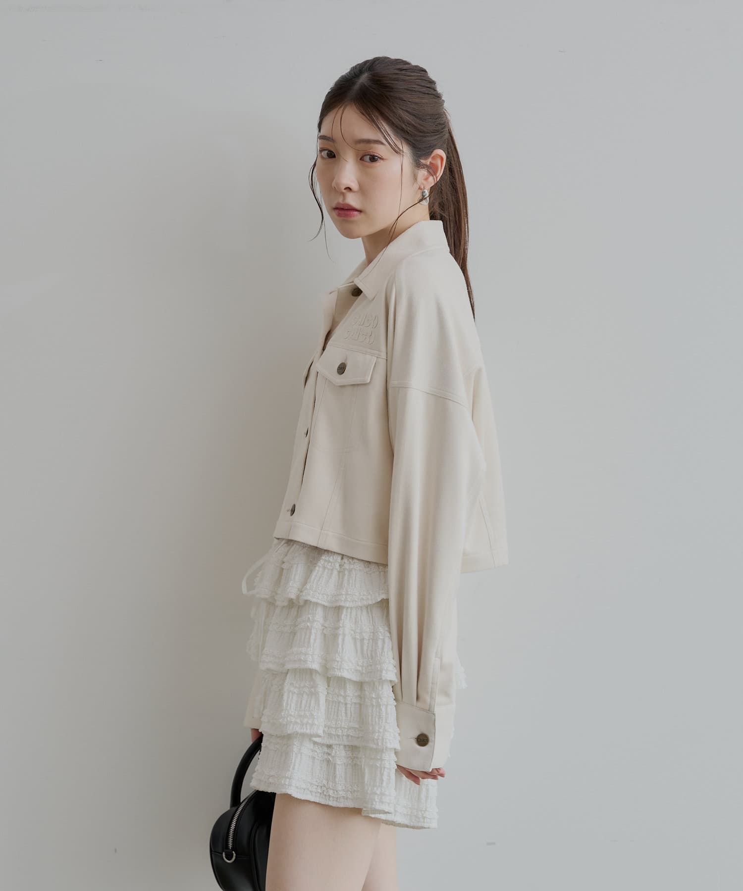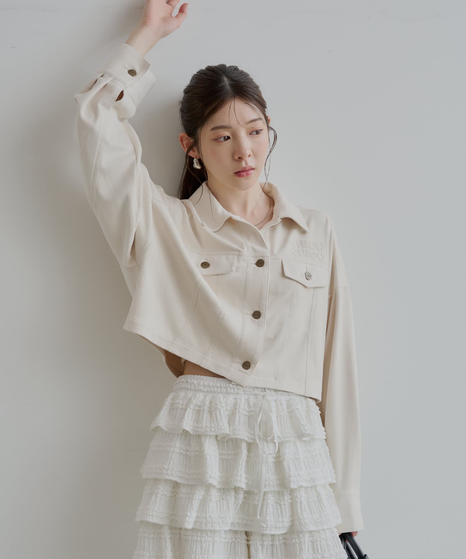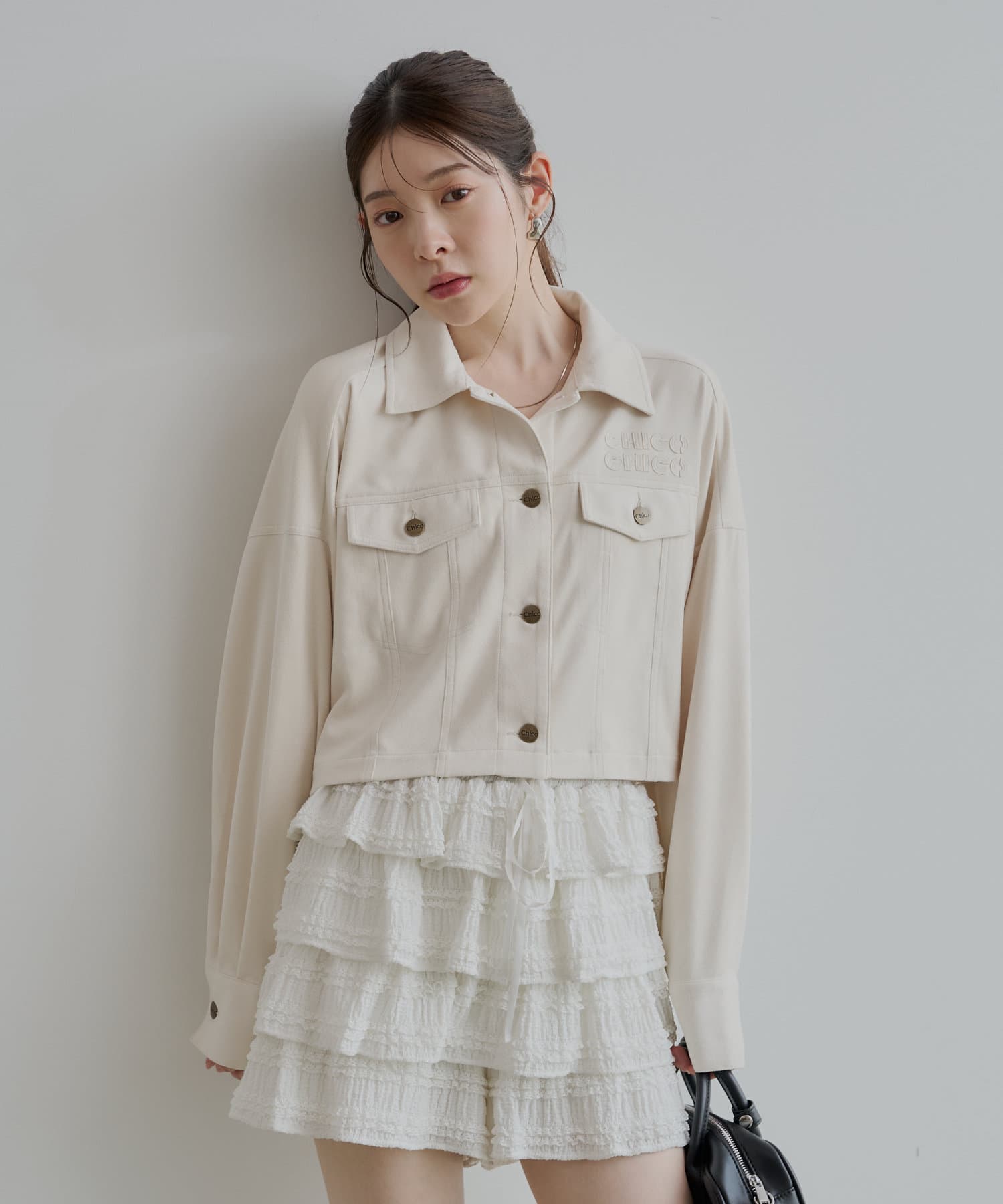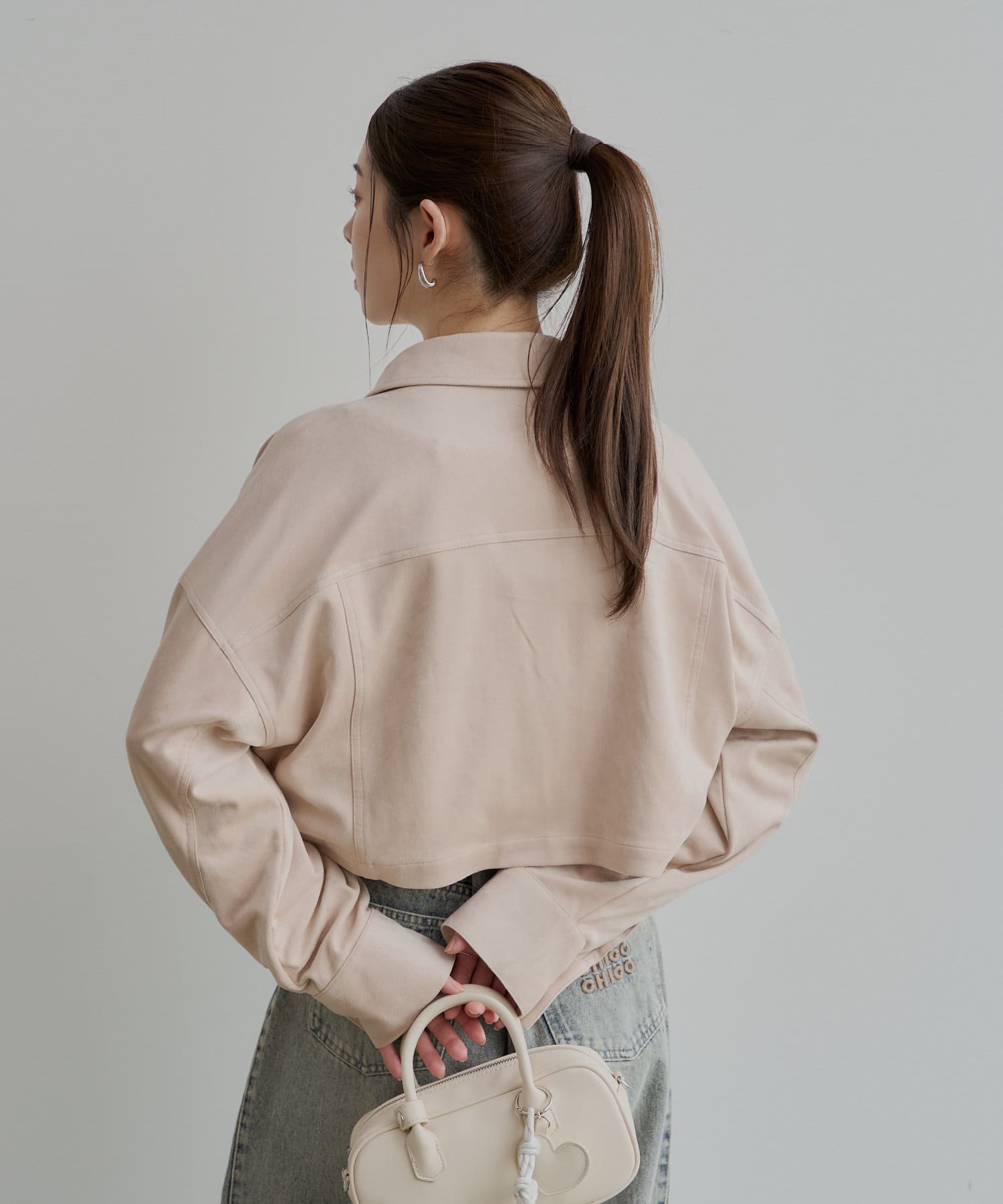 大人気の胸ロゴショート丈スエードジップブルゾンがシャツバージョンになって再登場!
