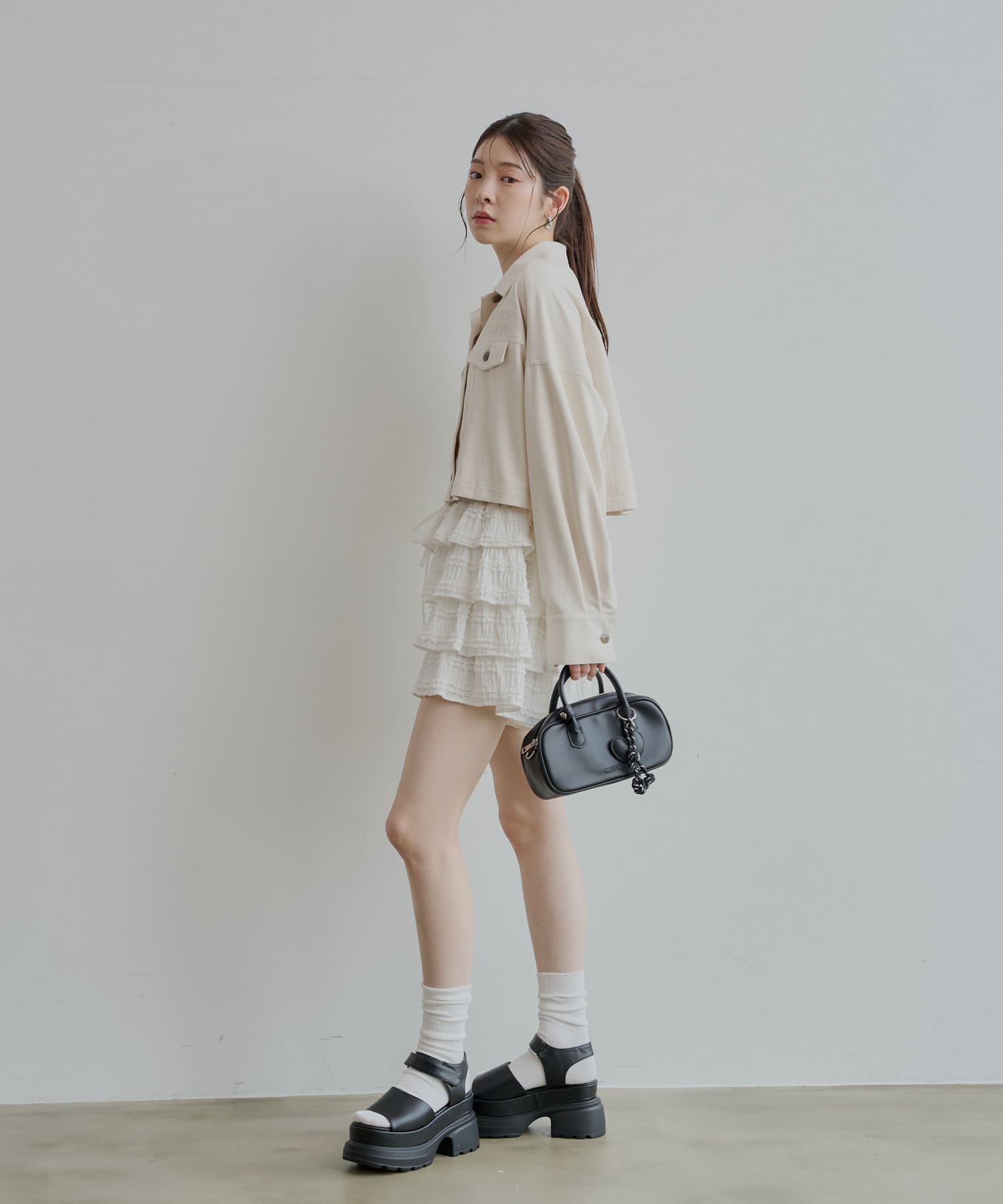 ・クロップド丈なのでロングボトム合わせでスタイルアップしたスタイリングが叶います。