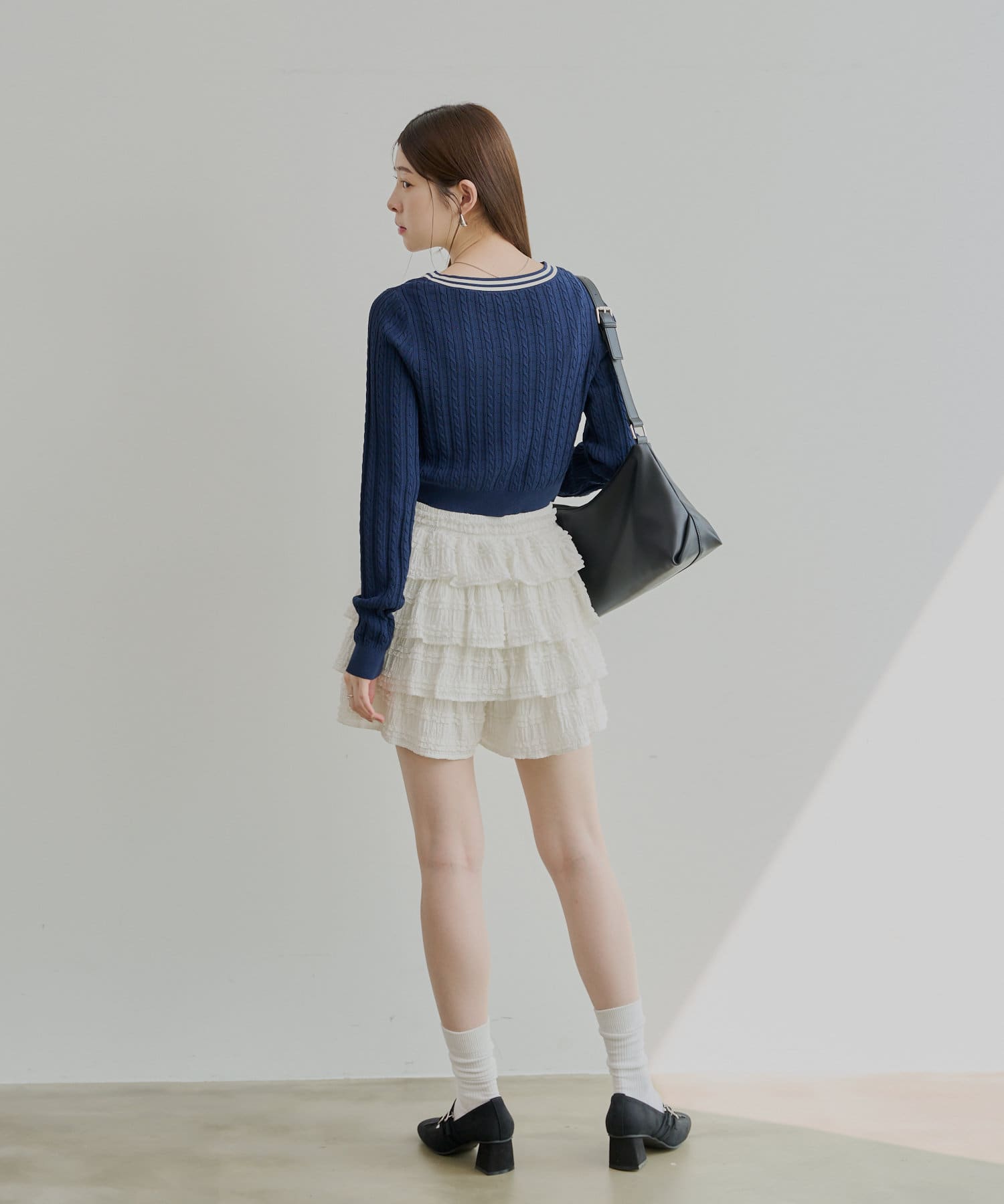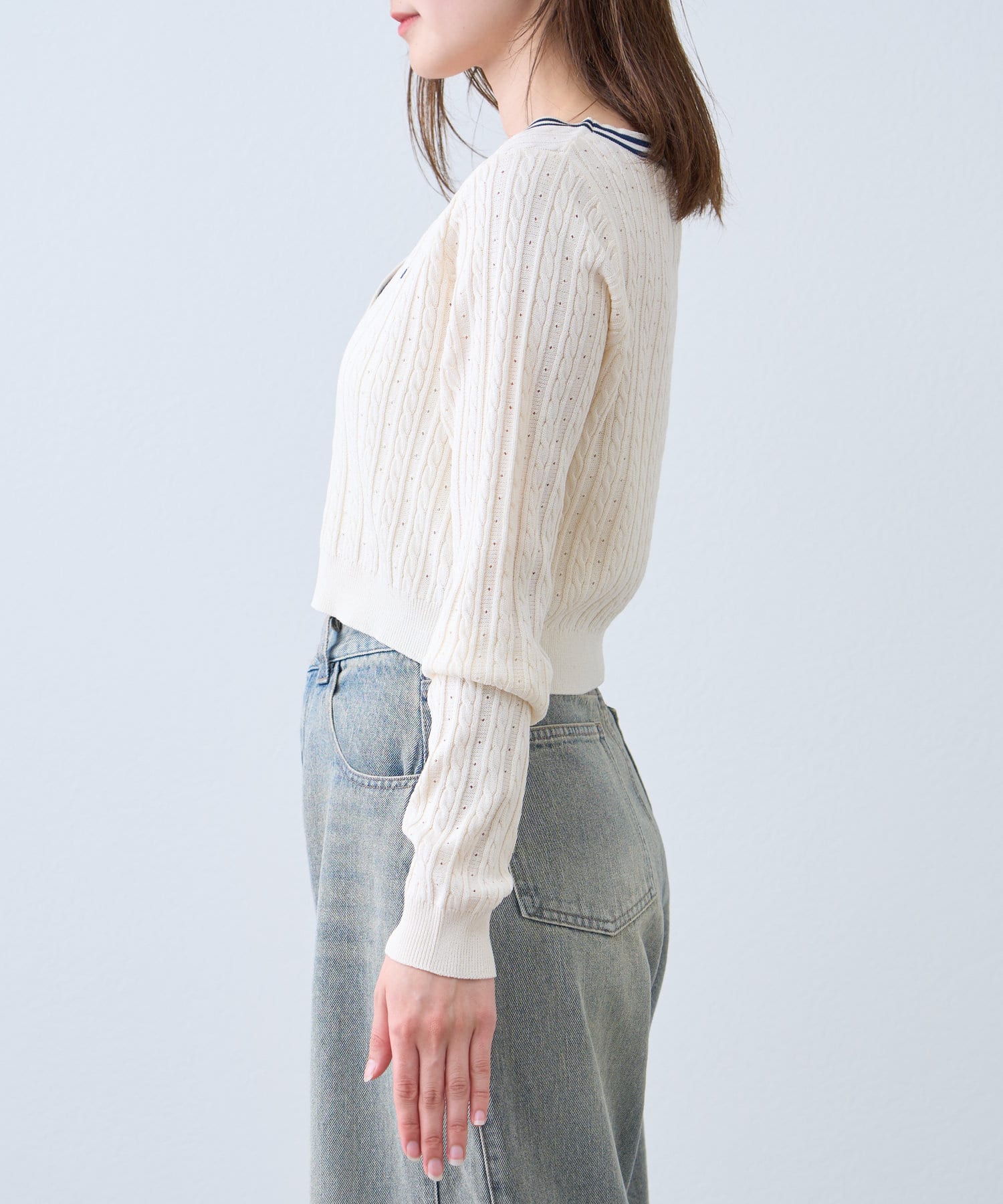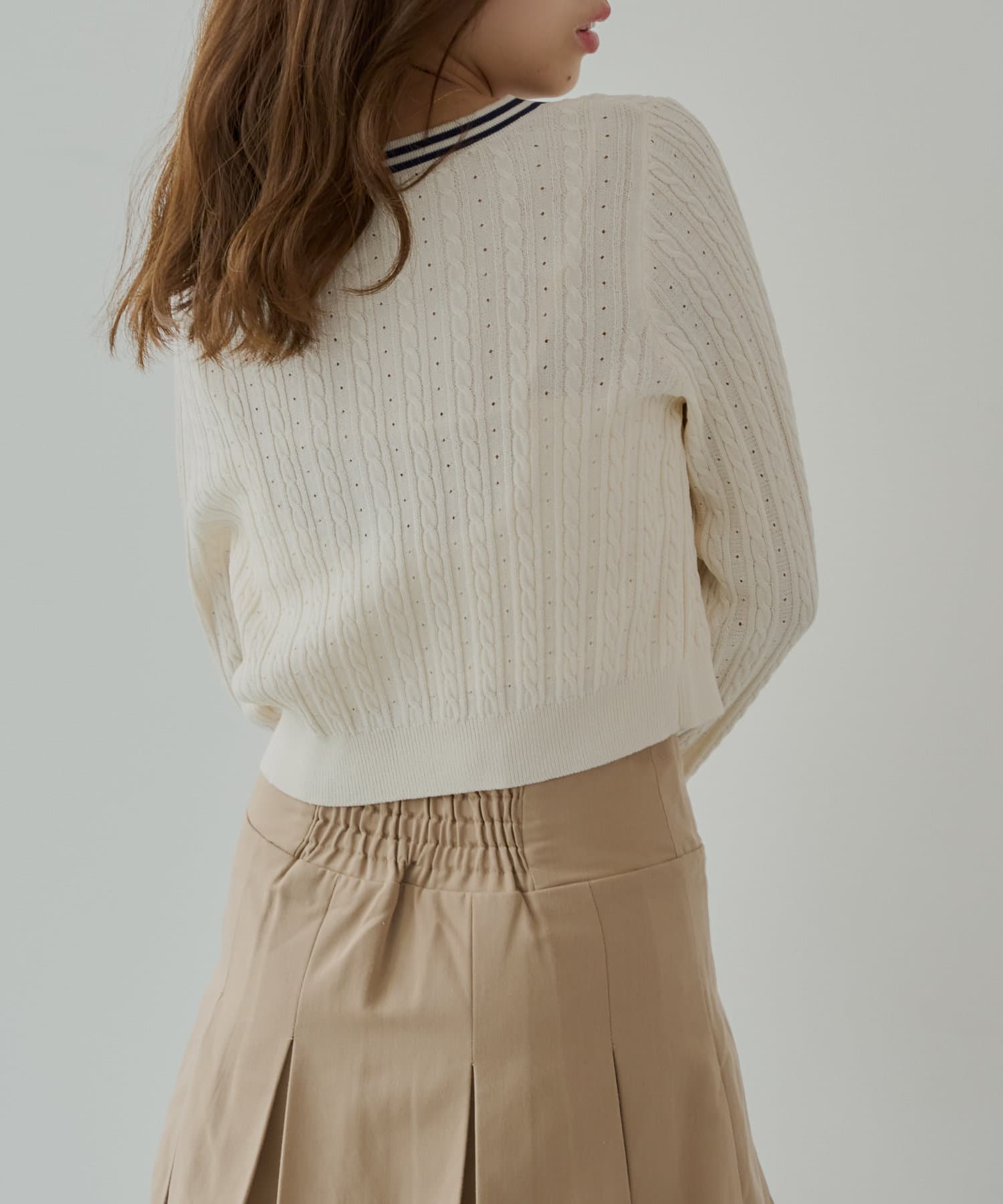 ・一つ一つ丁寧に編まれたケーブルは、立体感があり、高級感のある仕上がりです。