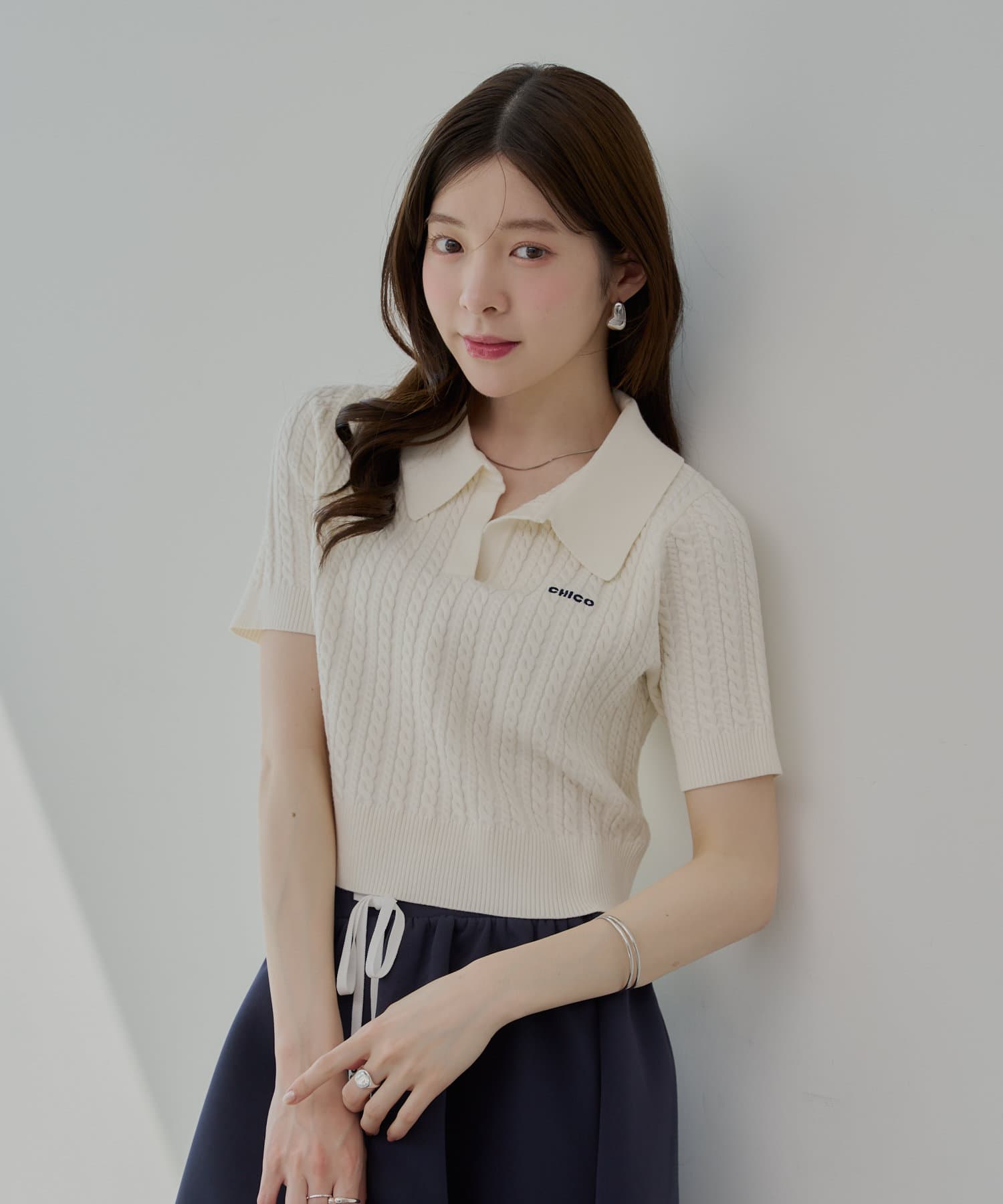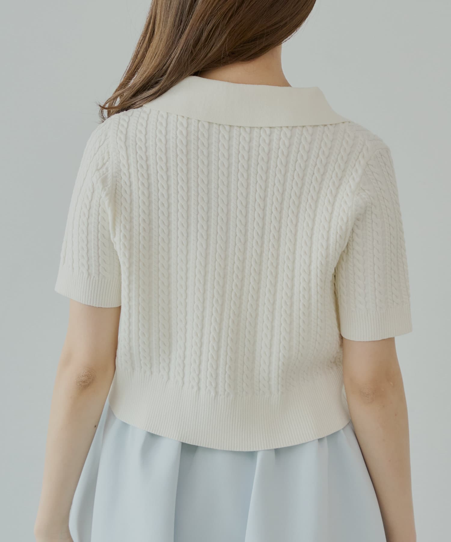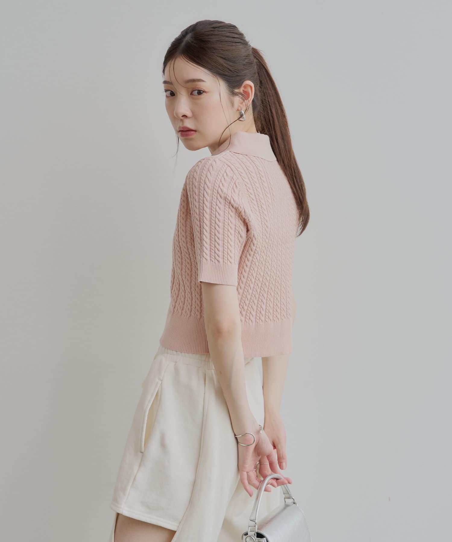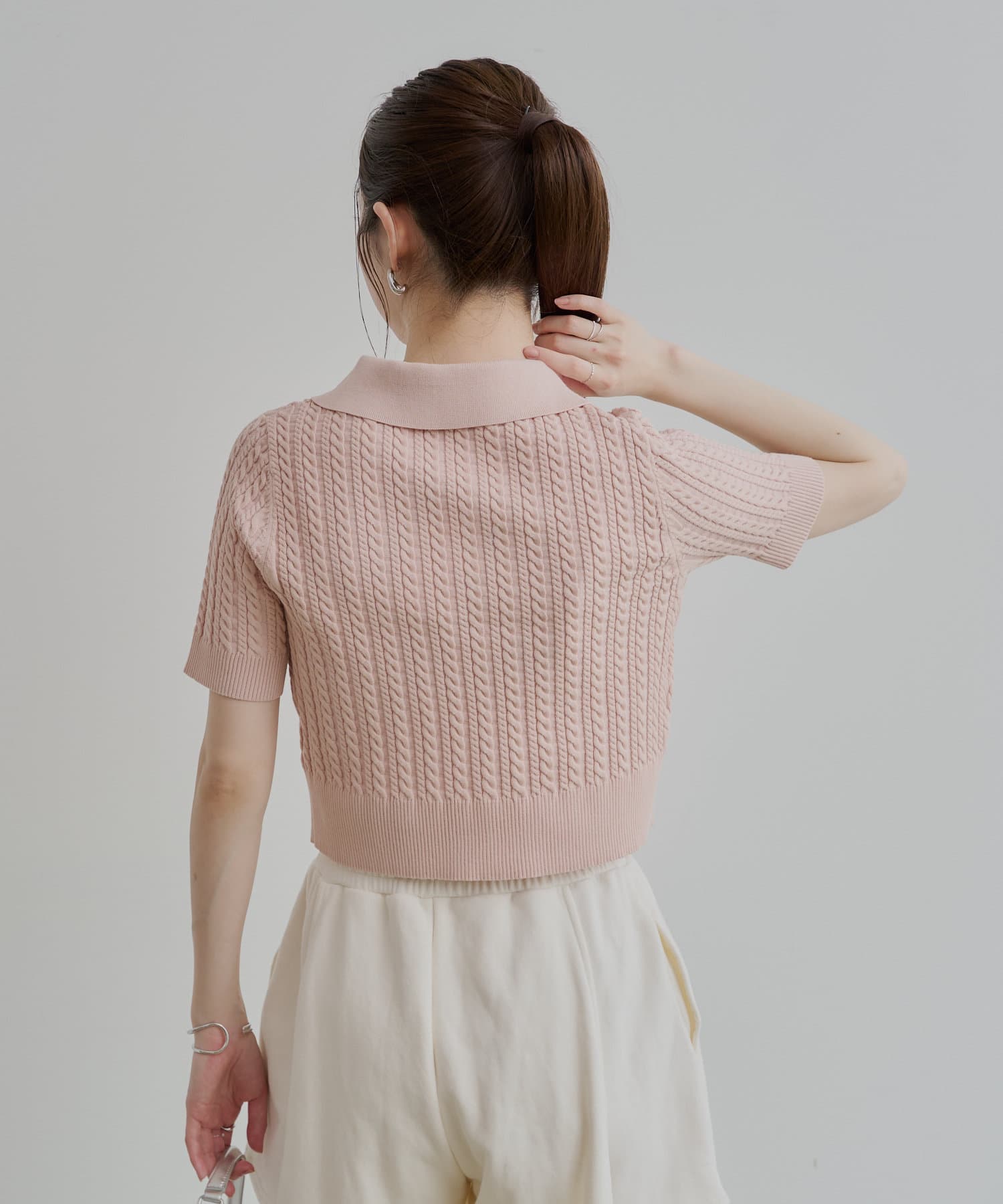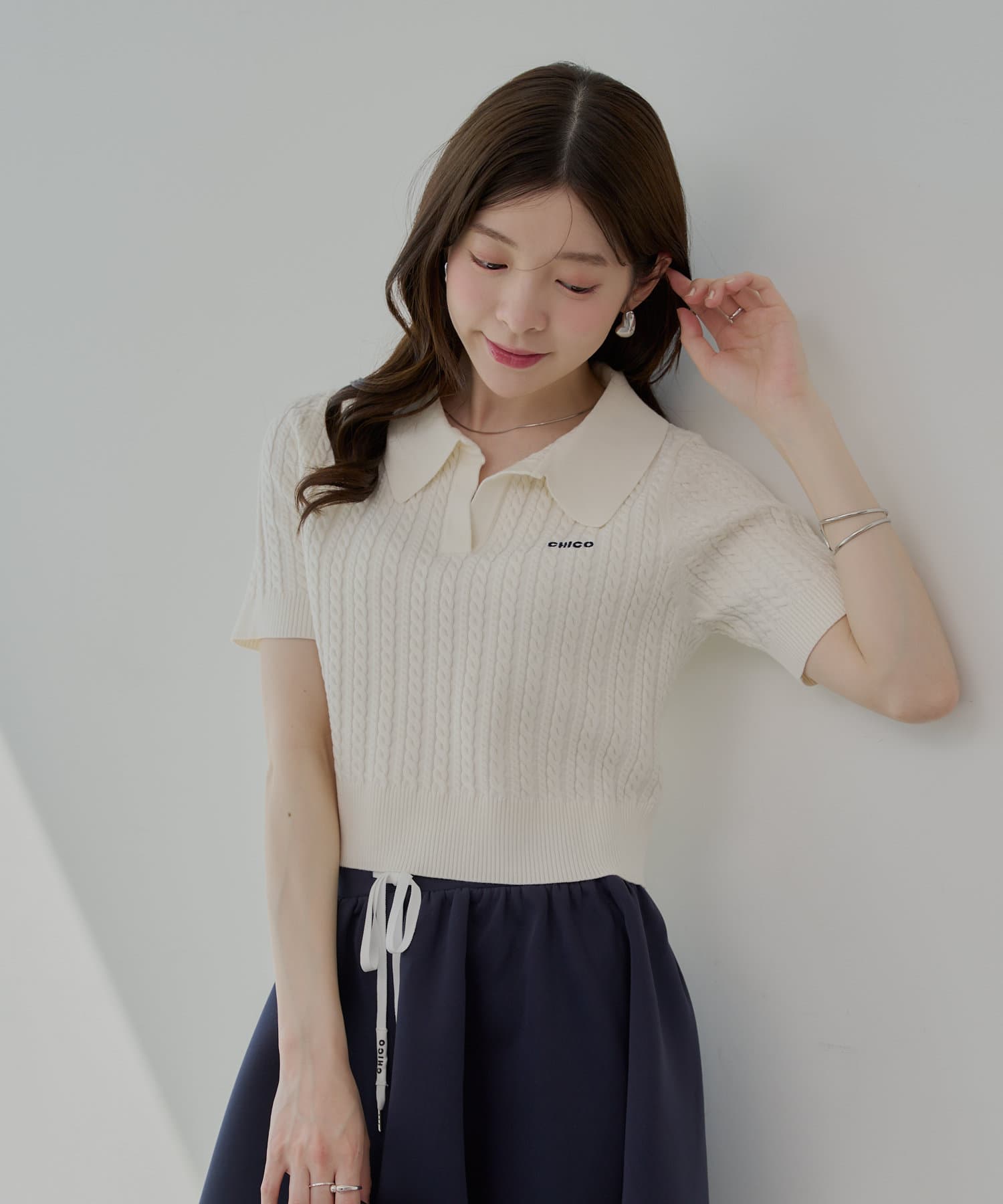 柔らかな肌触りと立体的なケーブル編みが魅力の大人可愛いニットポロ