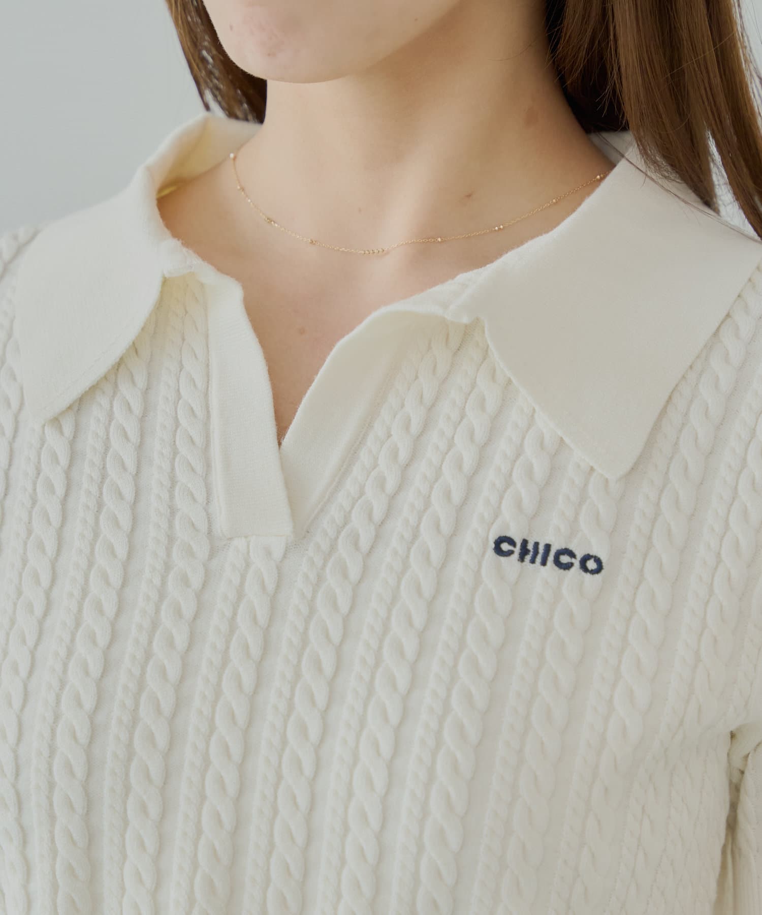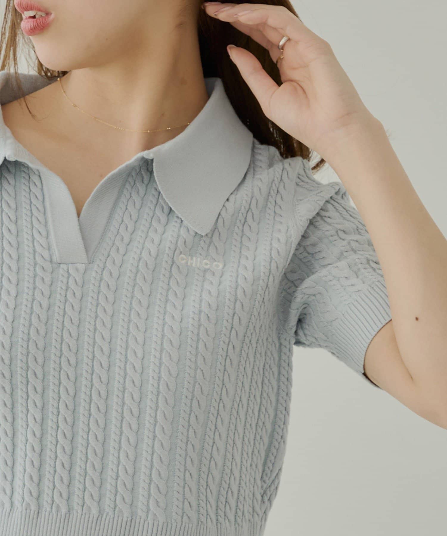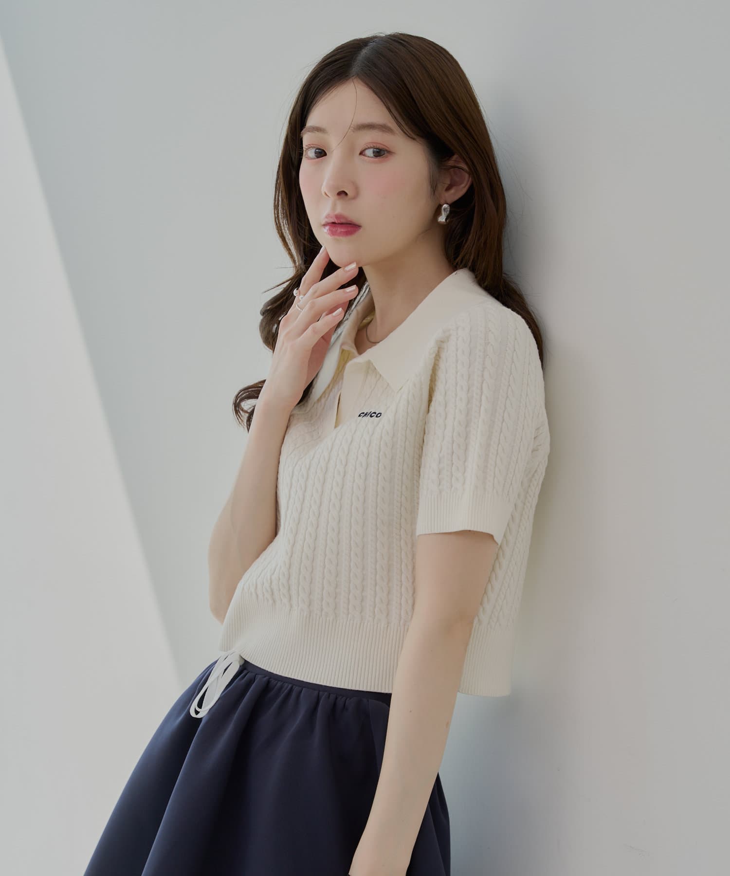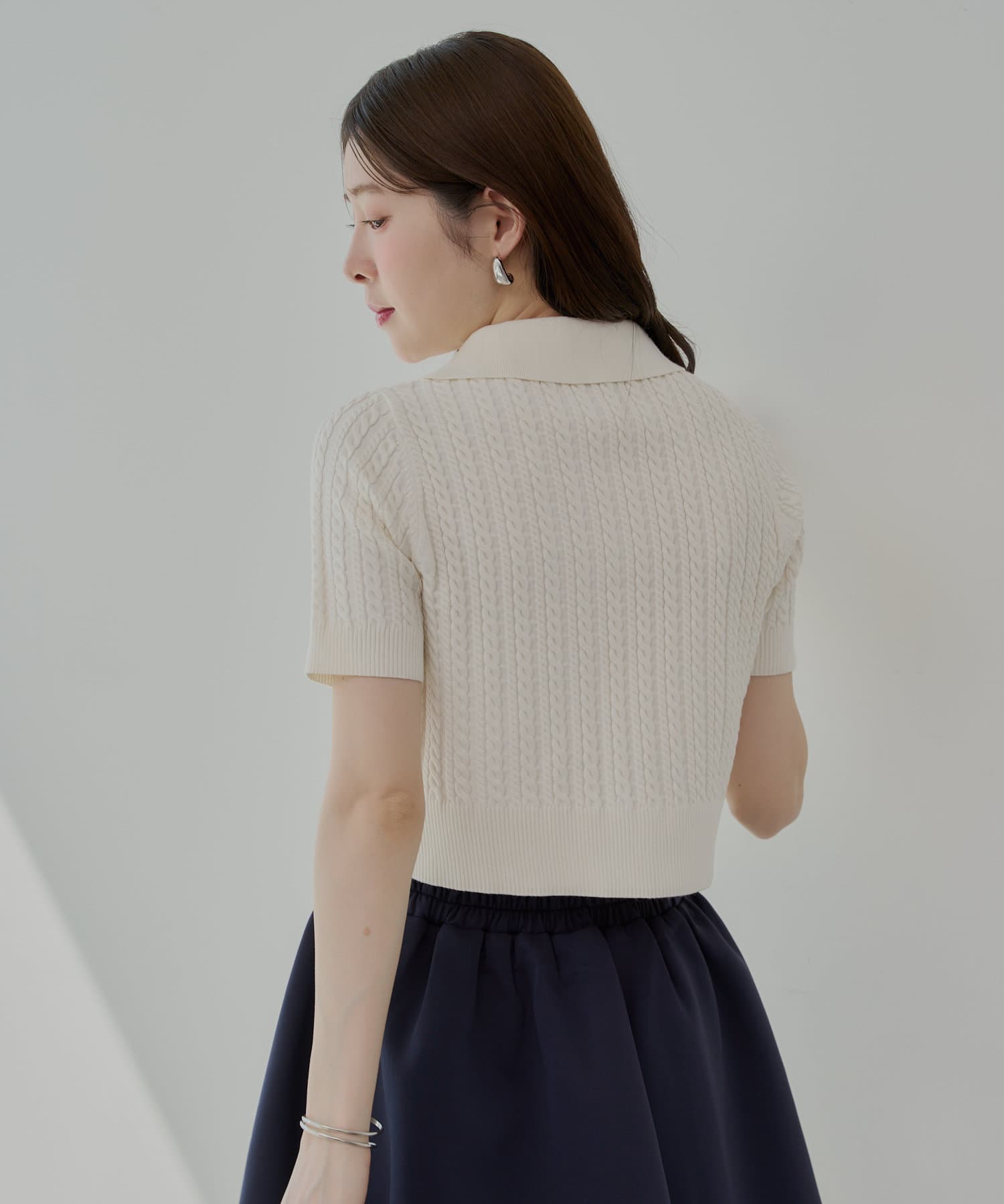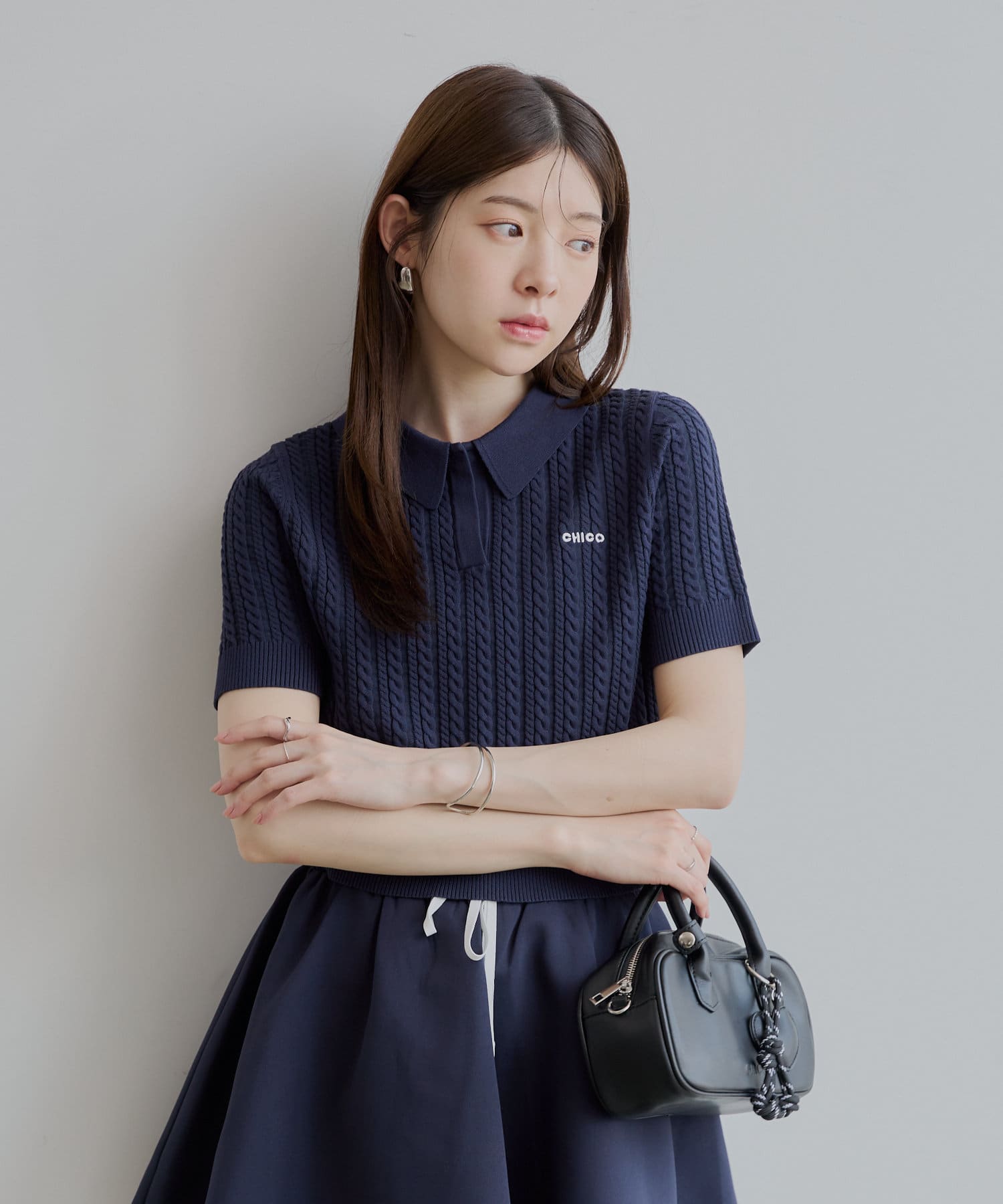 柔らかな肌触りと立体的なケーブル編みが魅力の大人可愛いニットポロ