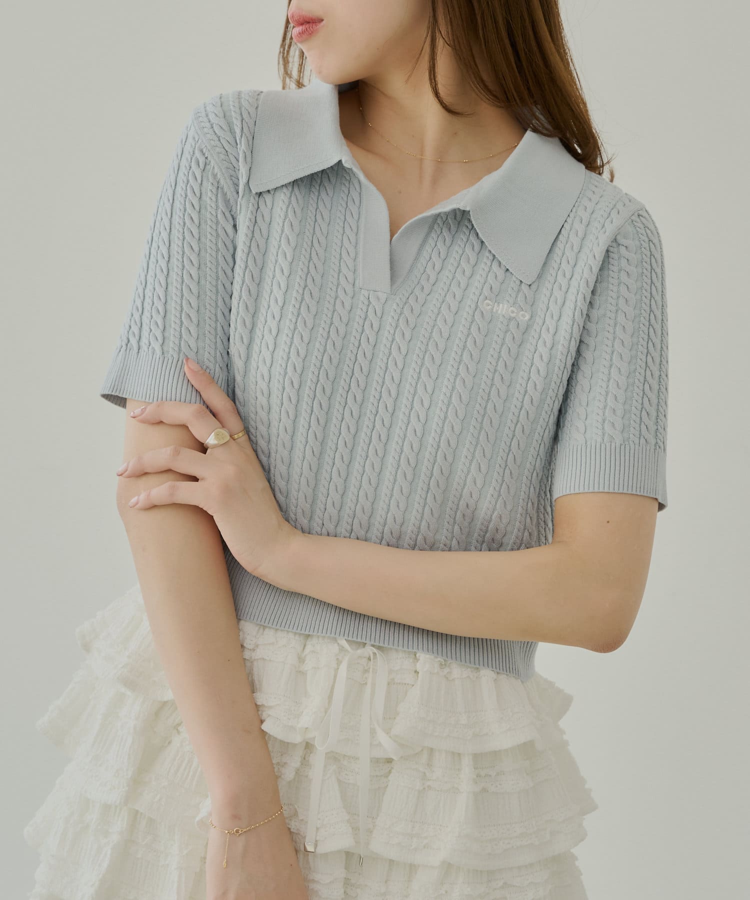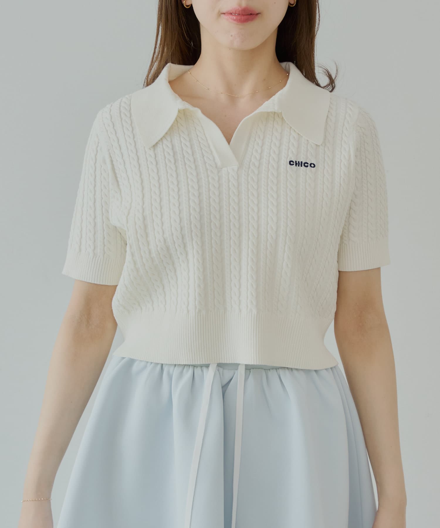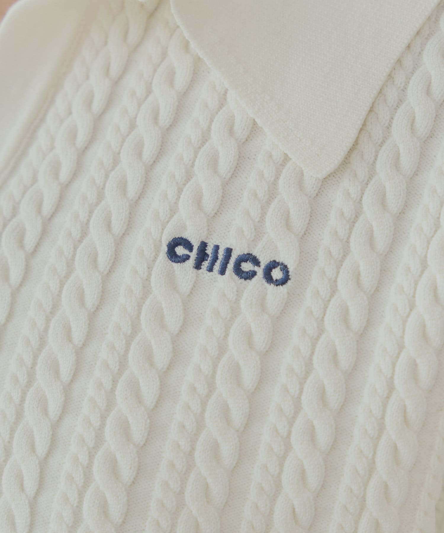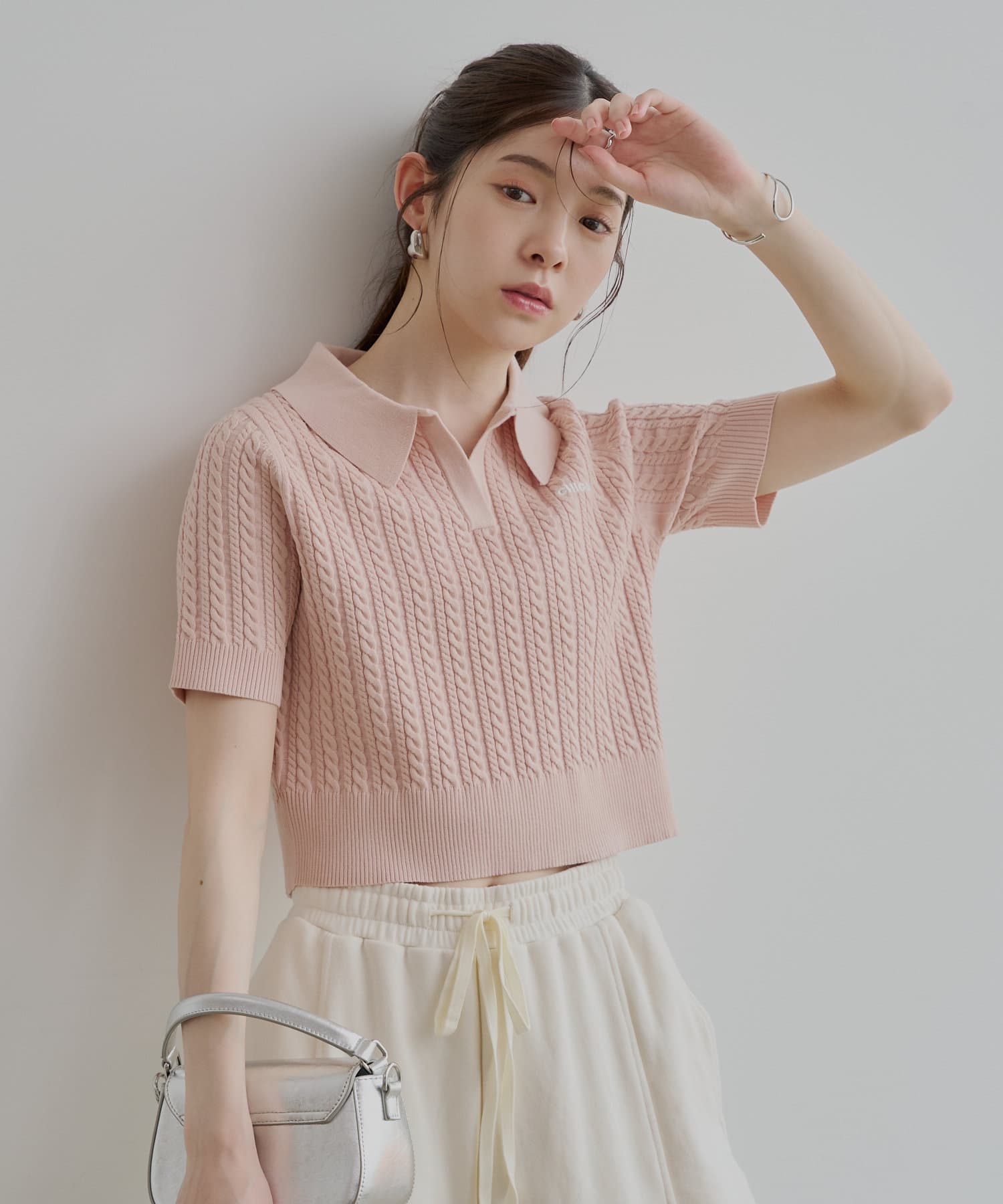 柔らかな肌触りと立体的なケーブル編みが魅力の大人可愛いニットポロ
