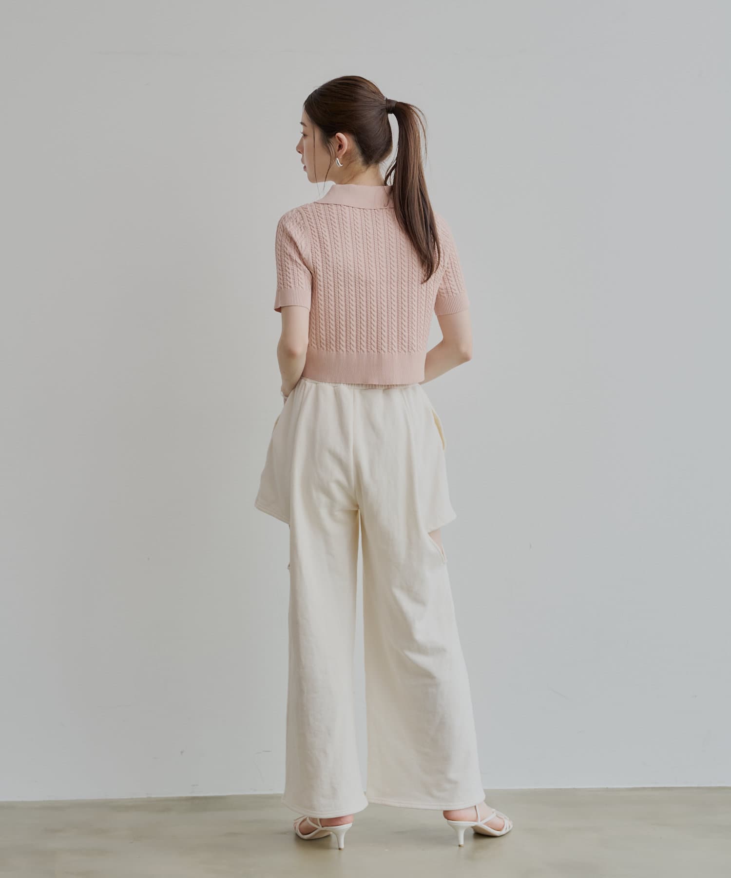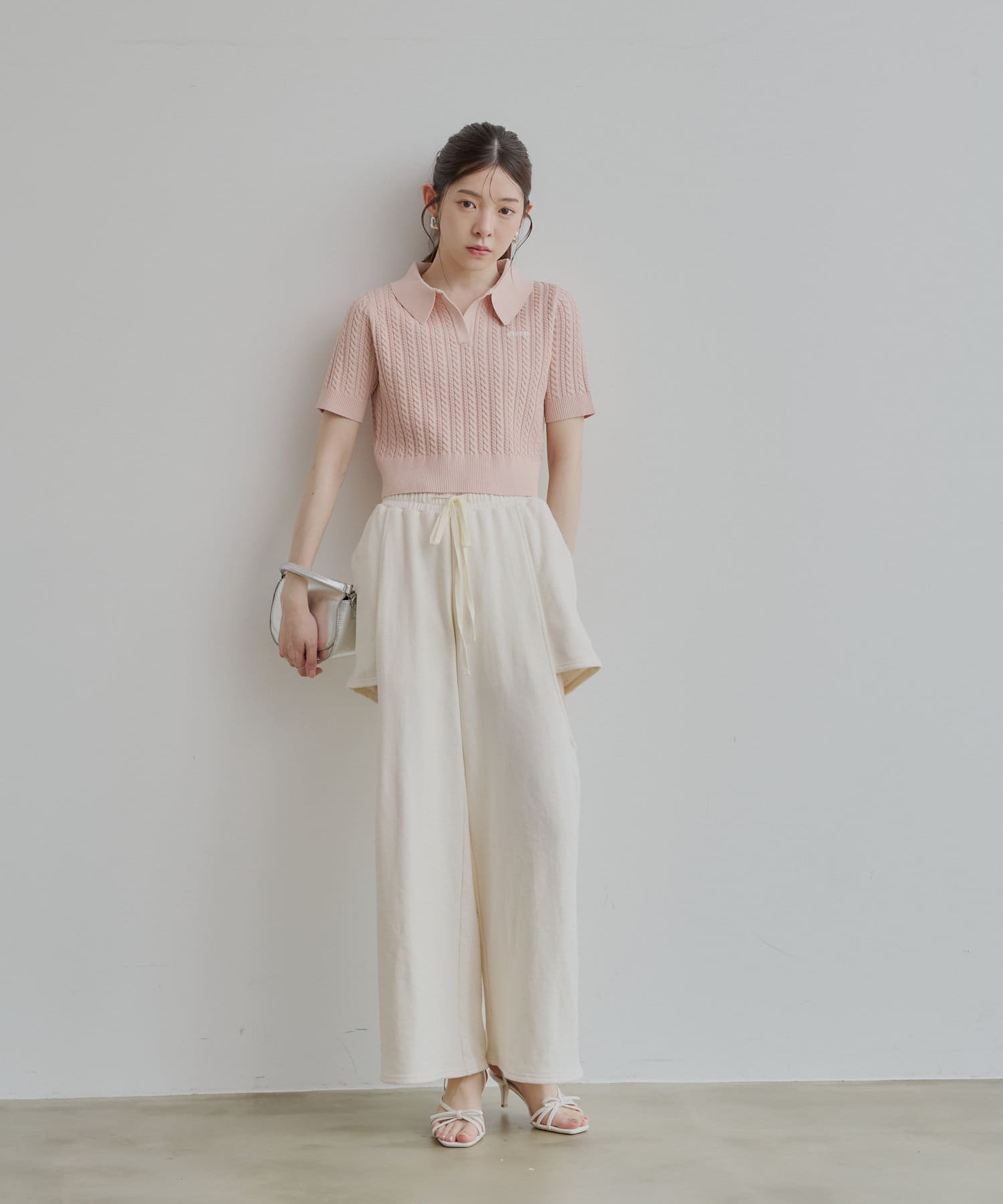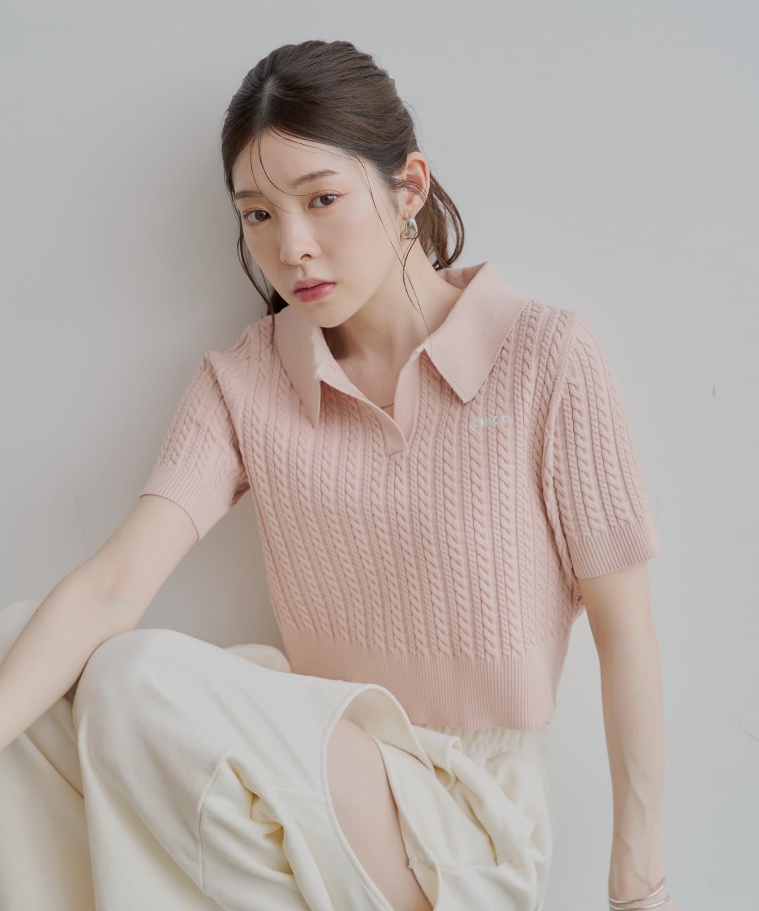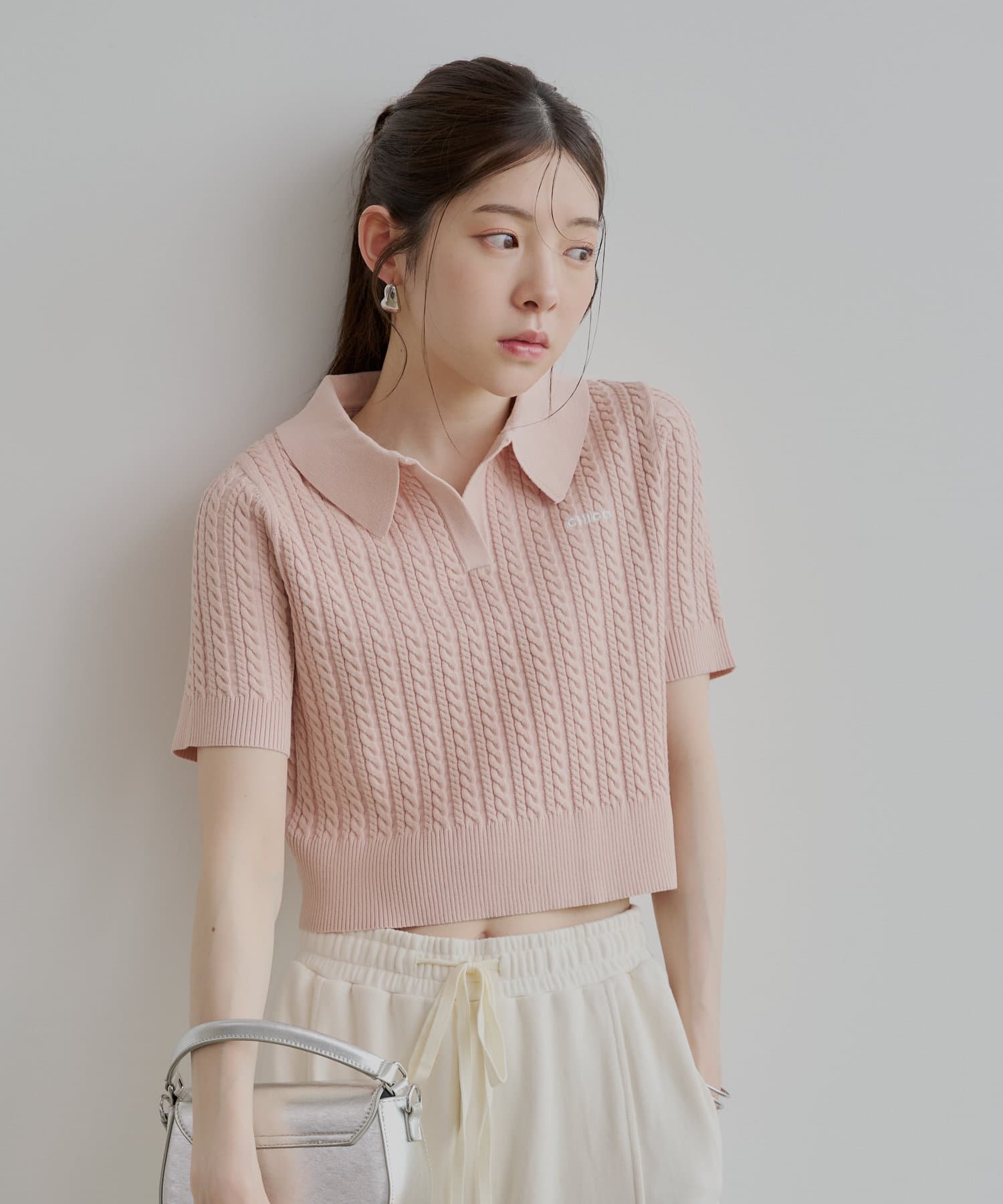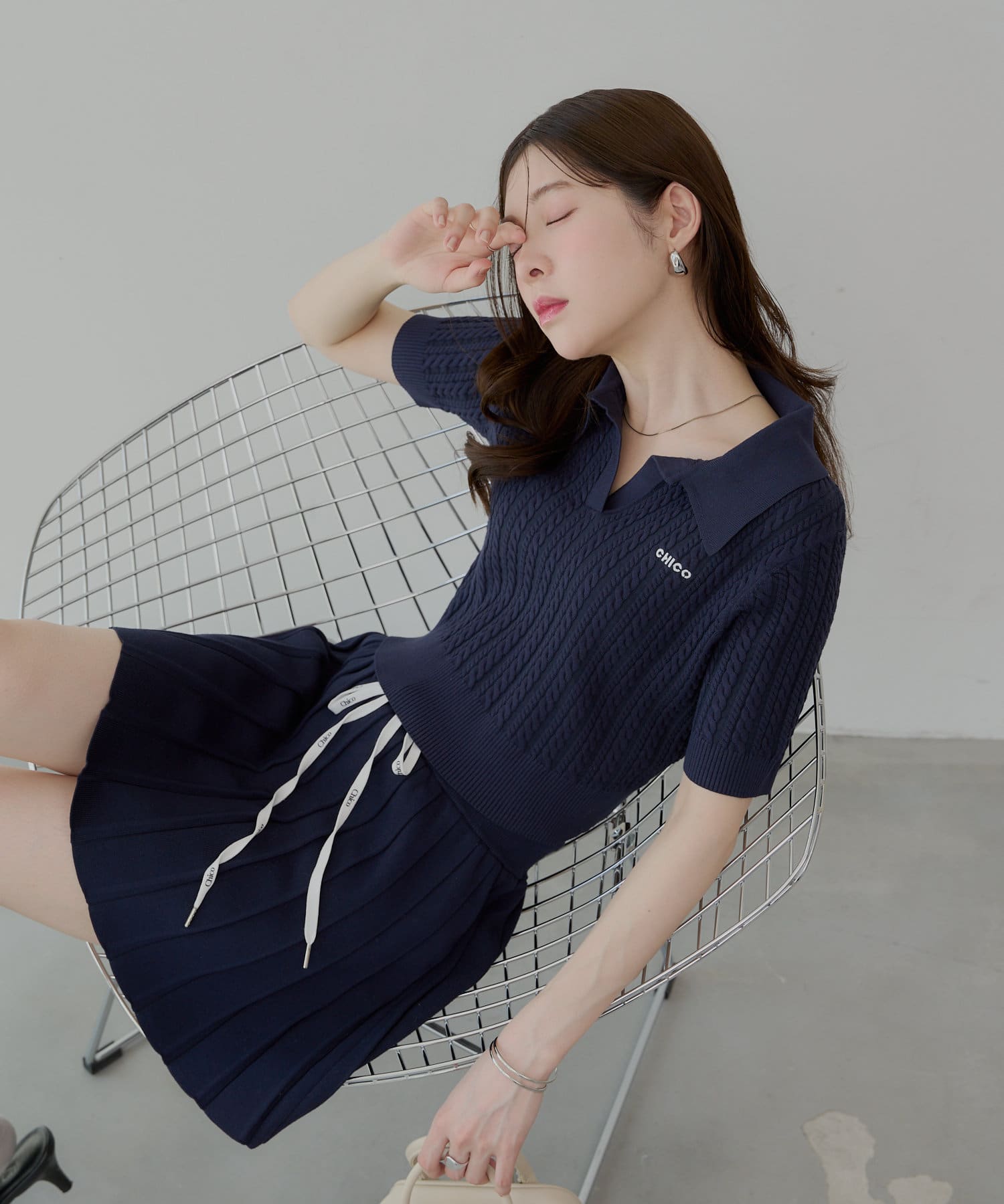 柔らかな肌触りと立体的なケーブル編みが魅力の大人可愛いニットポロ