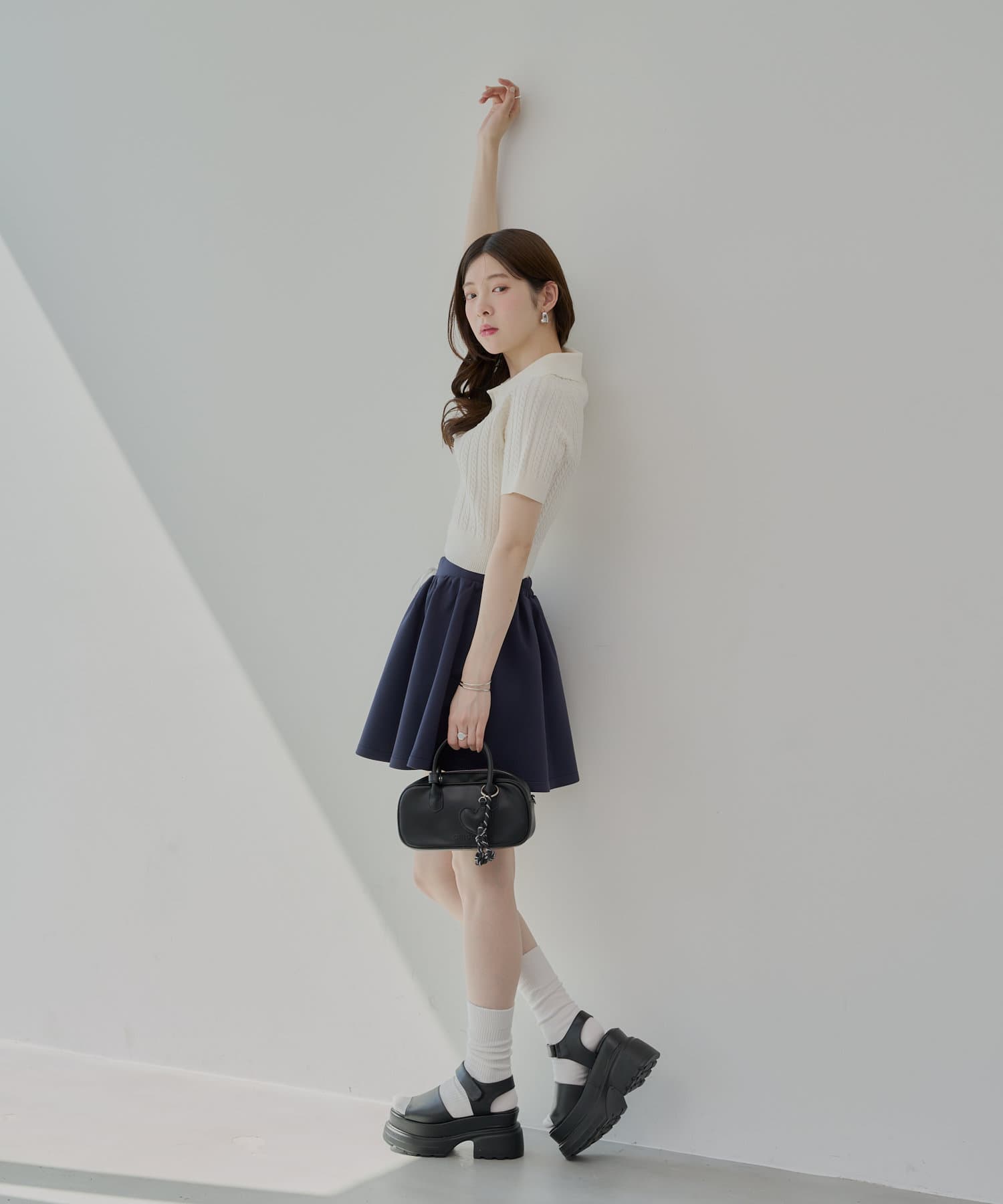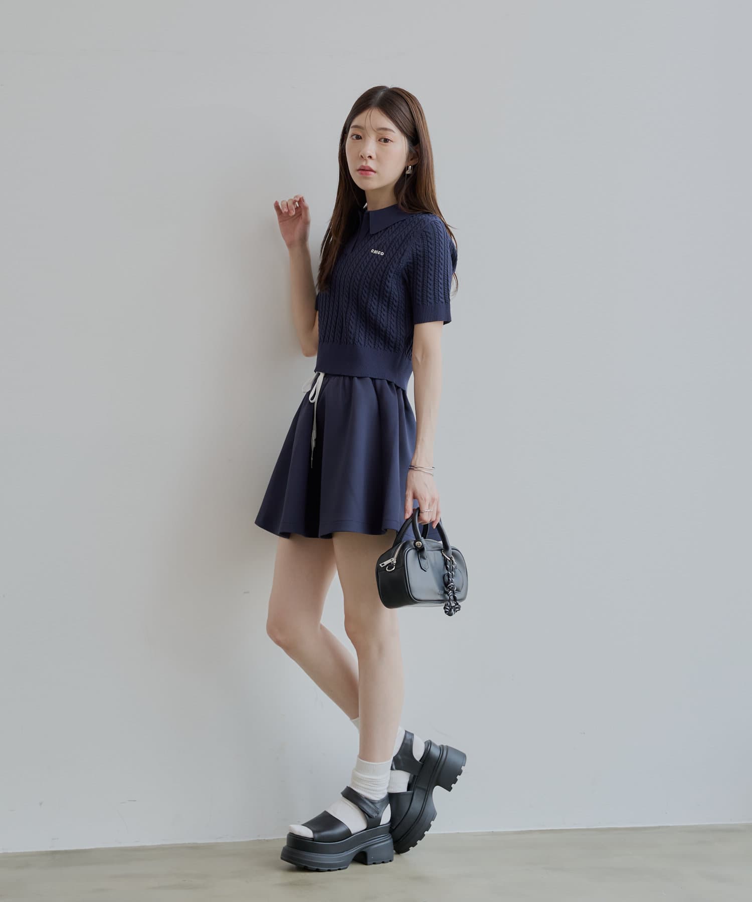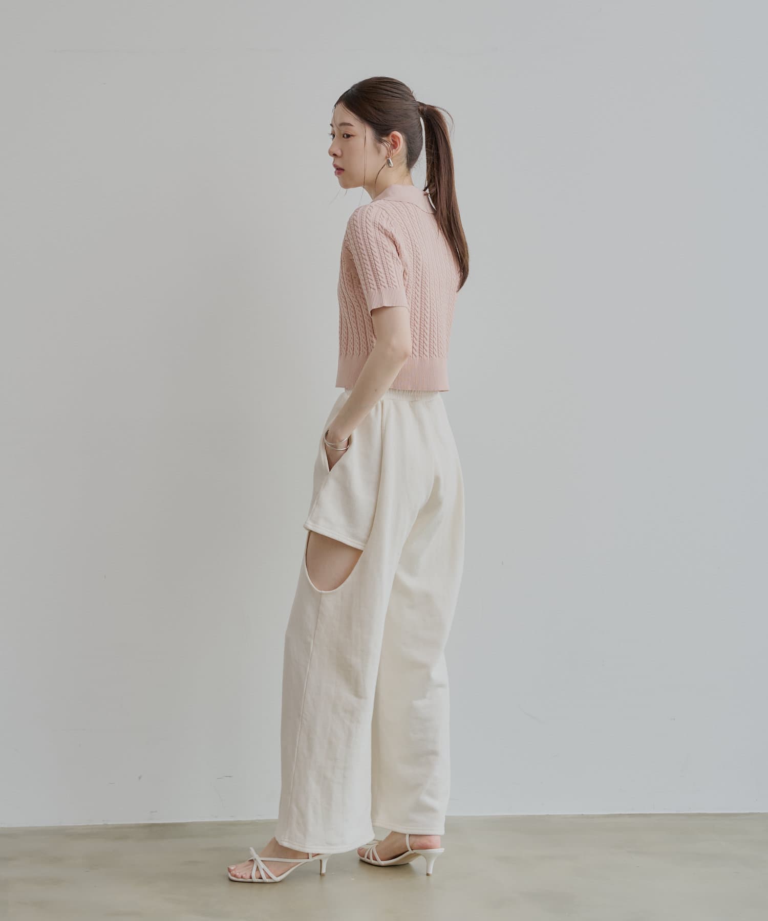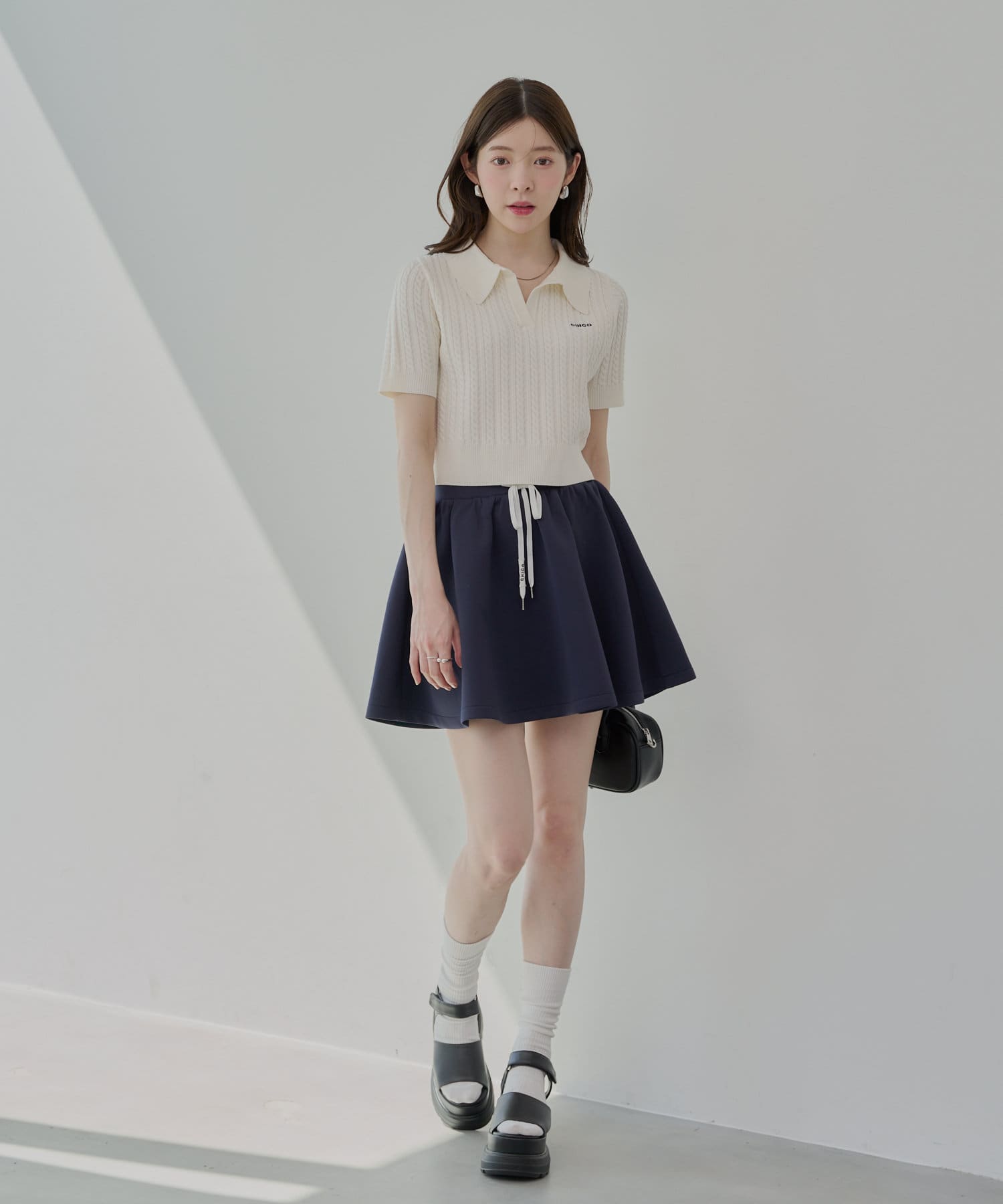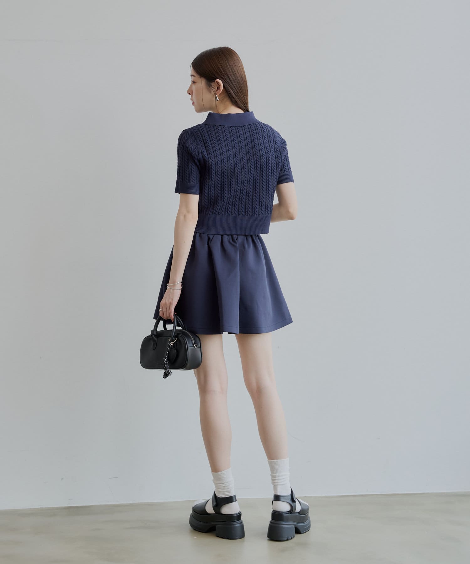 柔らかな肌触りと立体的なケーブル編みが魅力の大人可愛いニットポロ