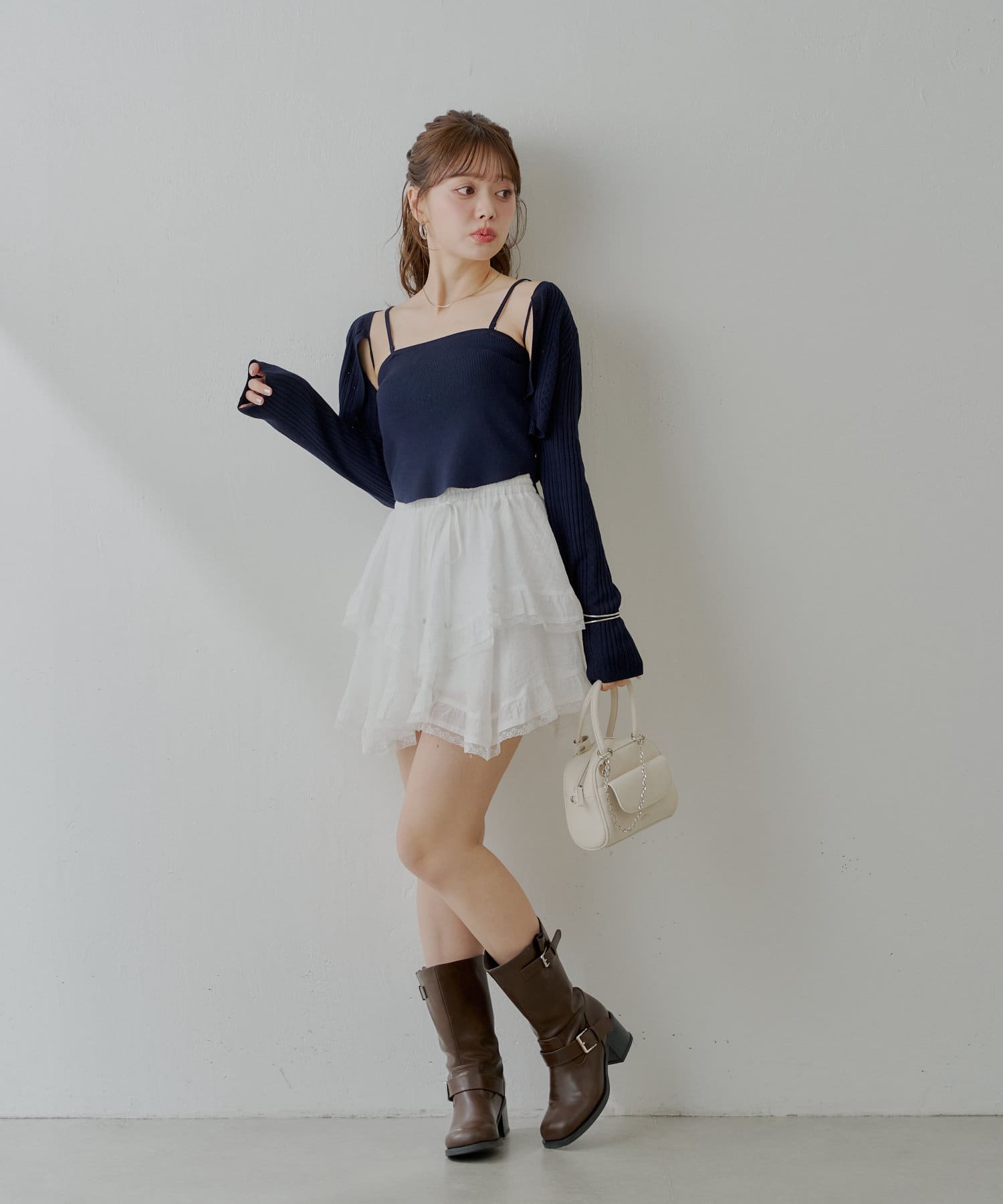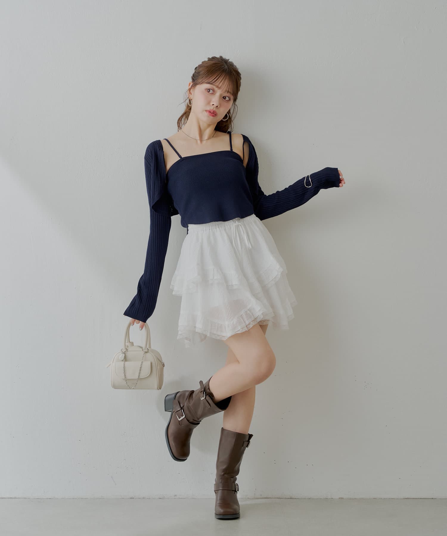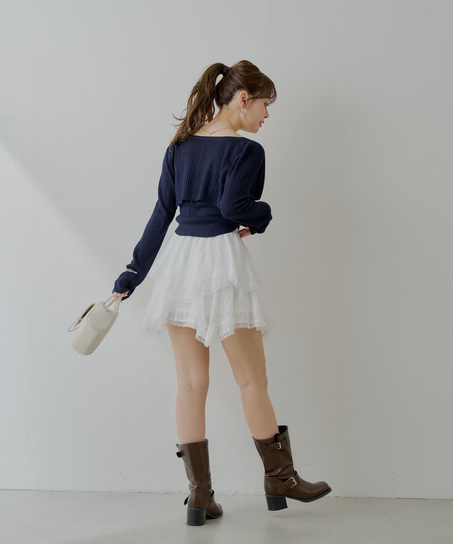 ・ミニスカート合わせでフェミニンな印象で着ていただけます。
