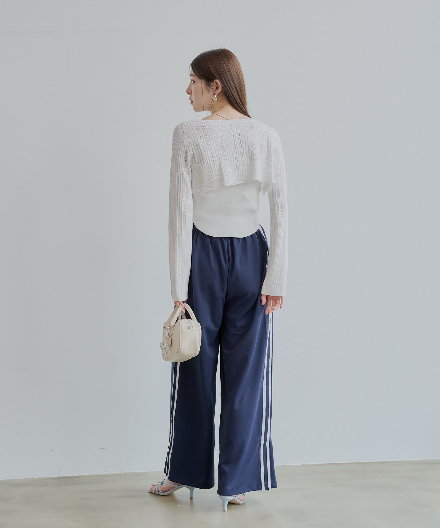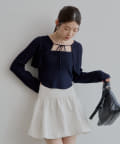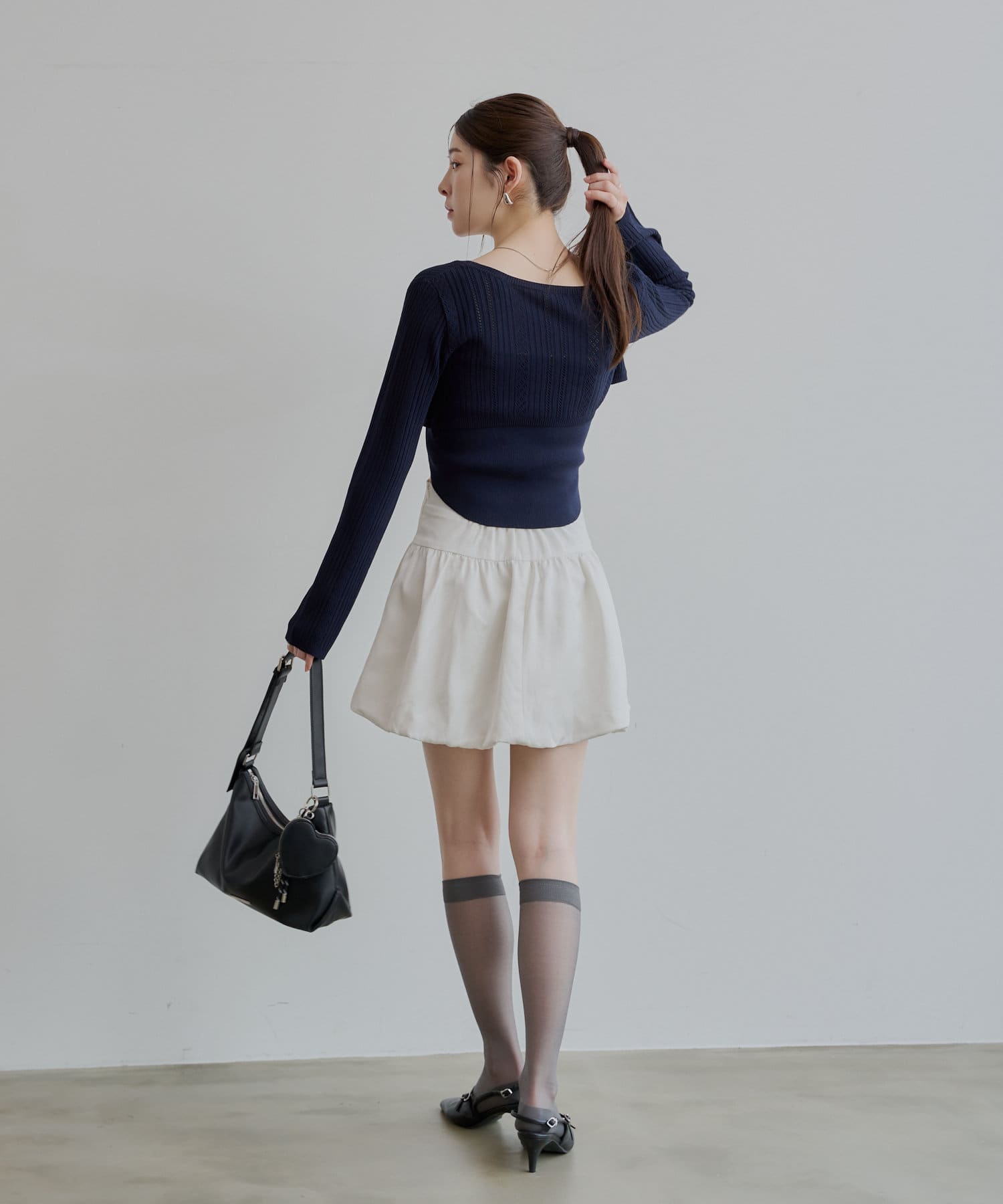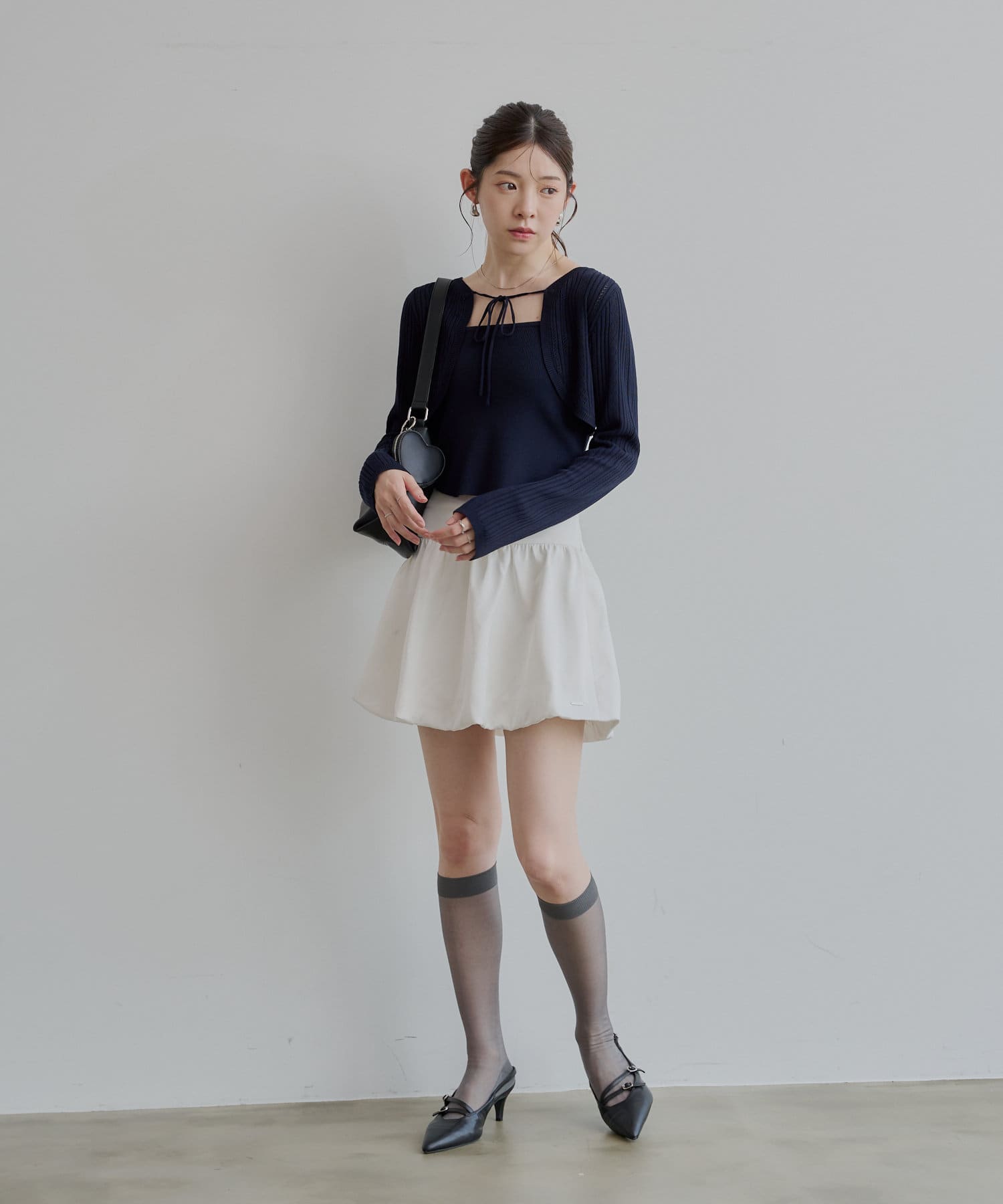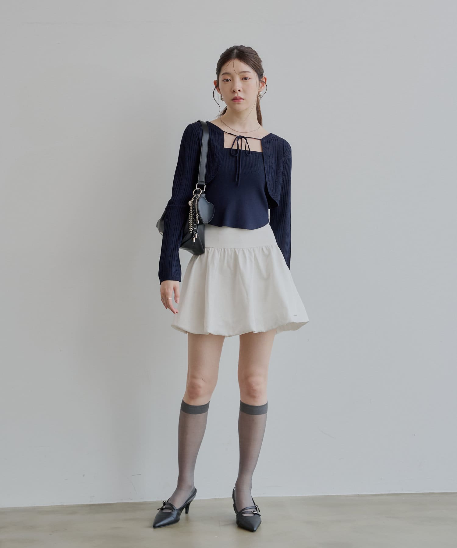 ・ミニスカート合わせでフェミニンな印象で着ていただけます。
