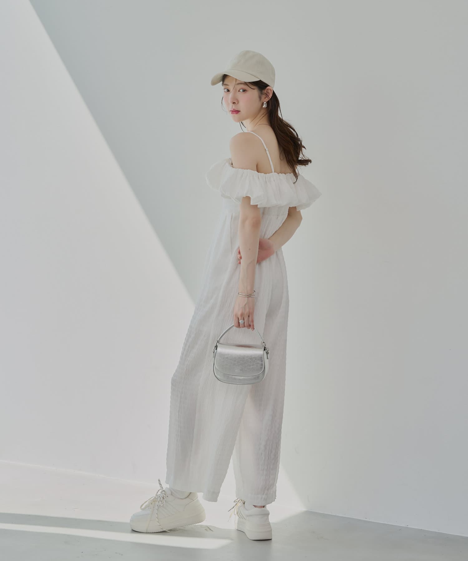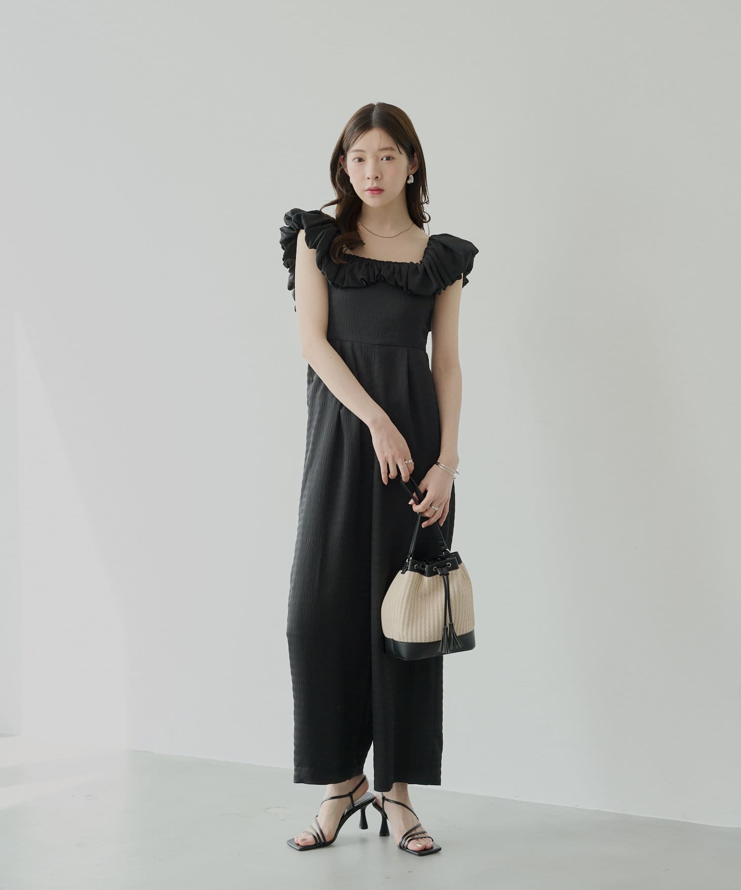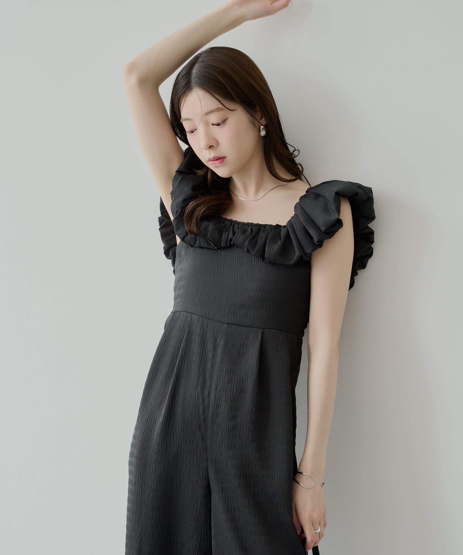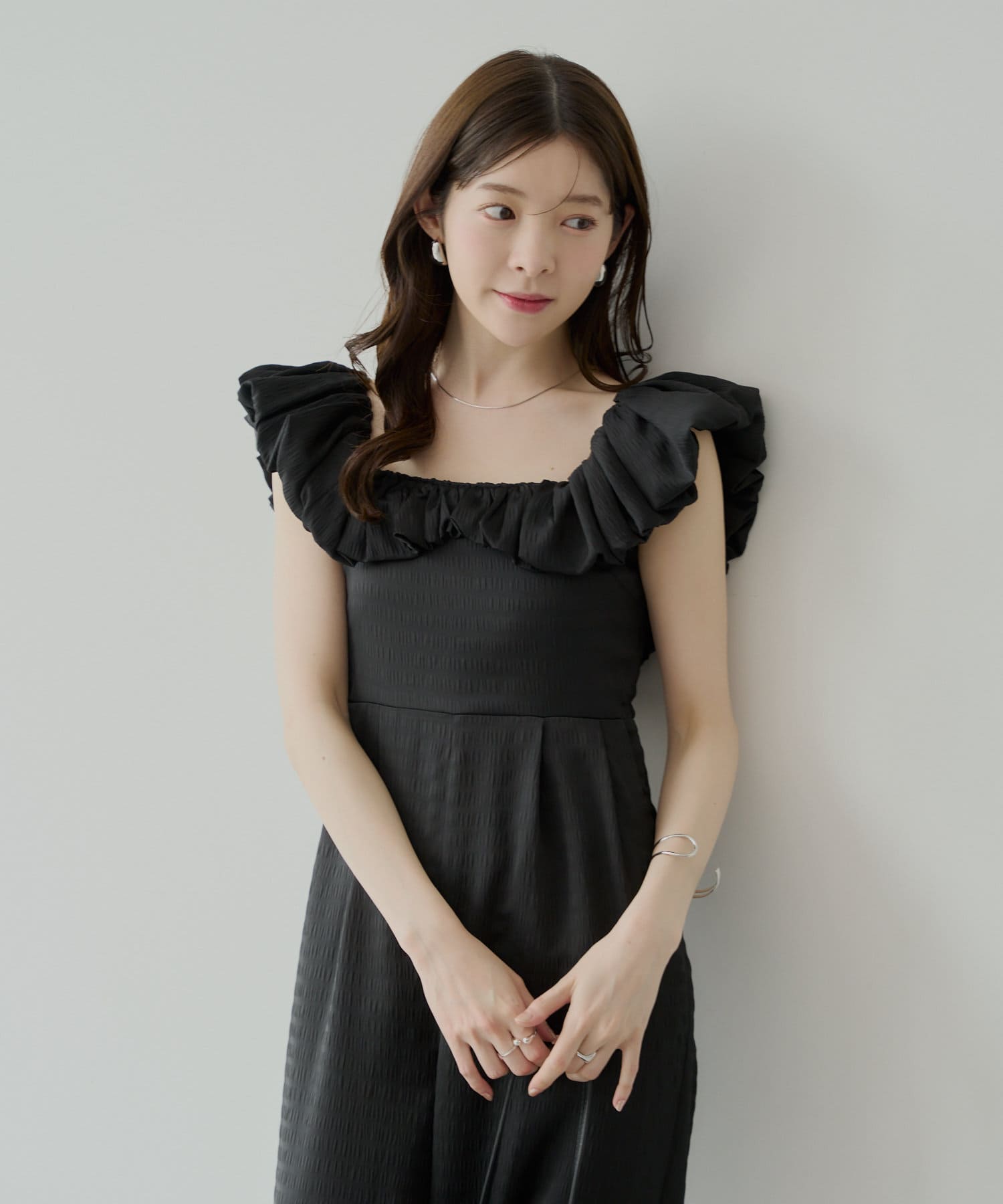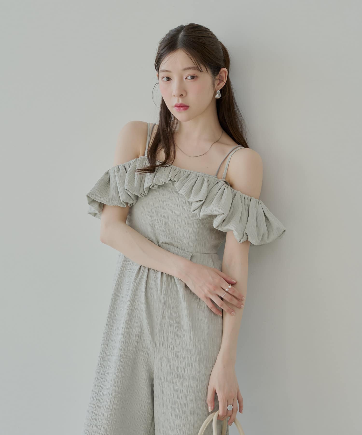 【Chico】2wayボリュームフリルオフショルコンビネゾン
