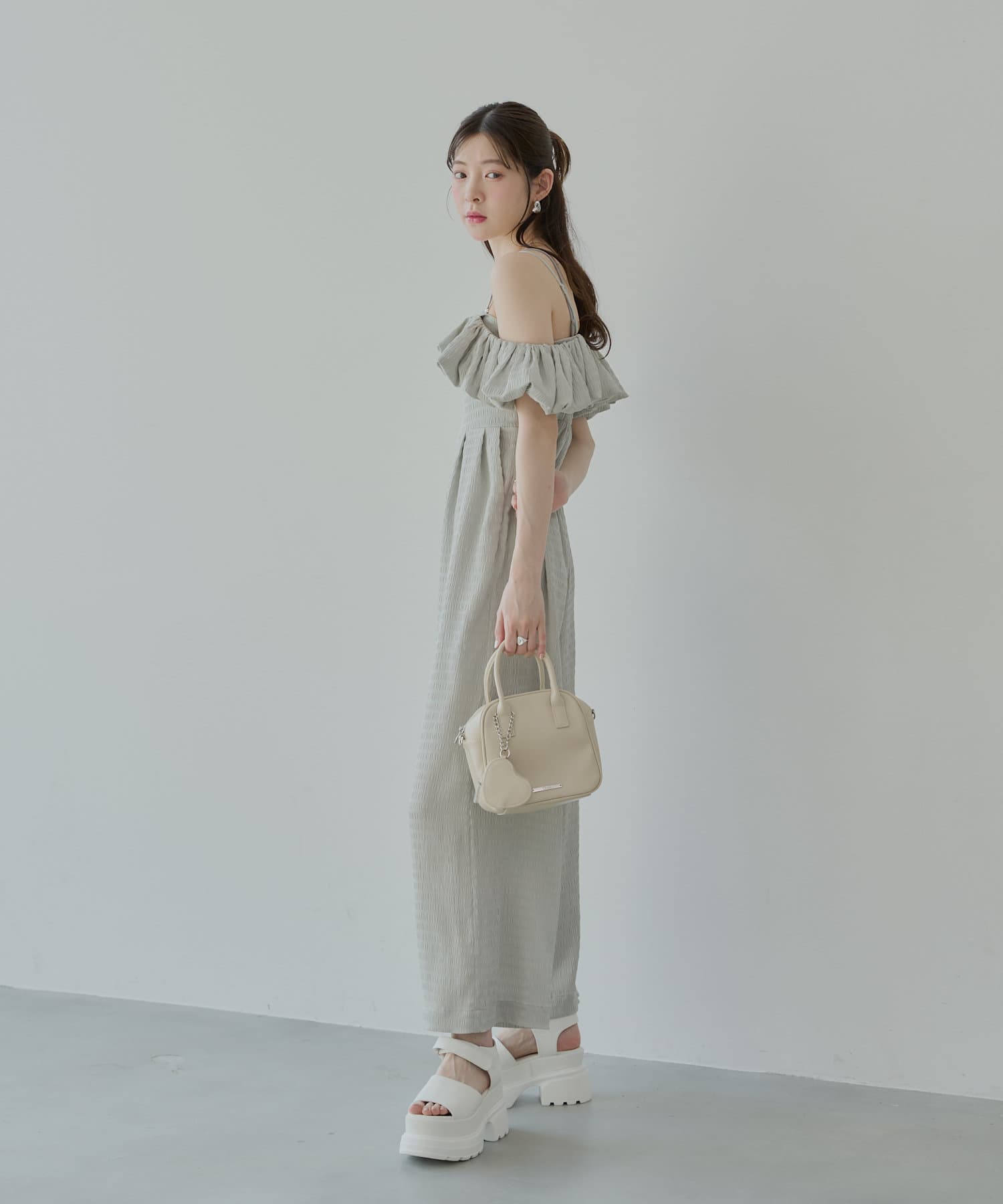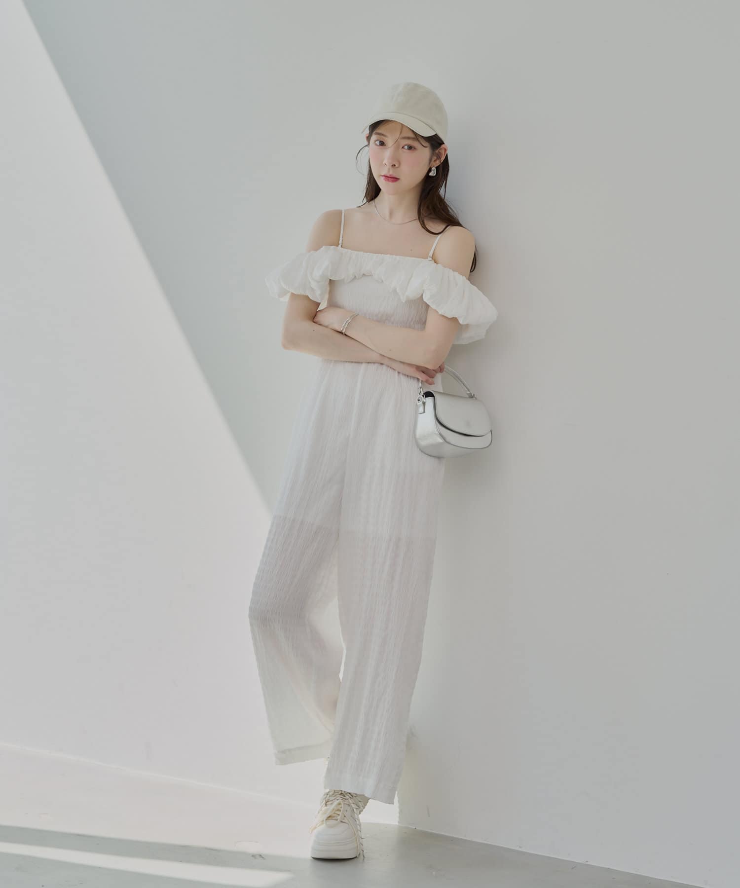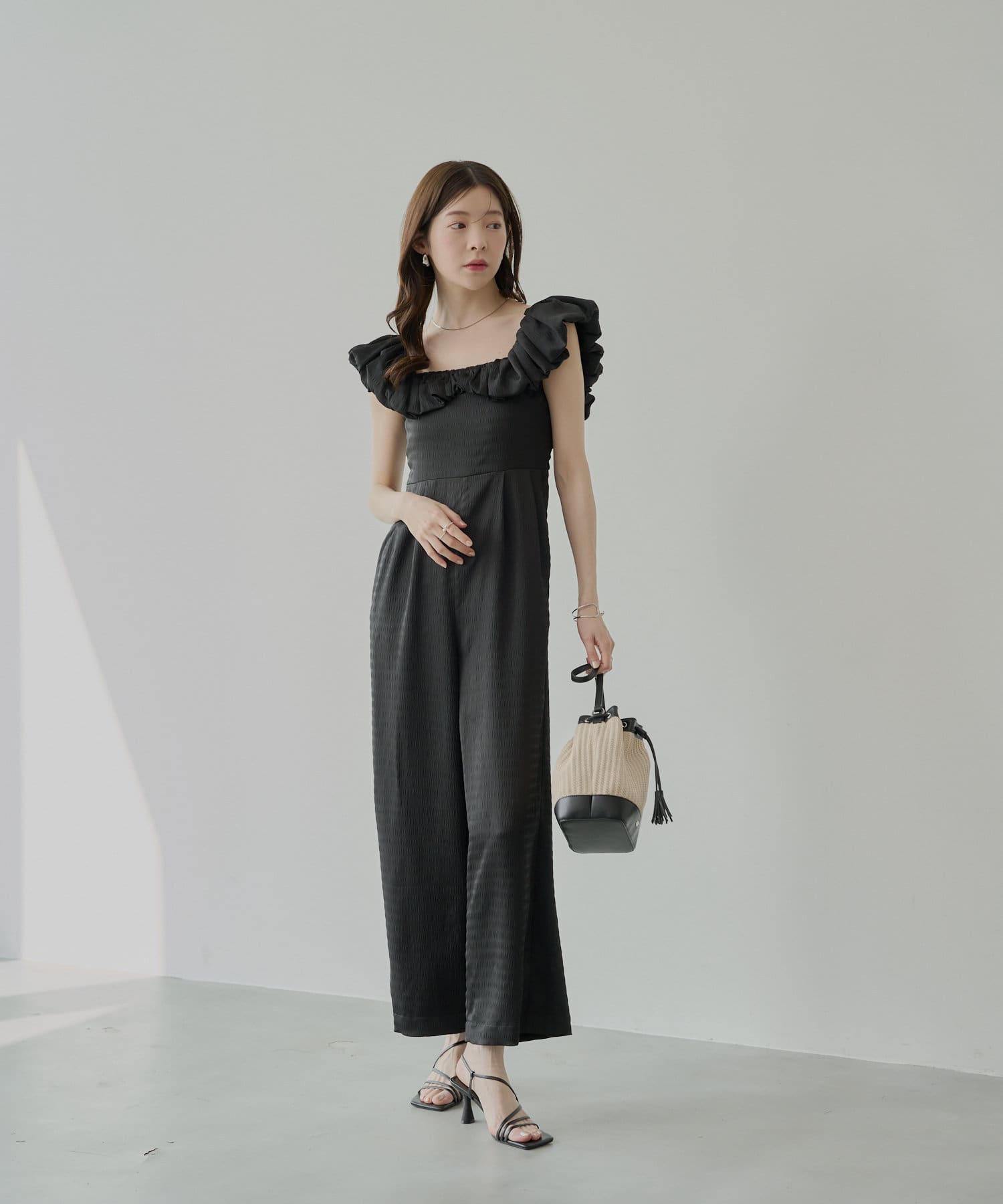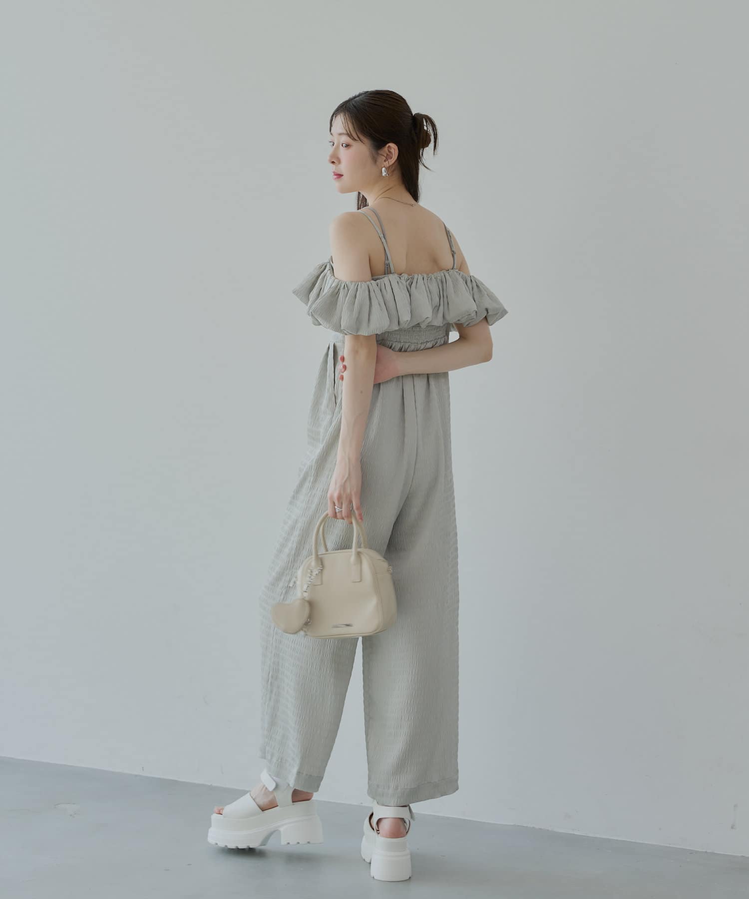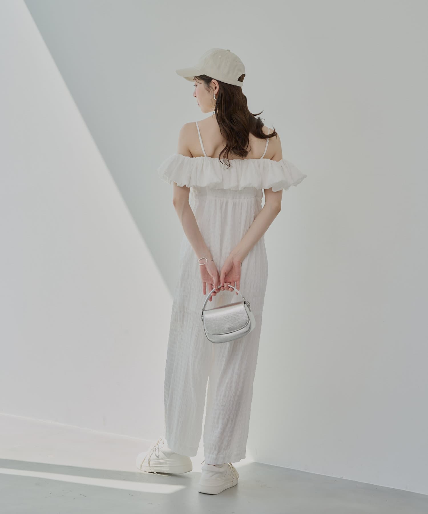 【Chico】2wayボリュームフリルオフショルコンビネゾン