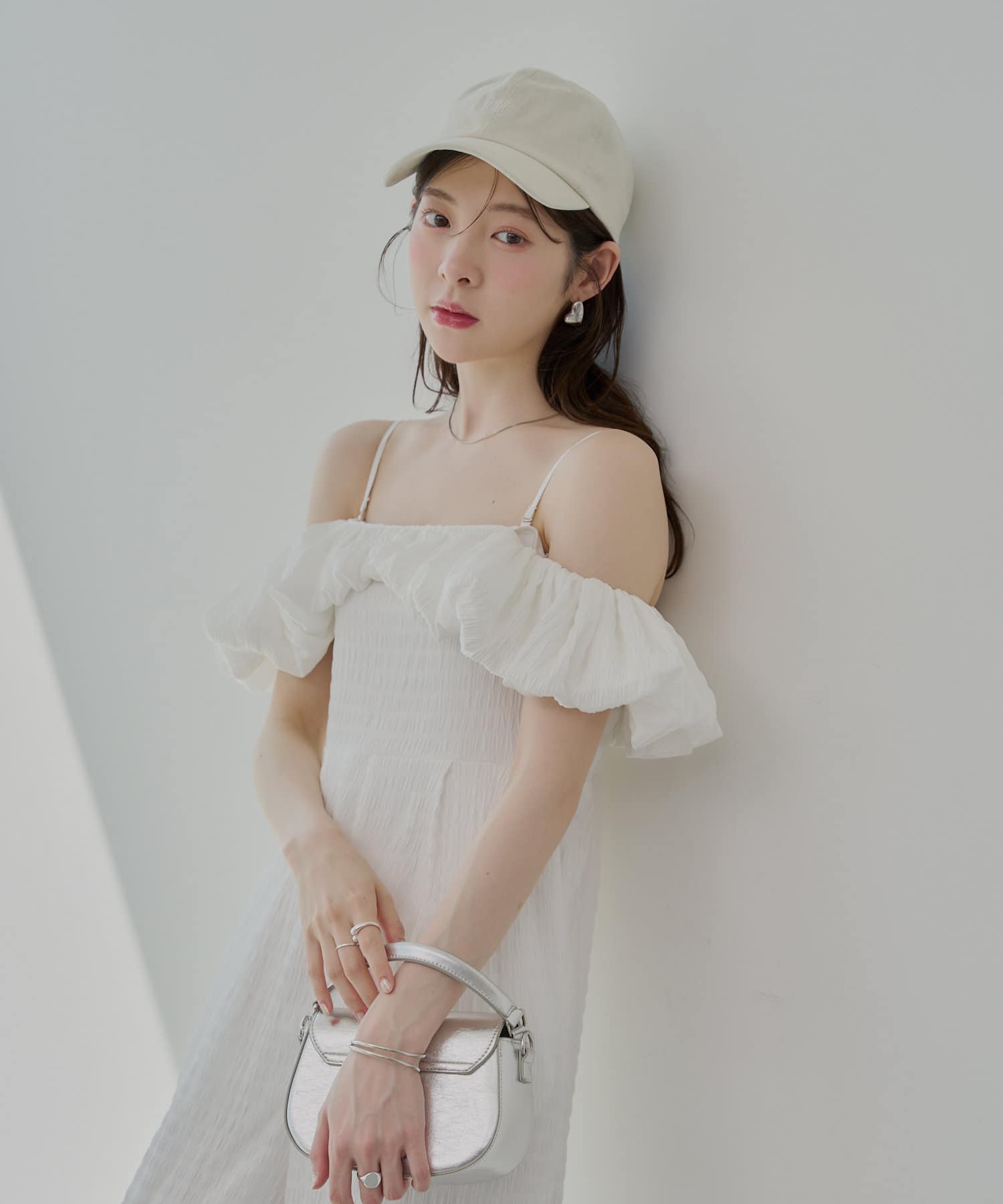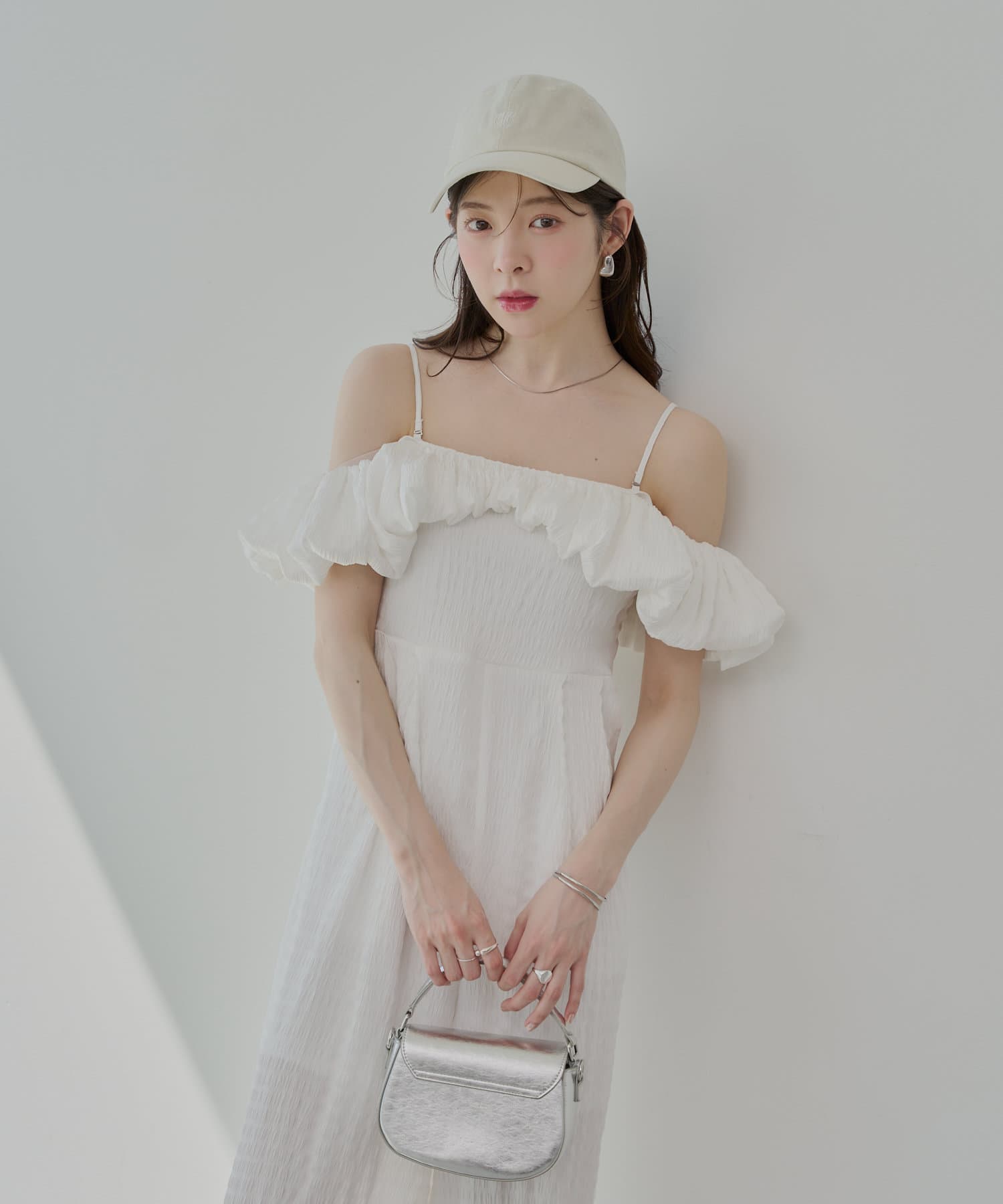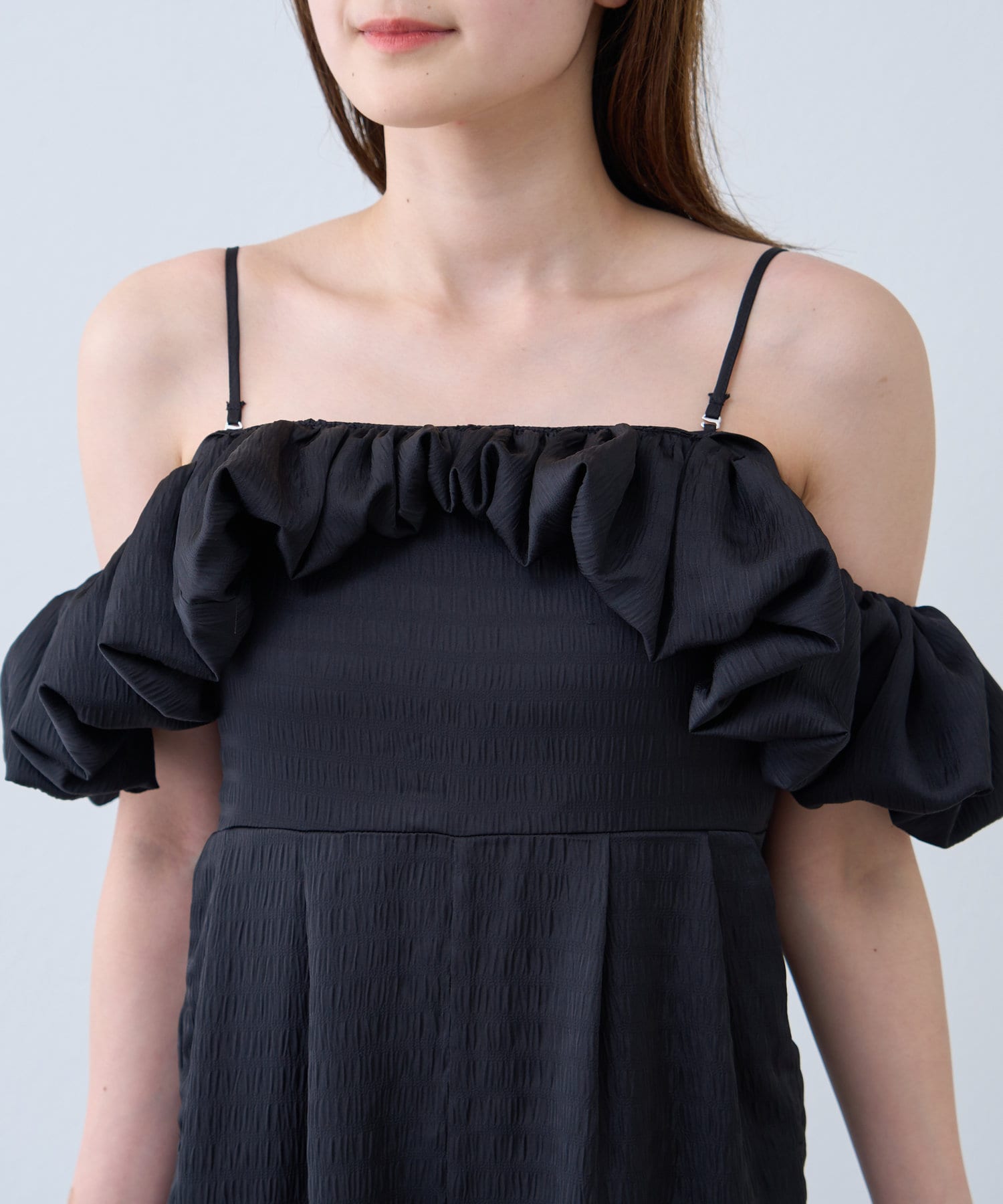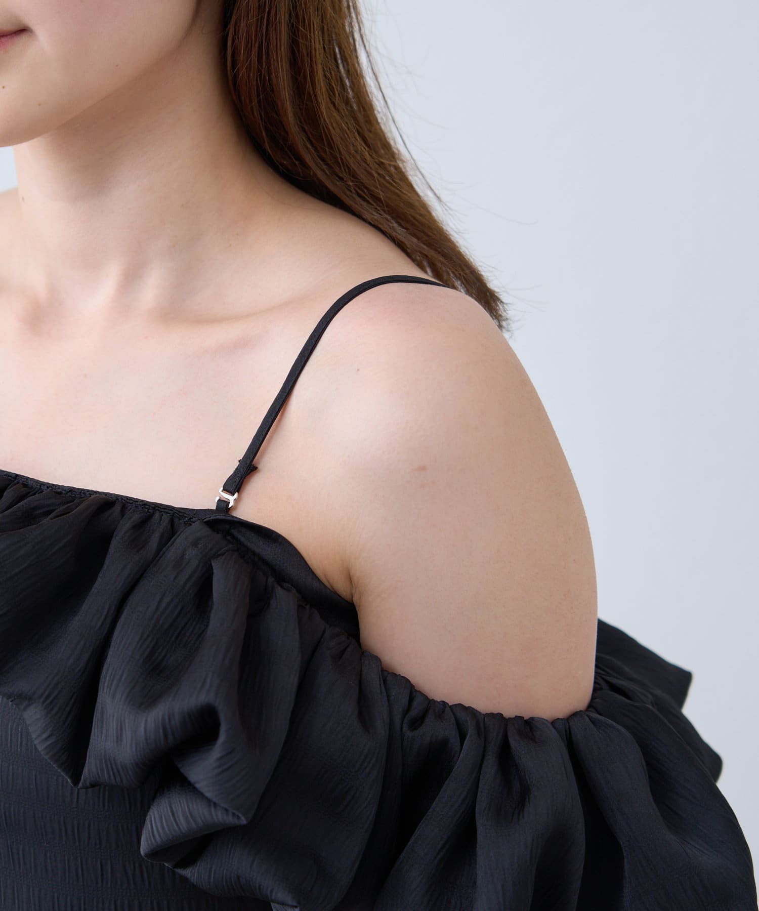 ・フリルを落としてオフショルダーとしても着れる2way仕様です。