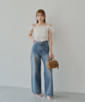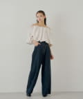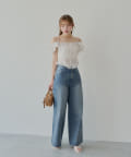 ・コンパクトトップスやオフショルトップスでちらっと肌見せするとトレンドライクな印象に。
