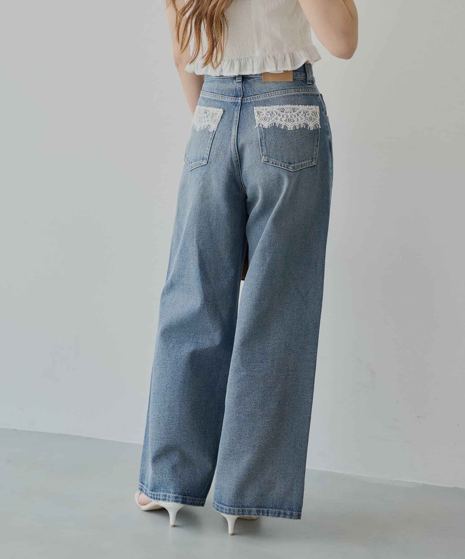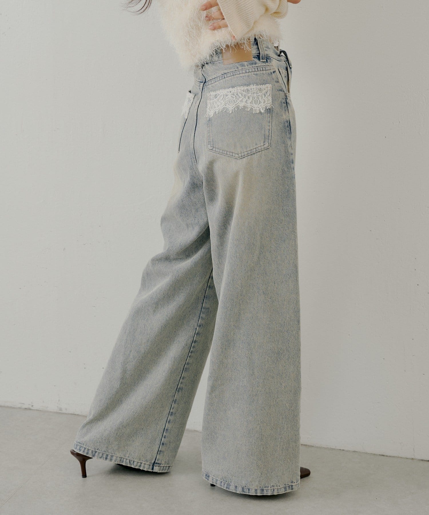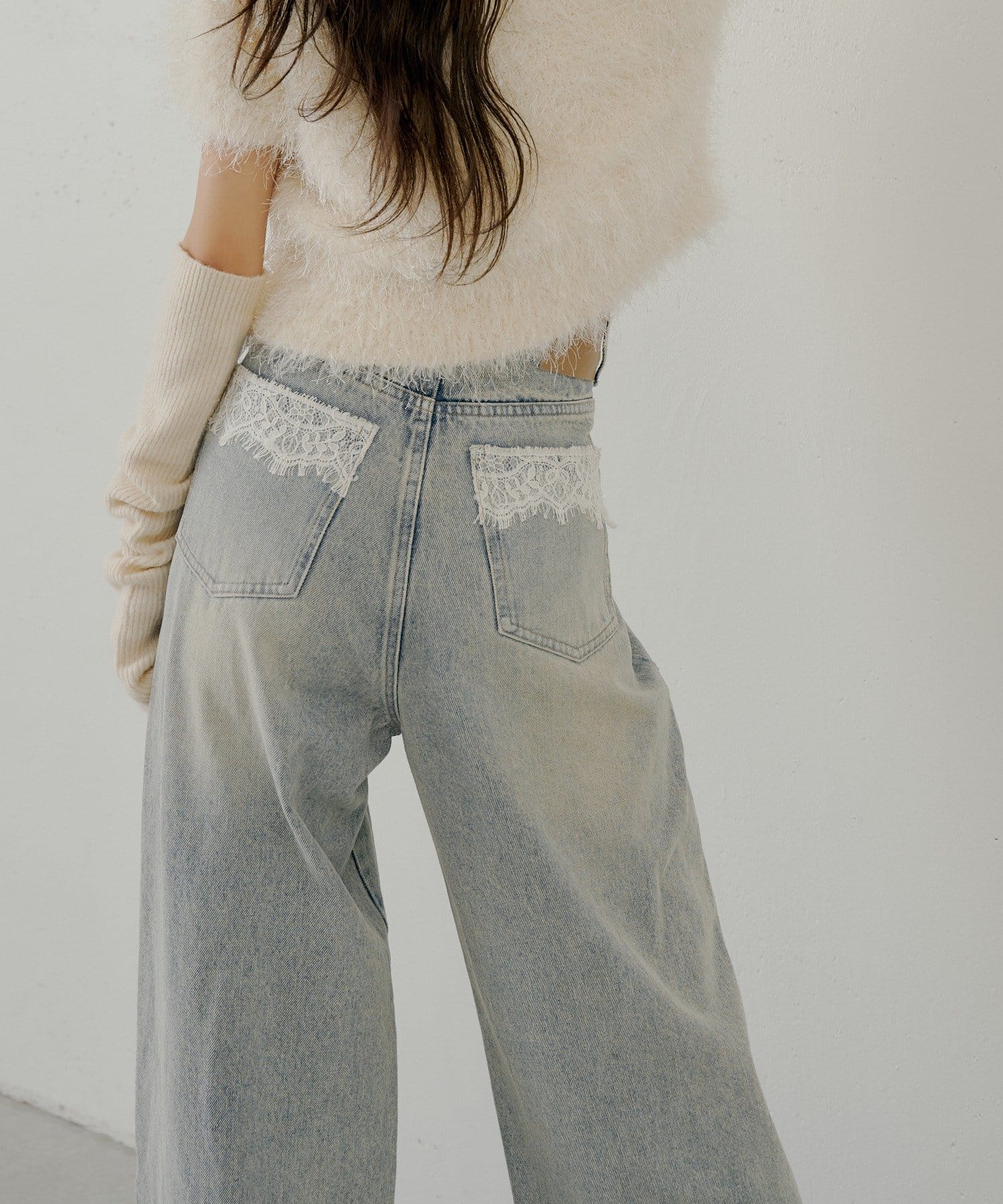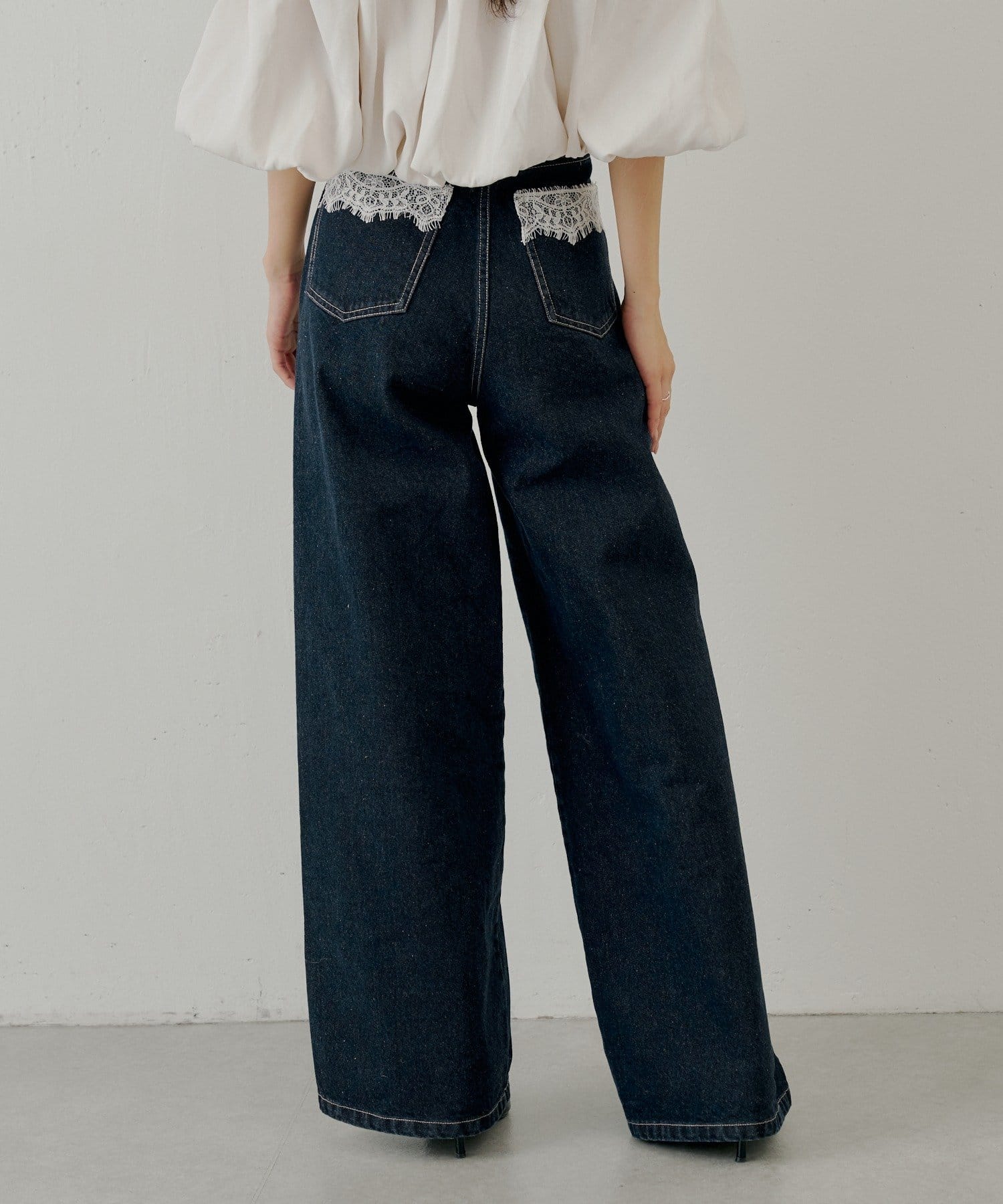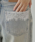 バックポケットの繊細なレースが魅力のワイドデニム登場!