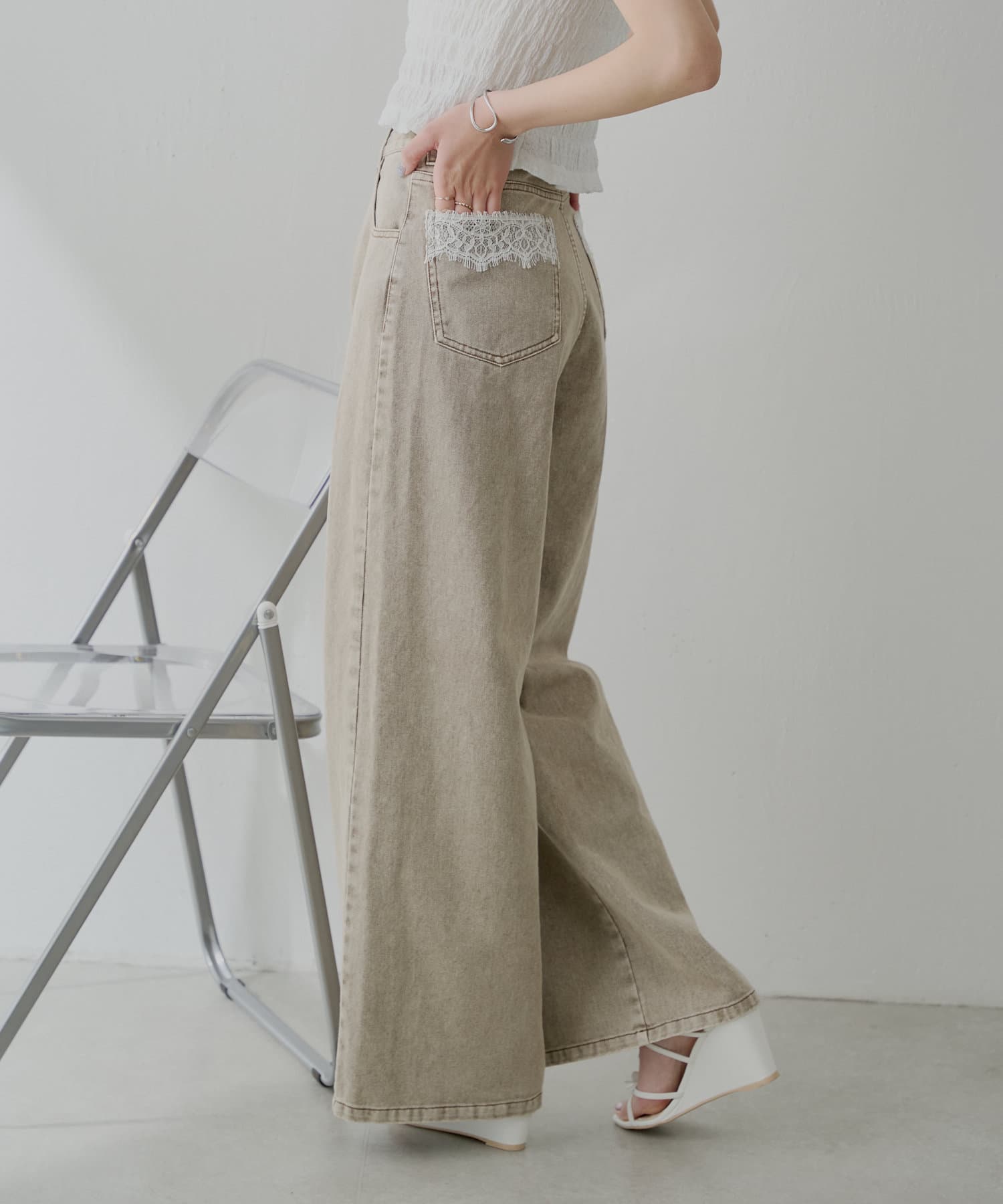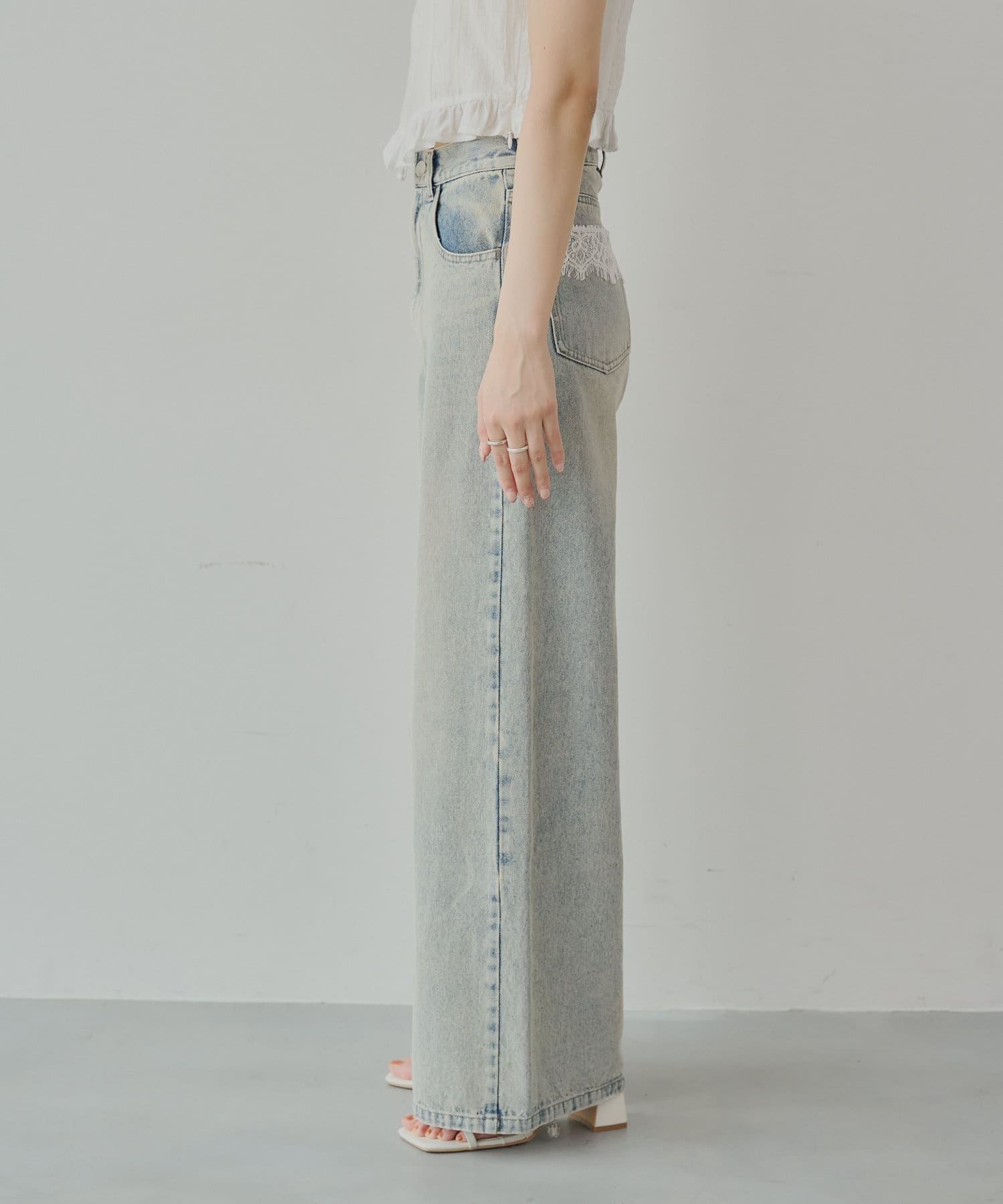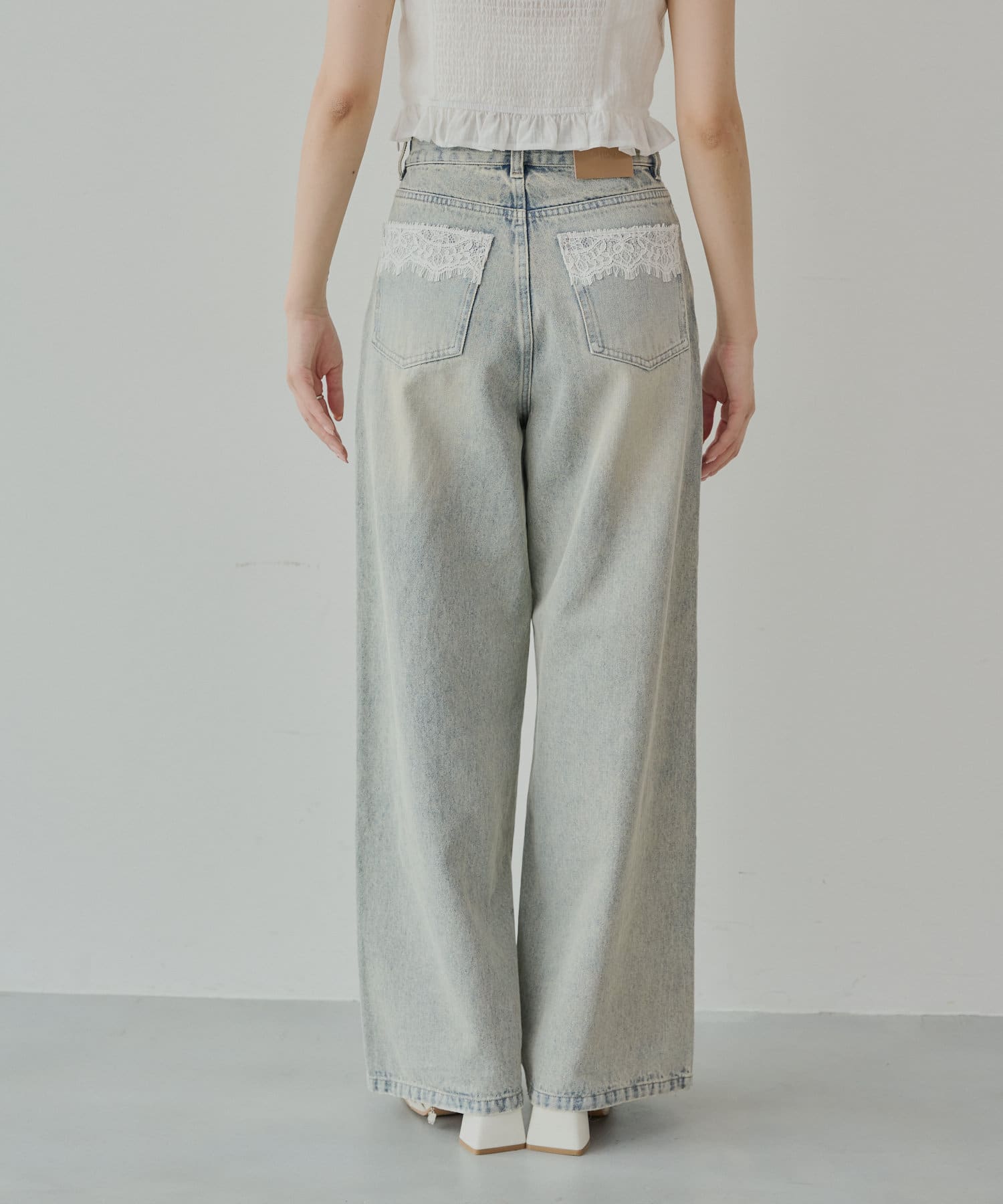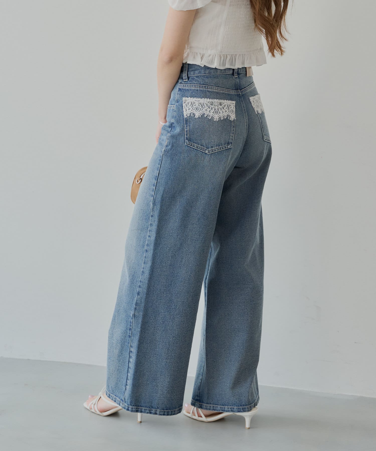 バックポケットの繊細なレースが魅力のワイドデニム登場!