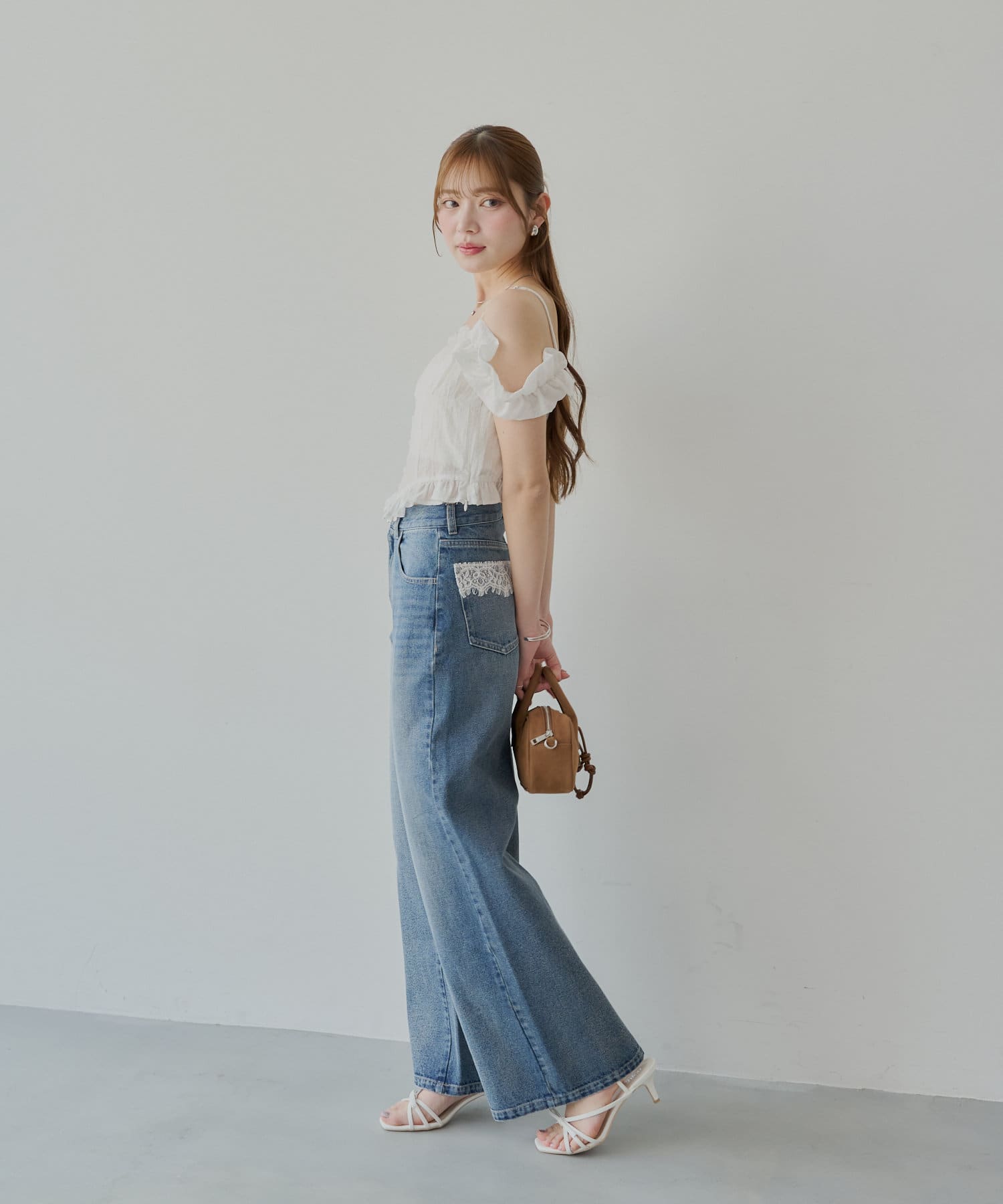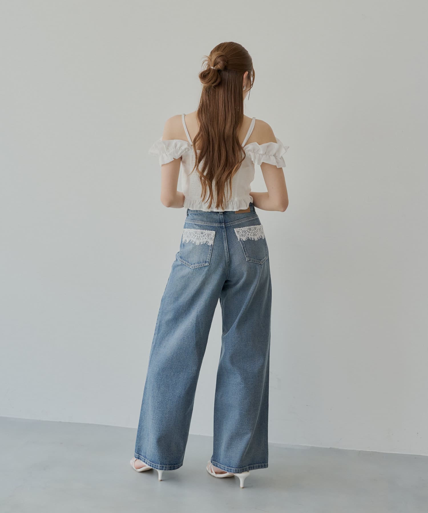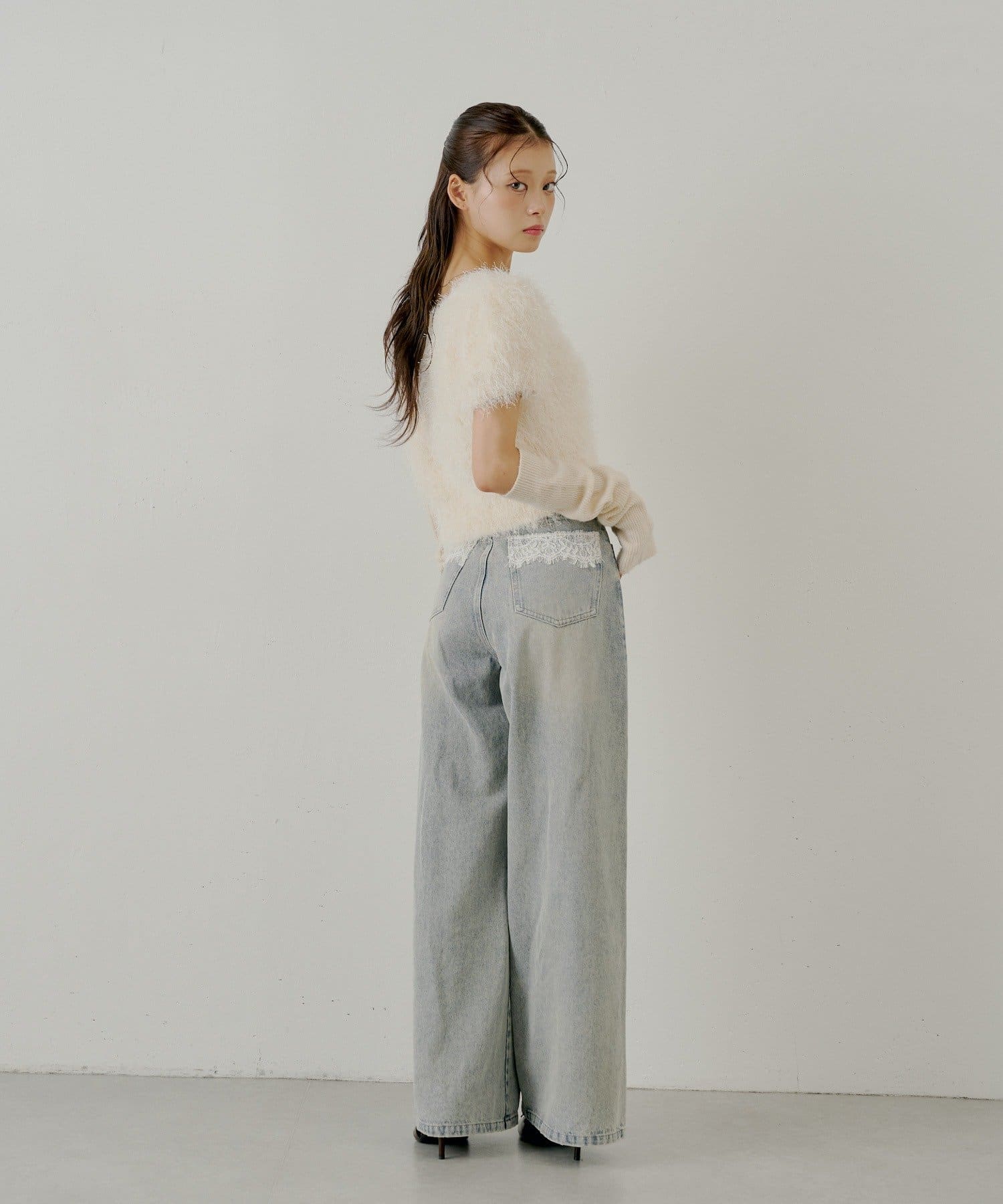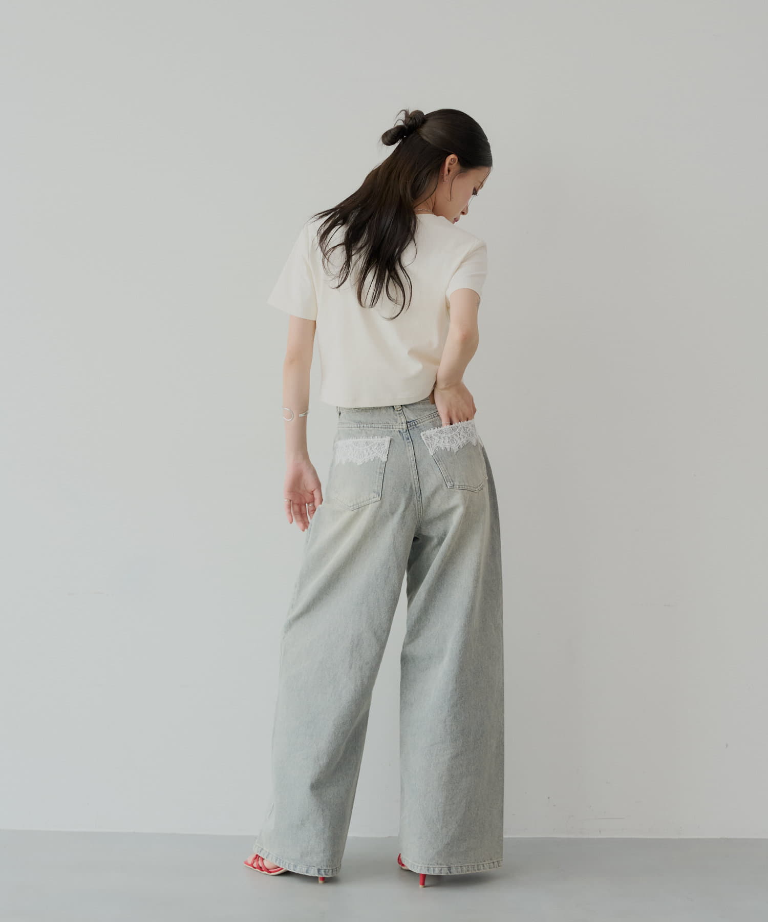 バックポケットの繊細なレースが魅力のワイドデニム登場!