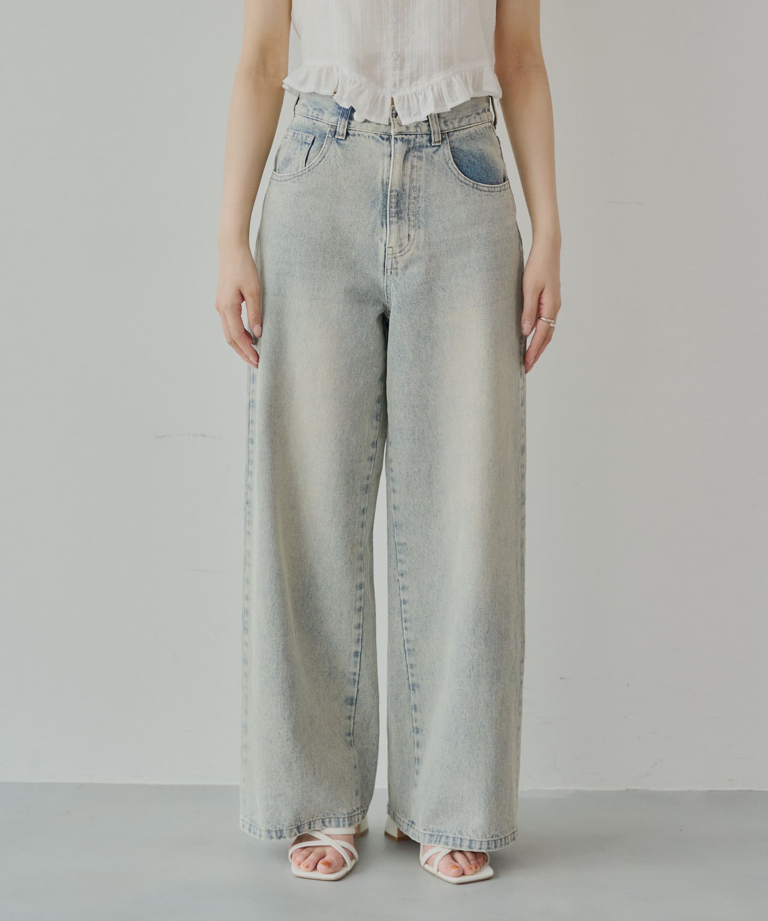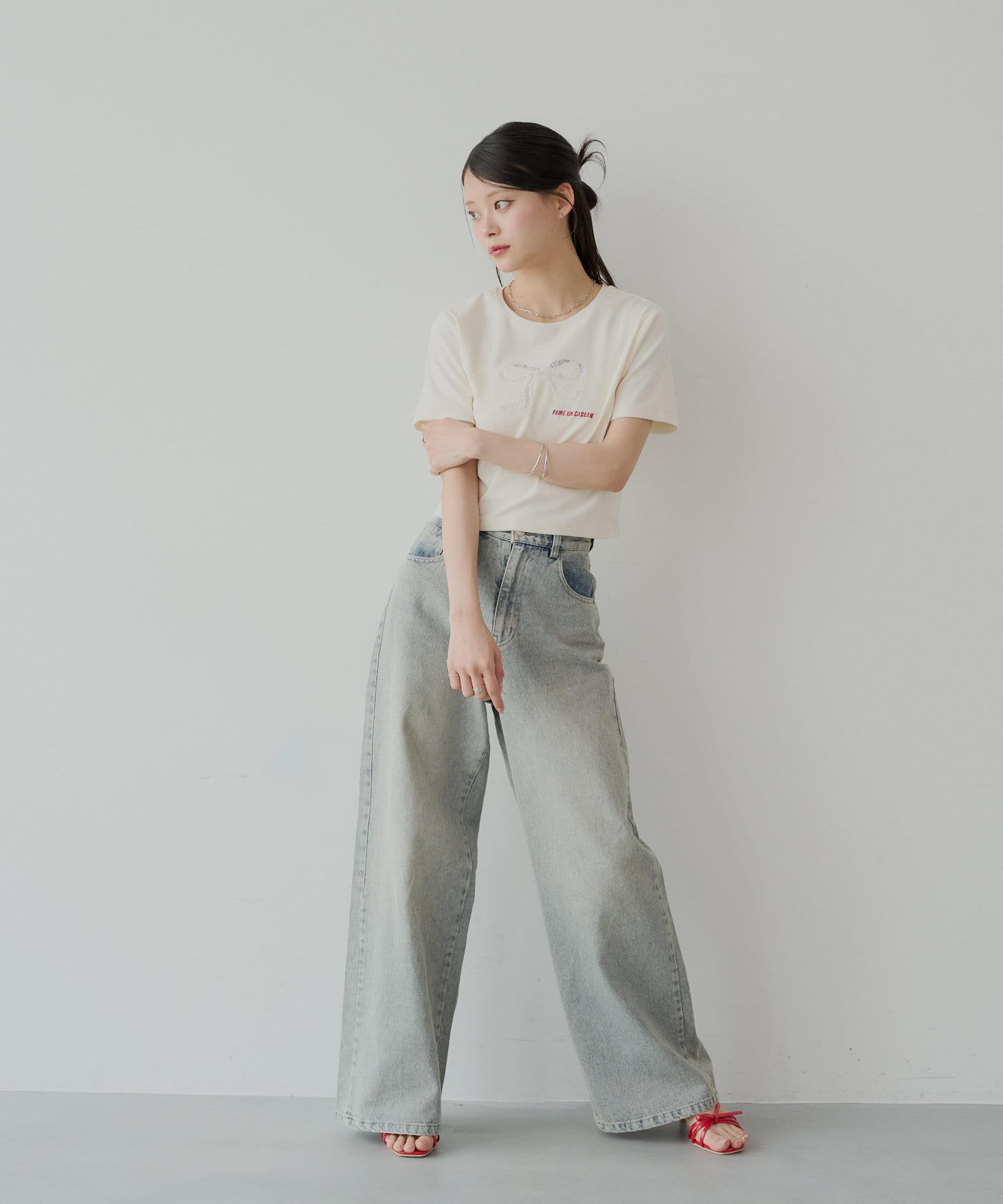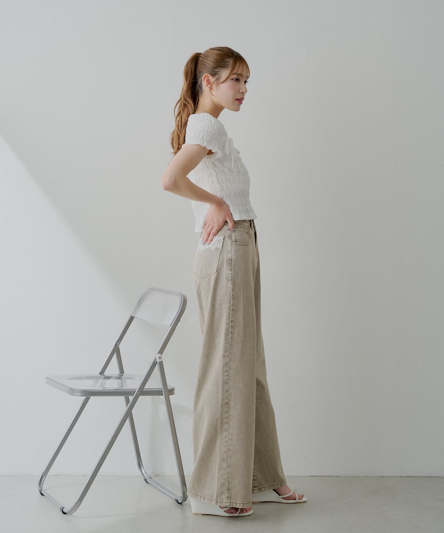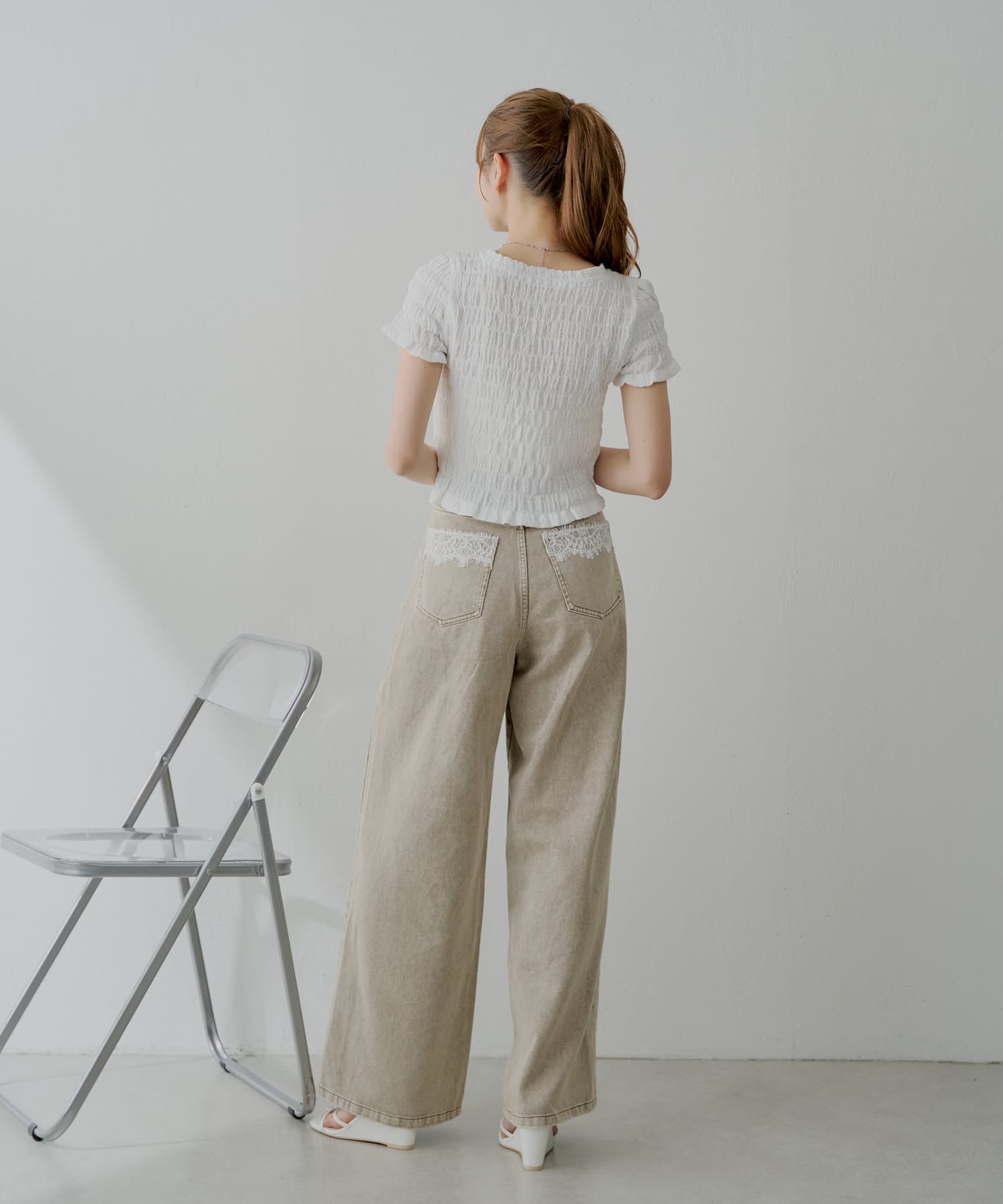 バックポケットの繊細なレースが魅力のワイドデニム登場!