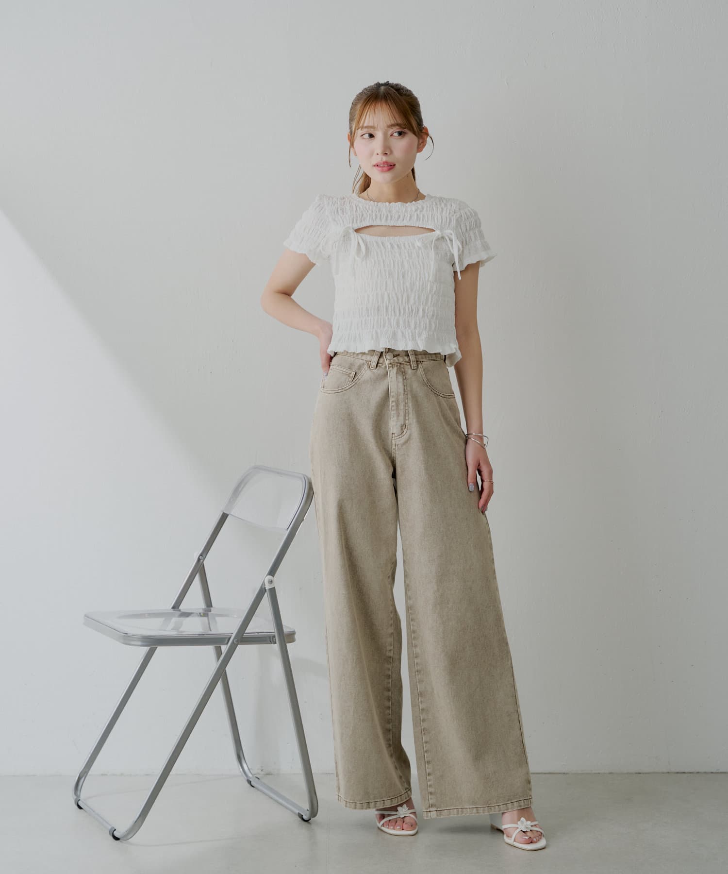 ・ワイドシルエットが、脚をすっきりと長く見せスタイルアップ効果も◎
