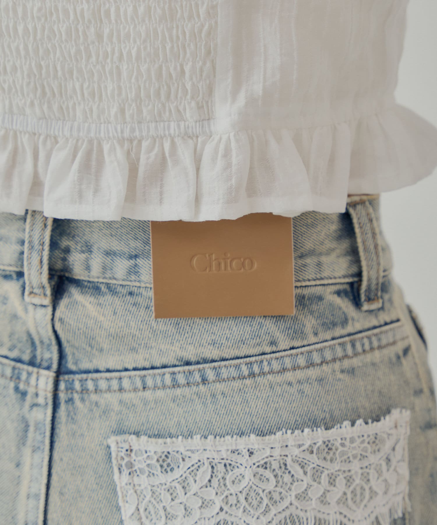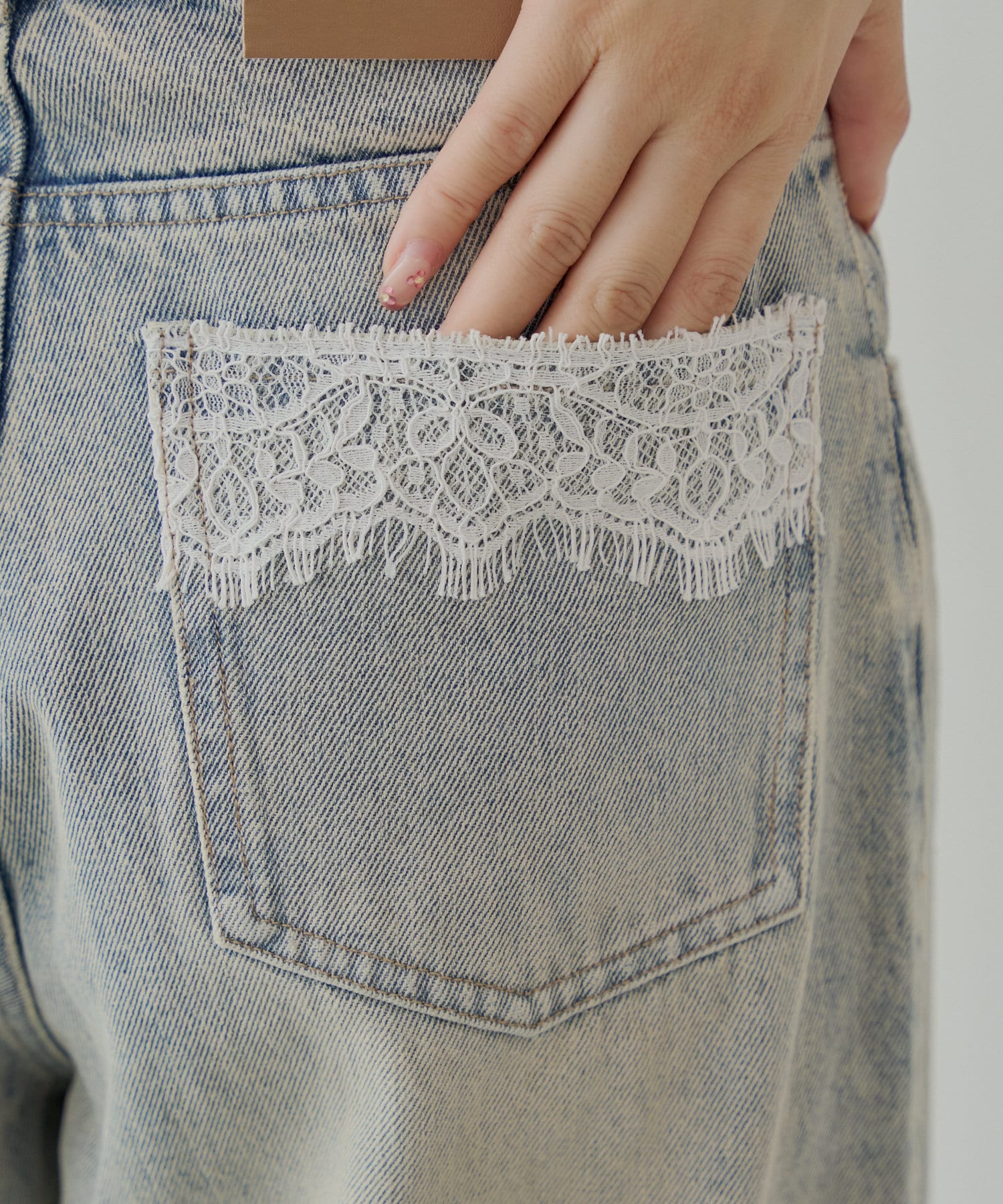 ・バックポケットのレースがさりげないアクセントとなり、カジュアルなデニムスタイルを上品にしてくれます。