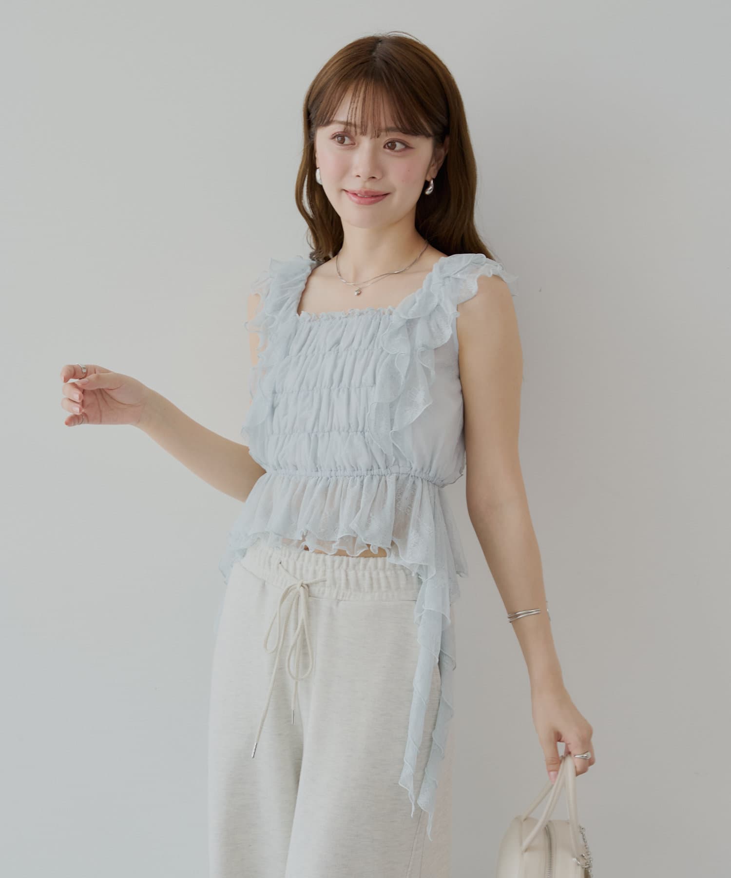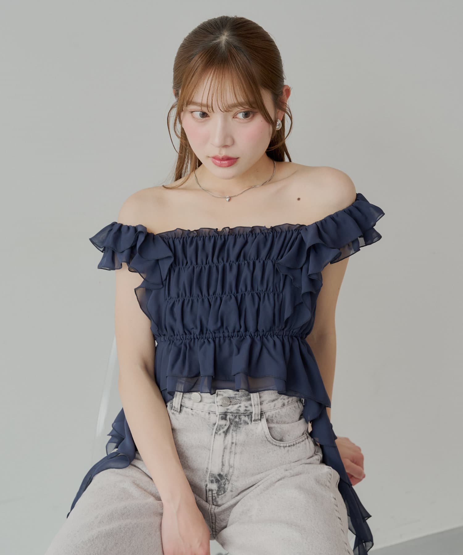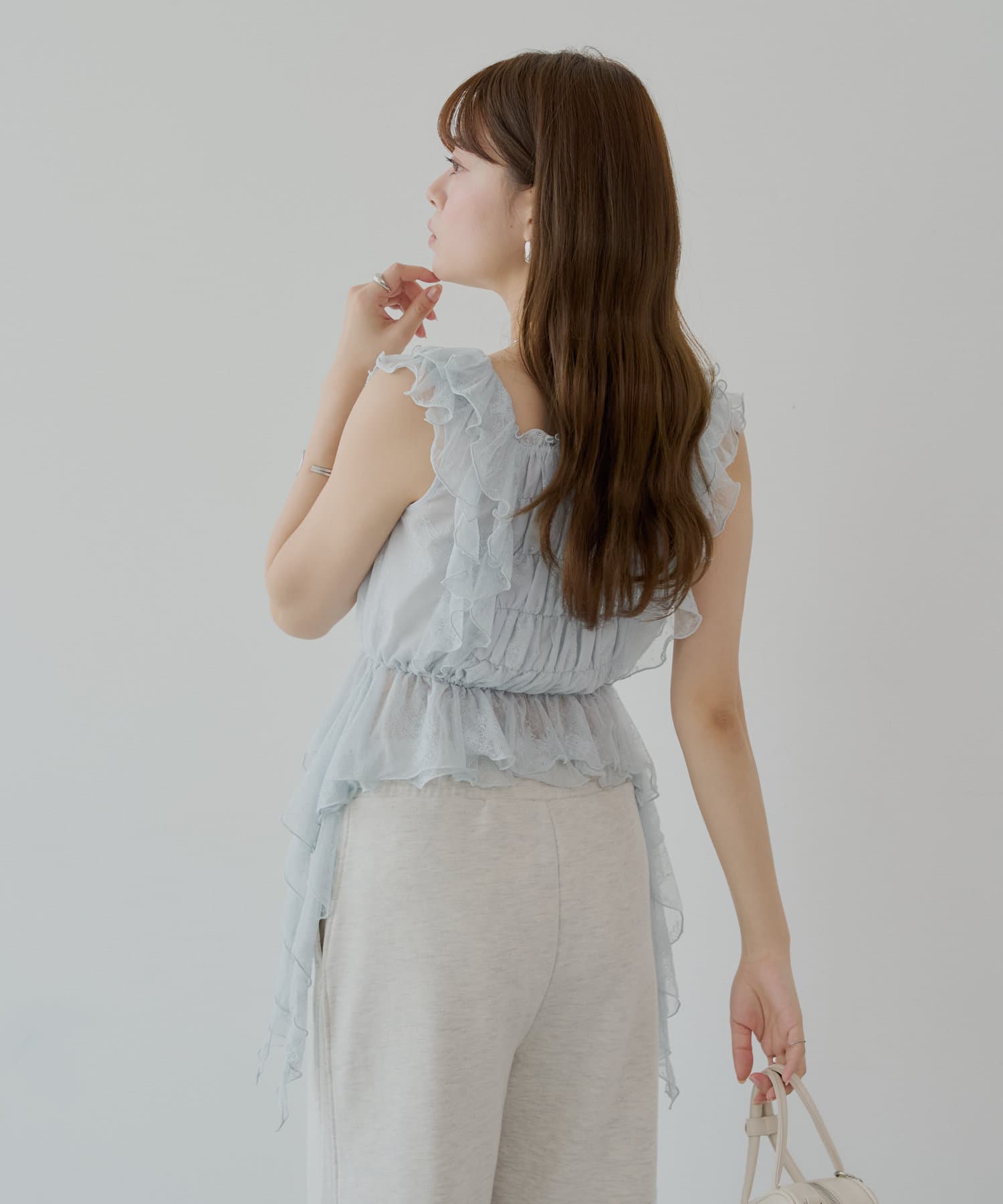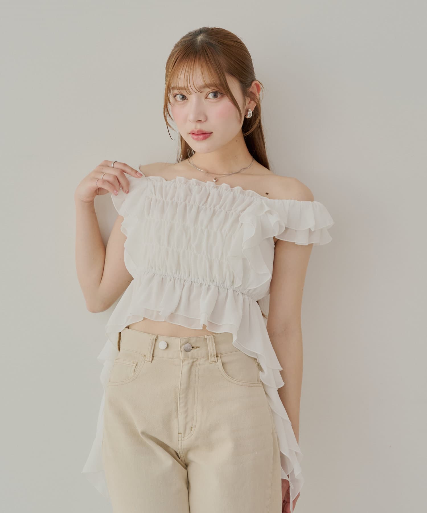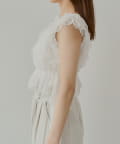 たっぷり入ったギャザーと裾に広がるフリルが魅力のブラウス登場!