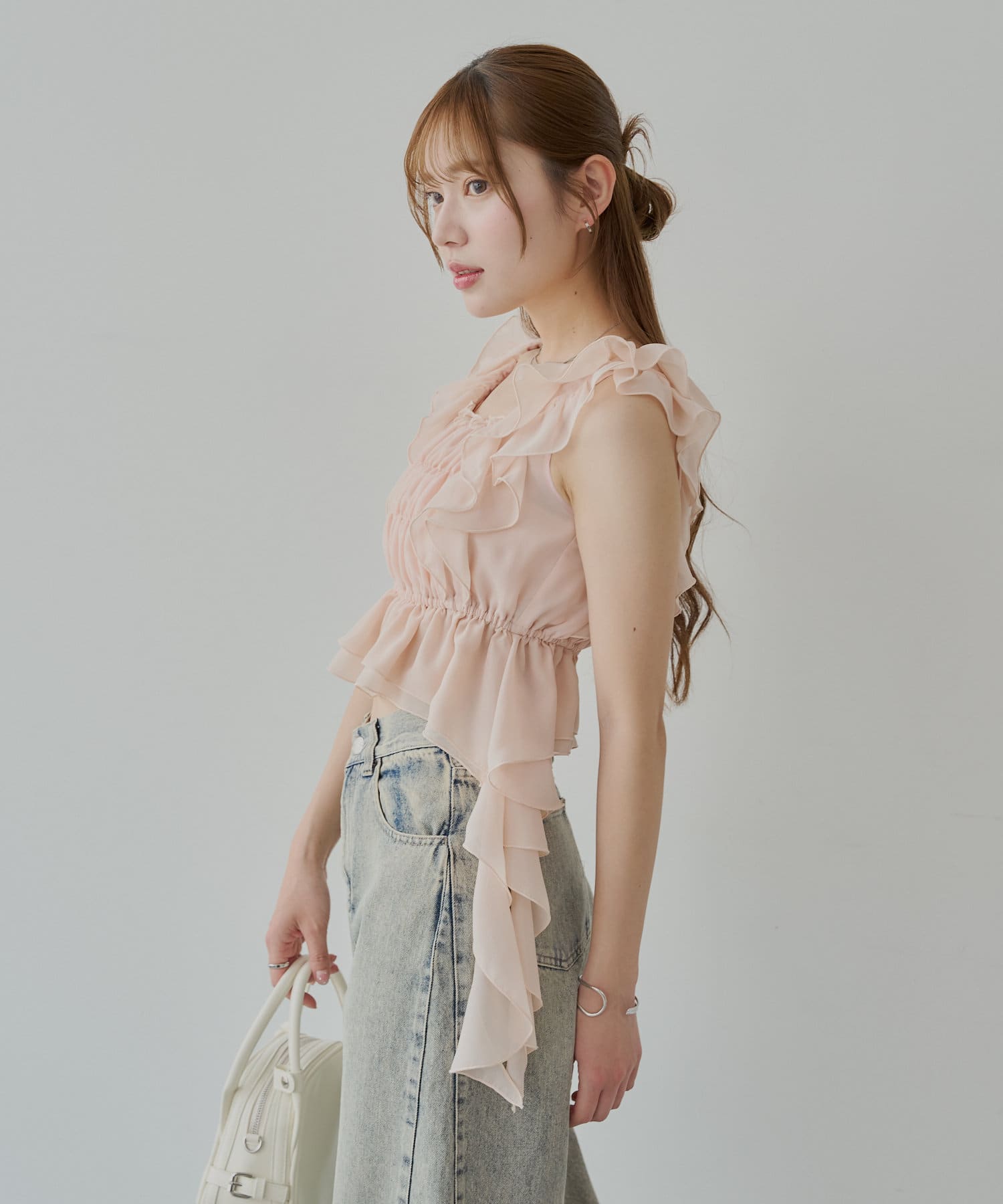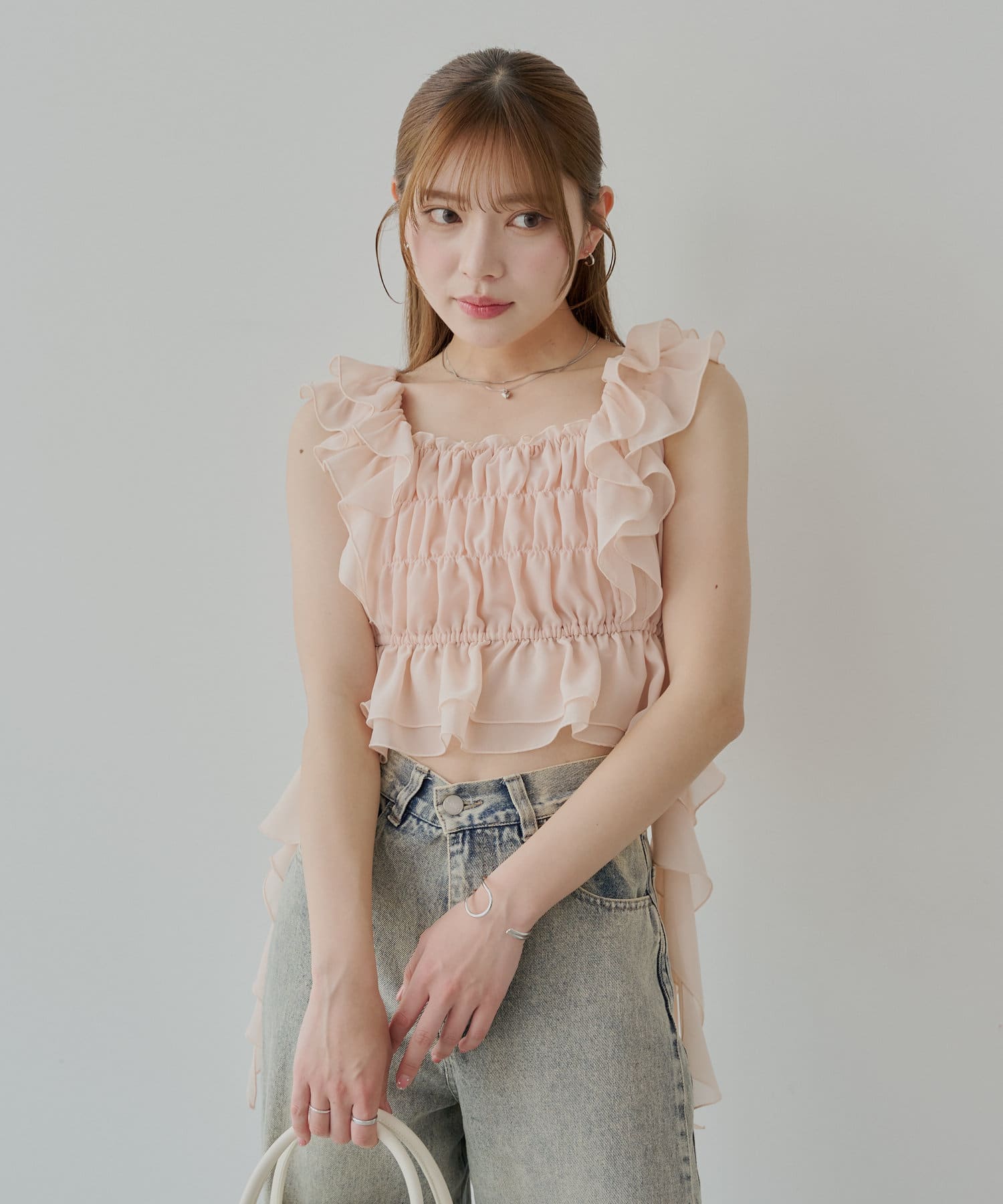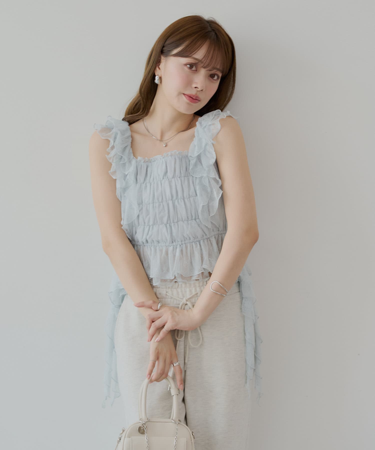 たっぷり入ったギャザーと裾に広がるフリルが魅力のブラウス登場!