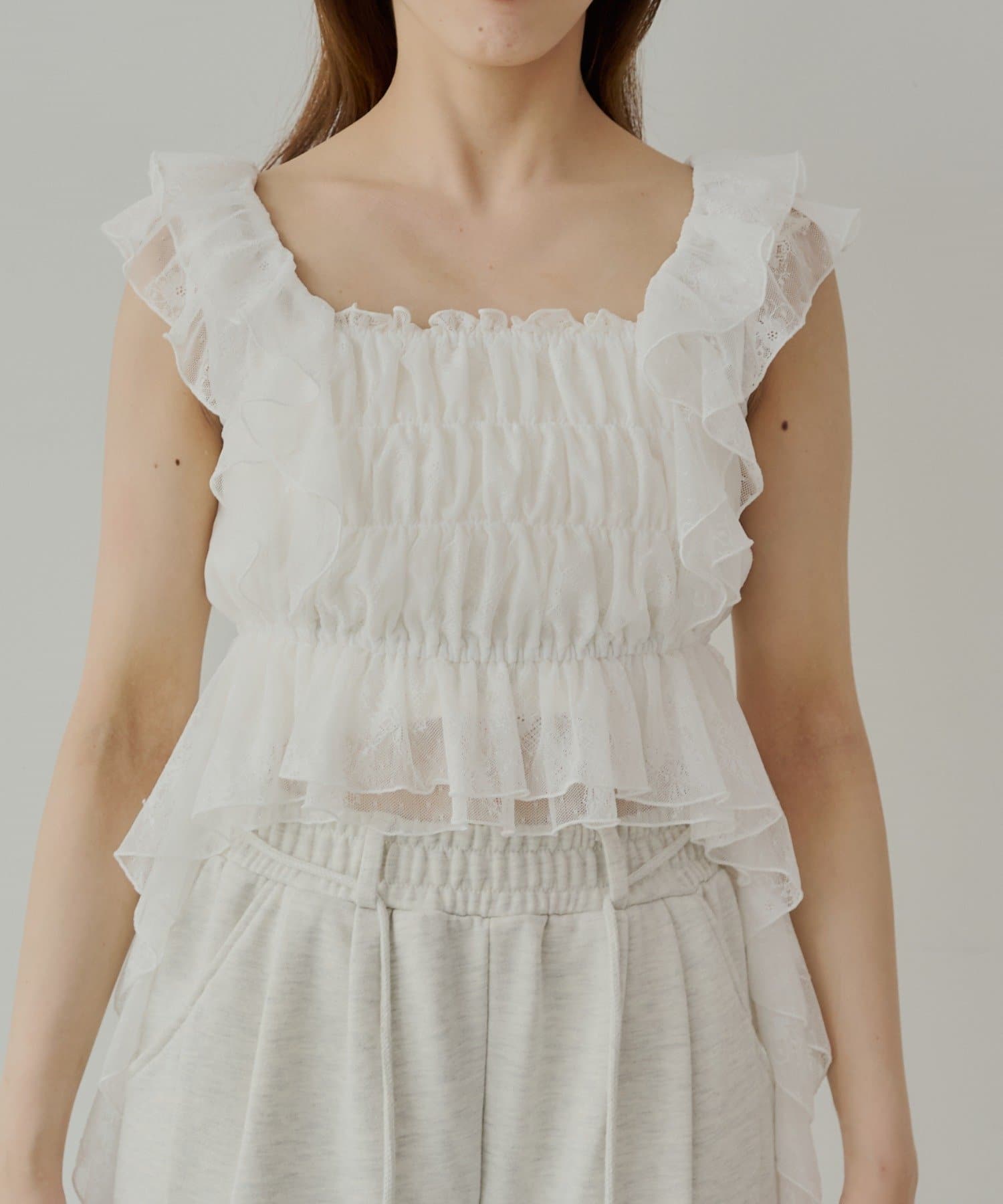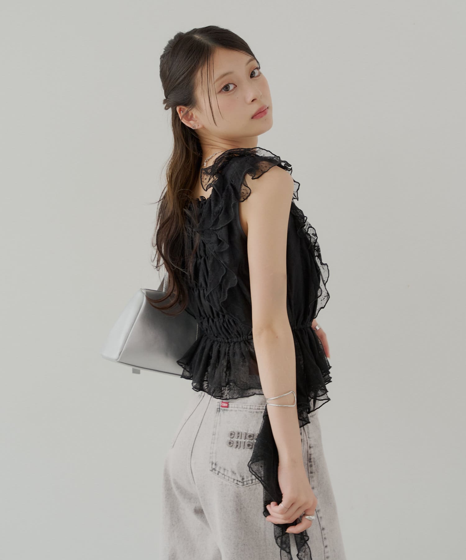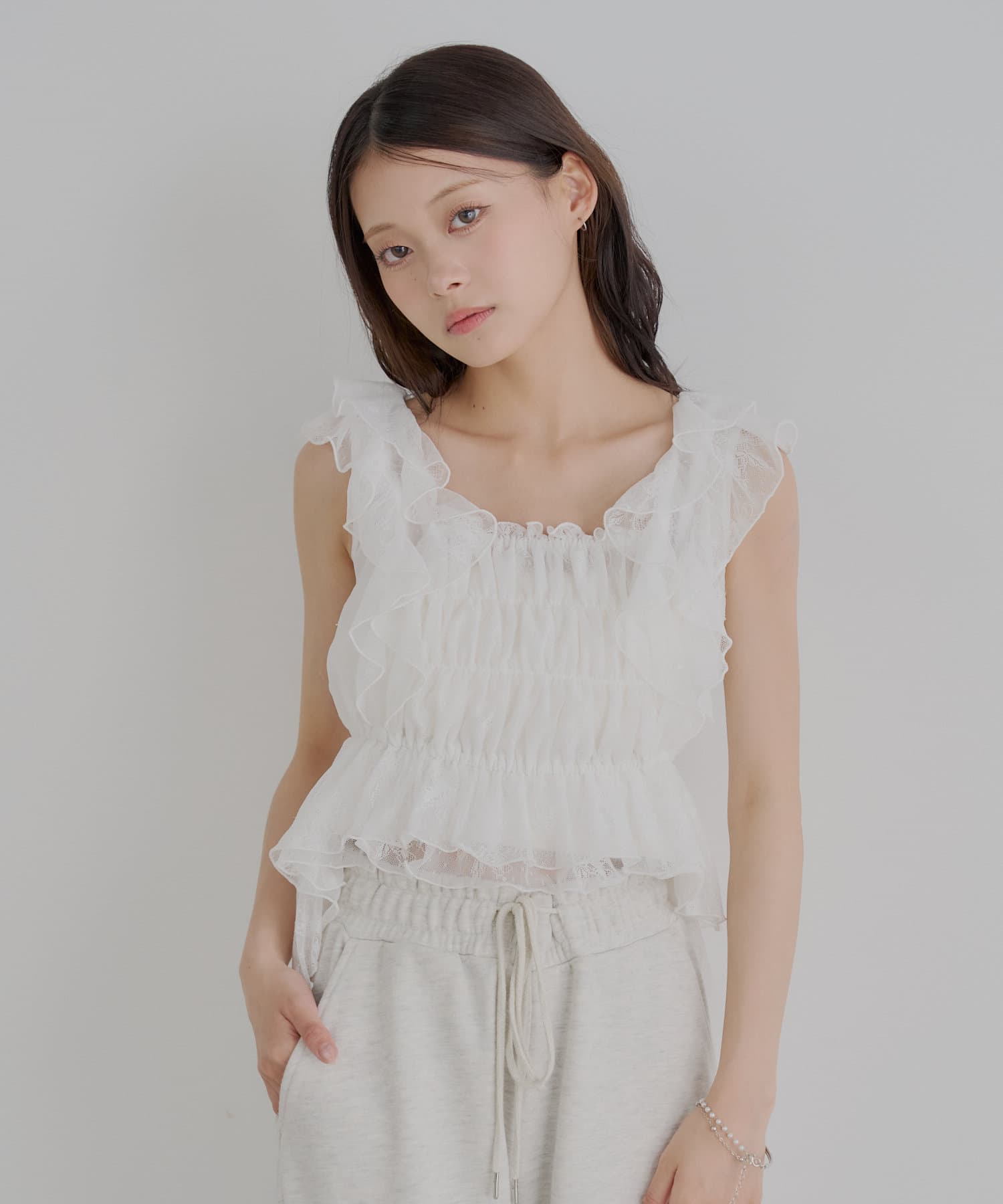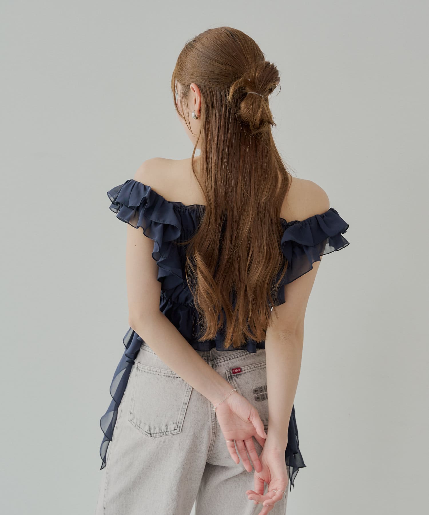 たっぷり入ったギャザーと裾に広がるフリルが魅力のブラウス登場!