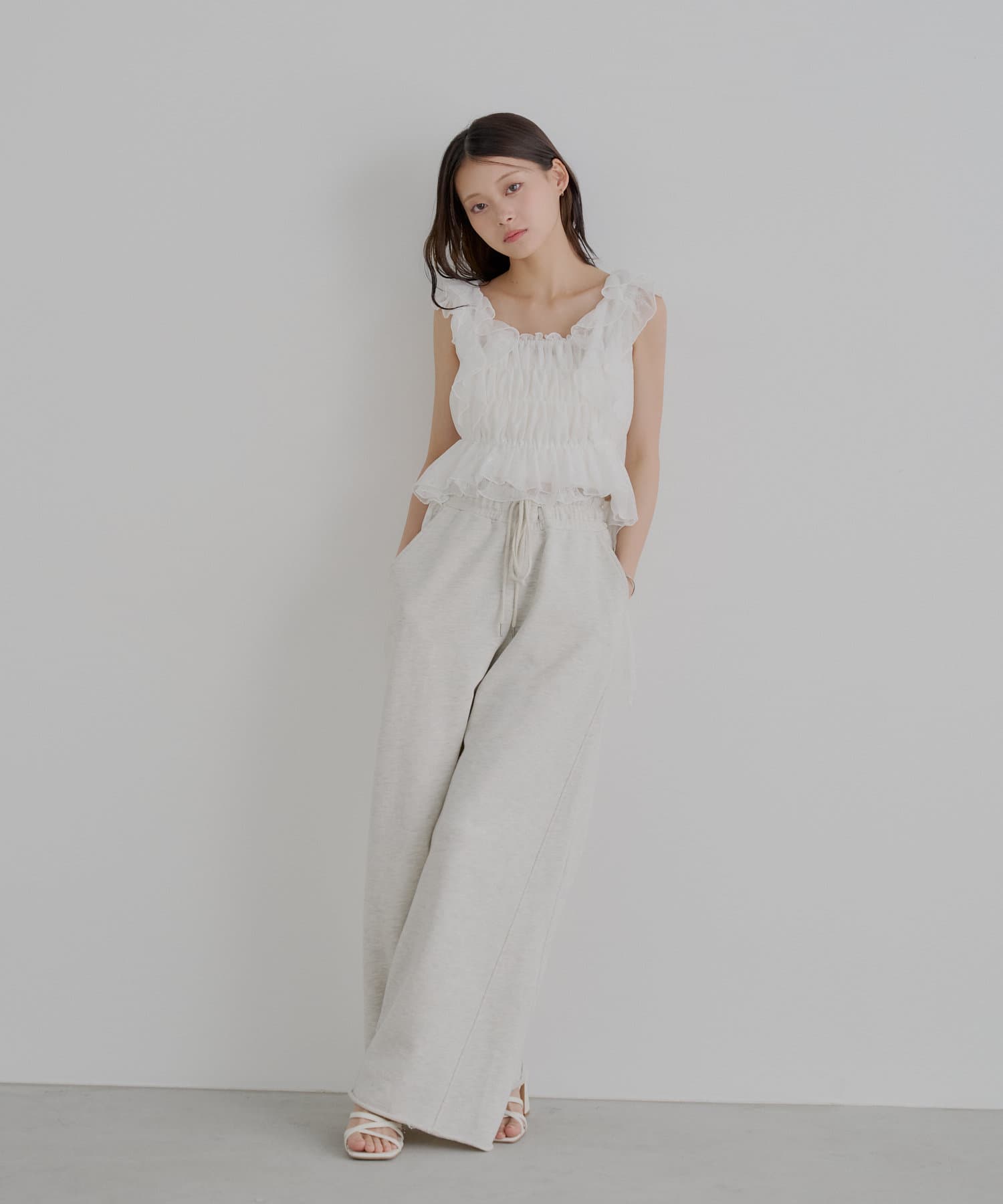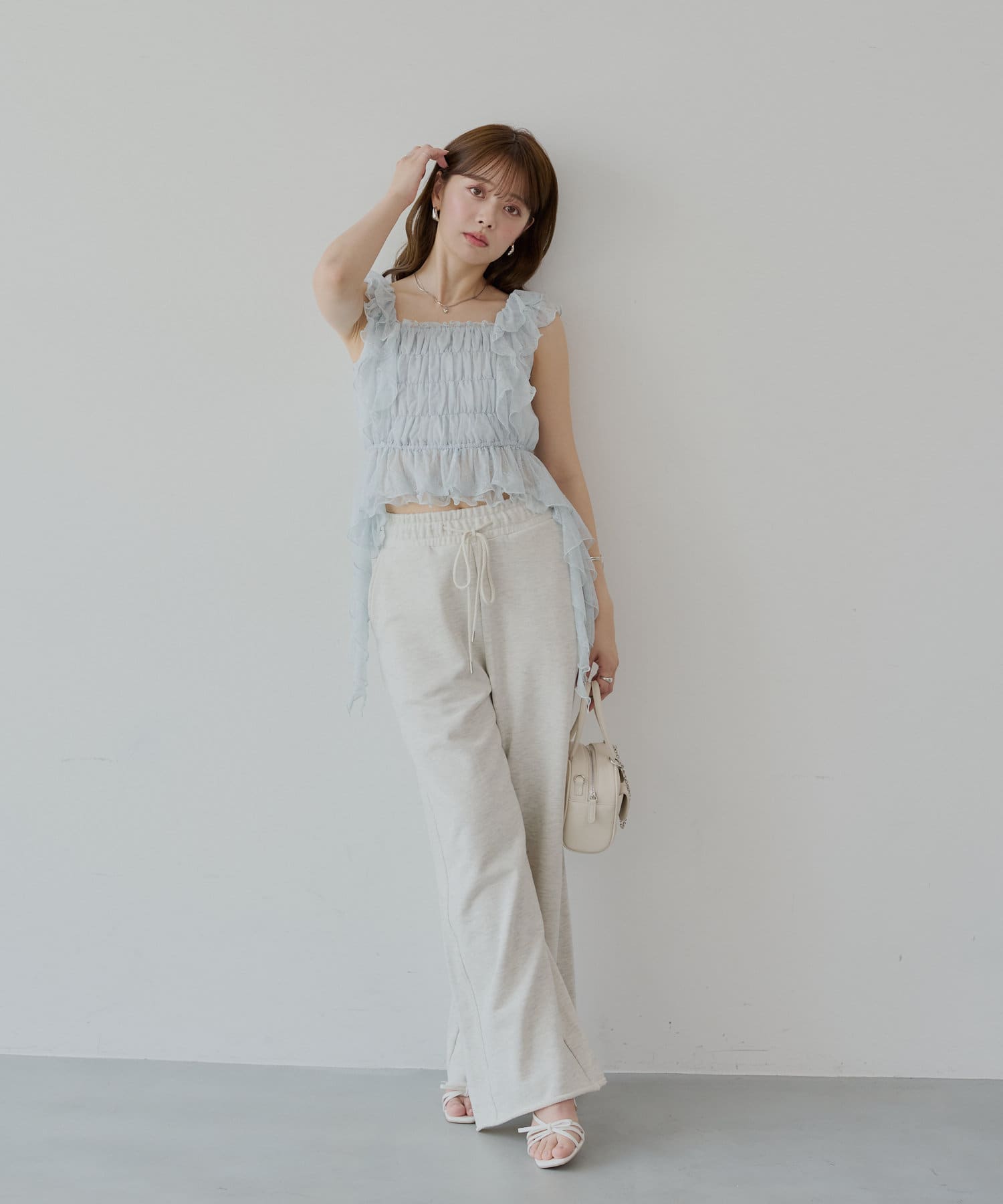 ▶おすすめアイテム:サイドリボンデザインルーズスウェットパンツ、カーブデザインドロストスウェットパンツ