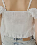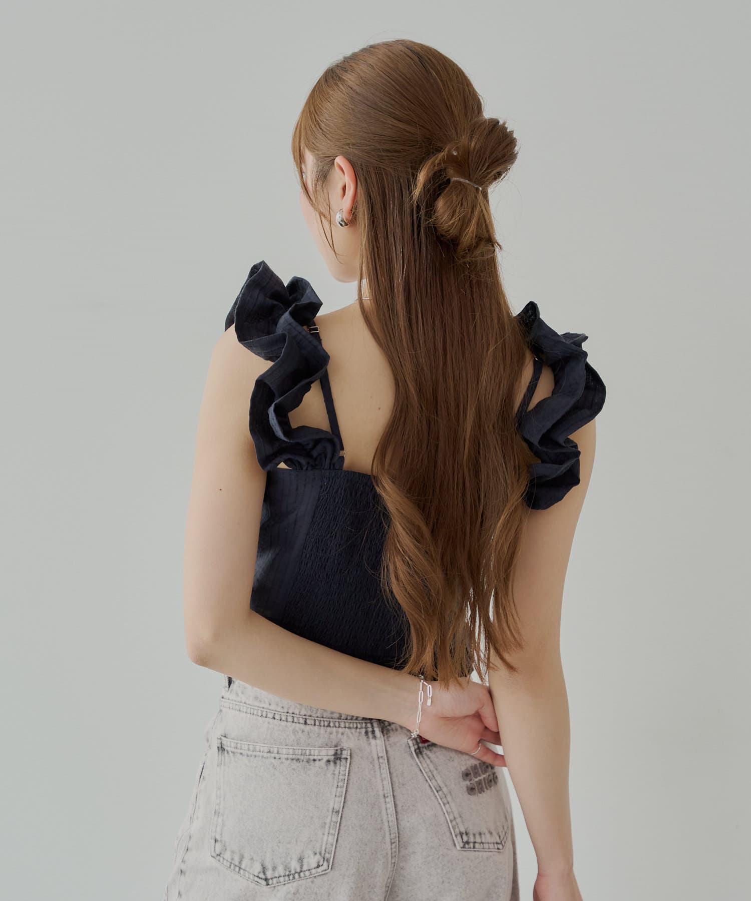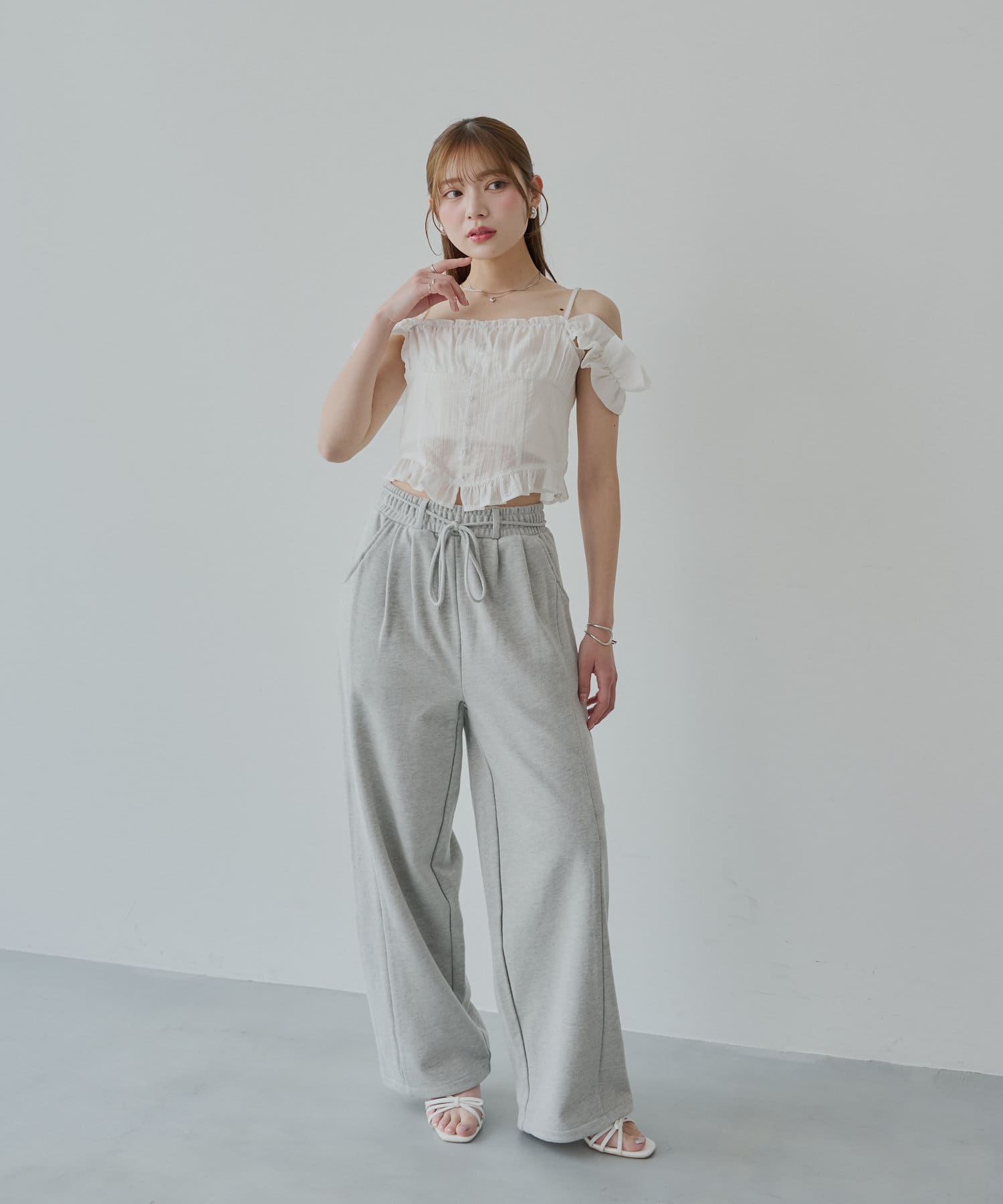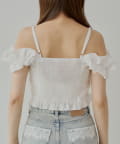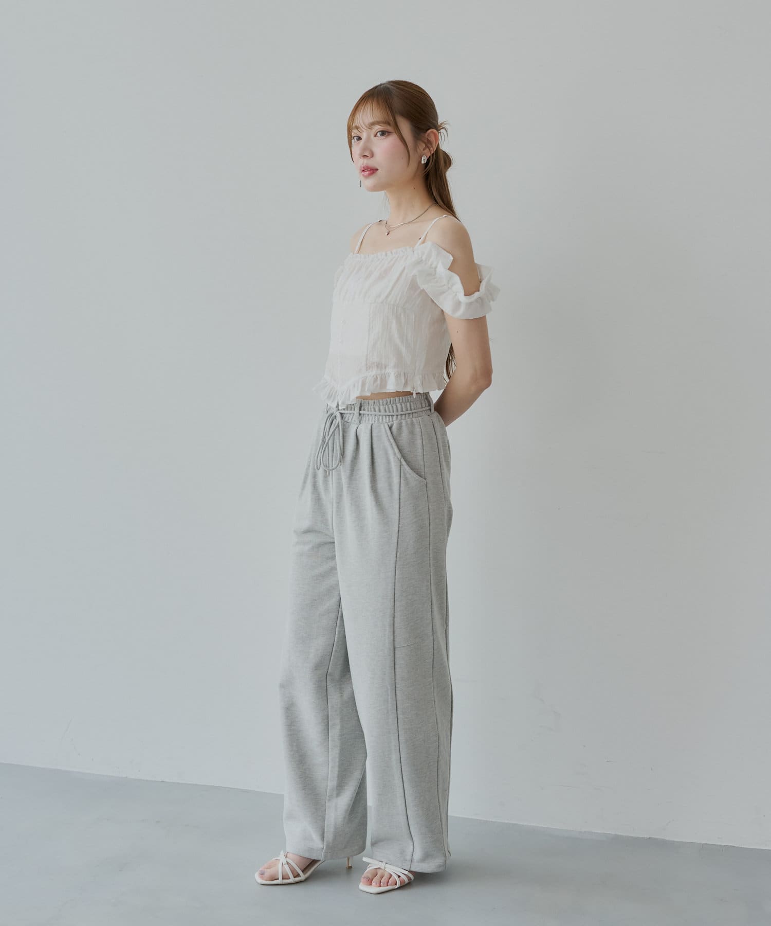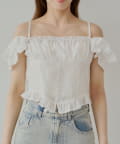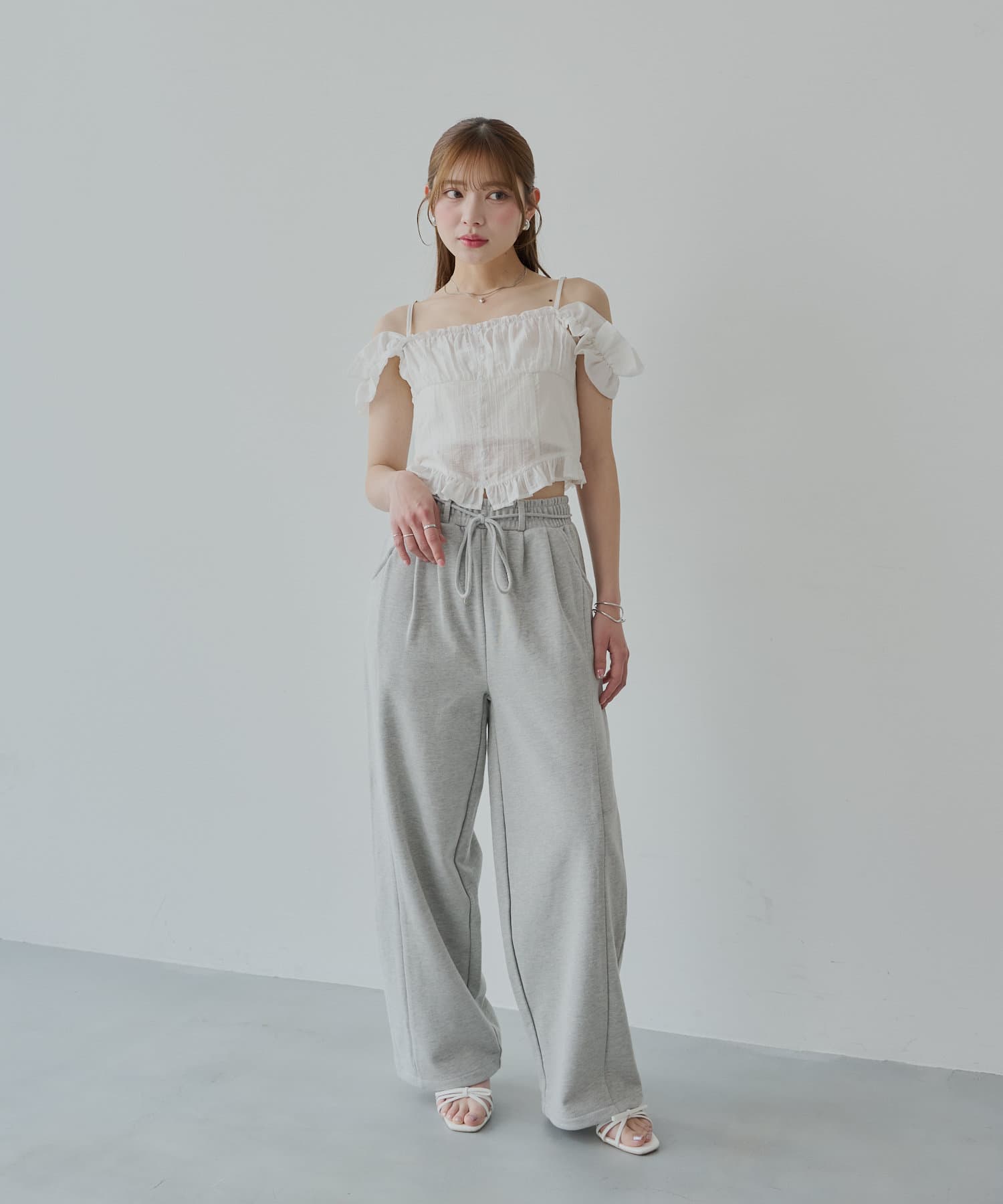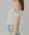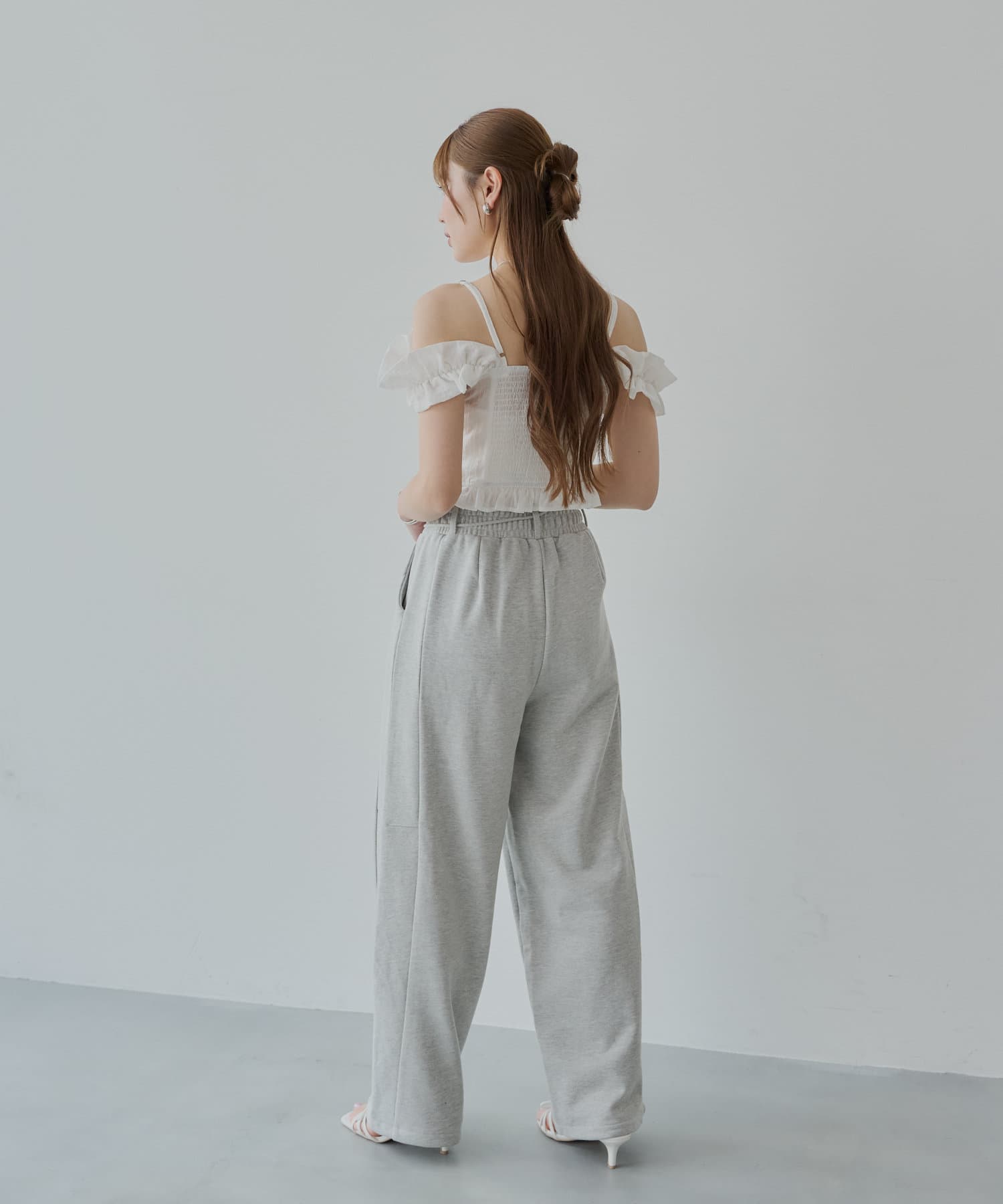 ・袖のフリルを落としてオフショルダーにして着るのも可愛いです。