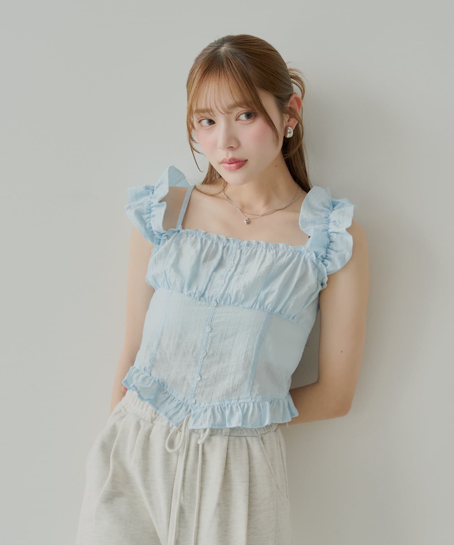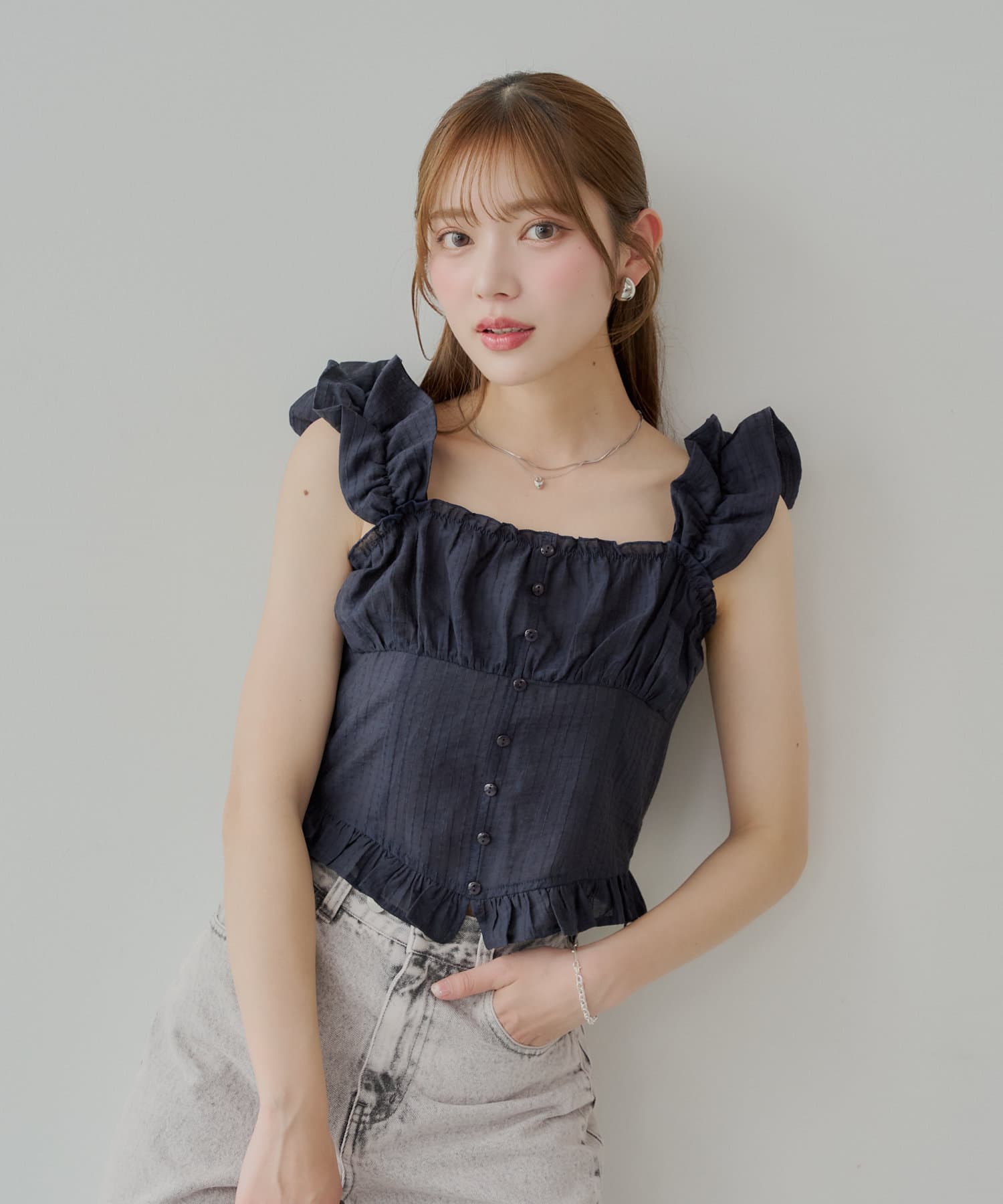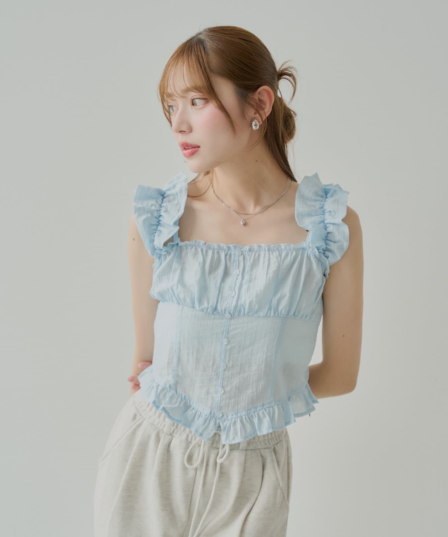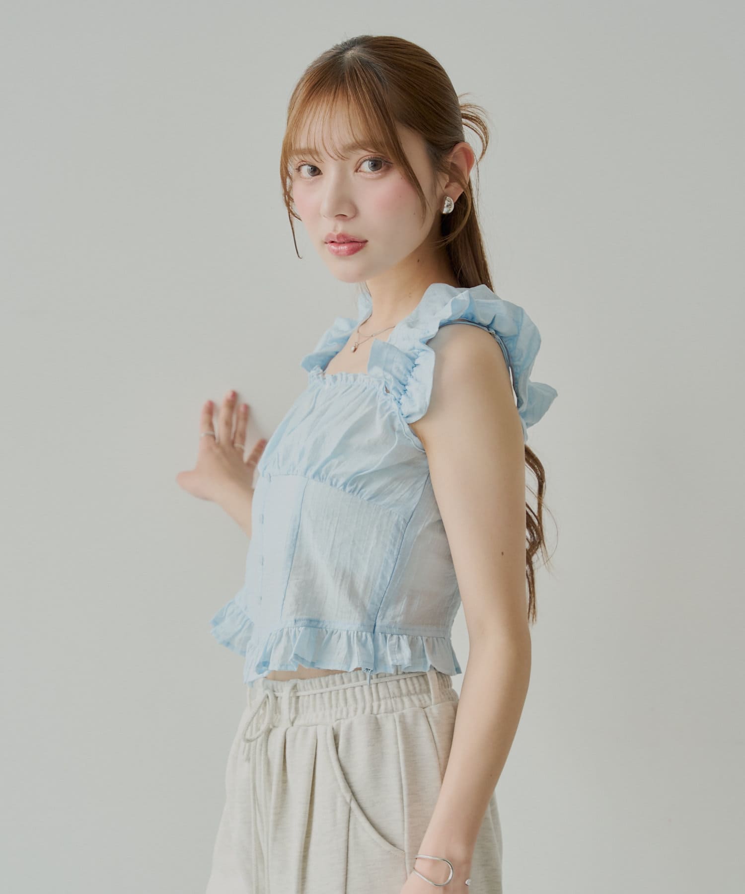 コルセットデザインをブラウスに落とし込んだノースリブラウス登場!