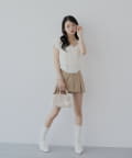 ・スカートを合わせて、女性らしいフェミニンなスタイルにも着ていただけます。