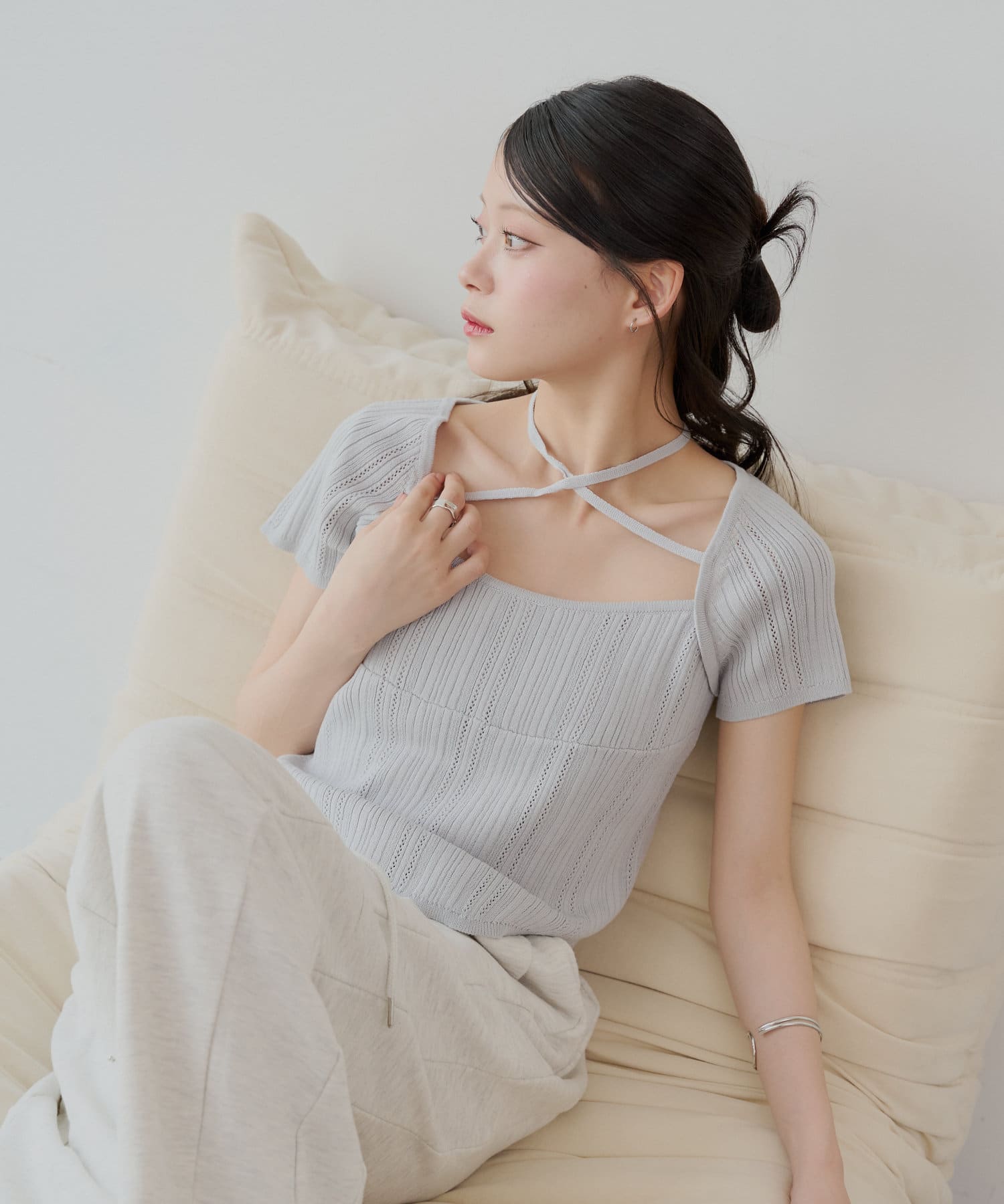 ・繊細なリブ編みが上品な印象を与え、女性らしいシルエットを美しく魅せてくれます。