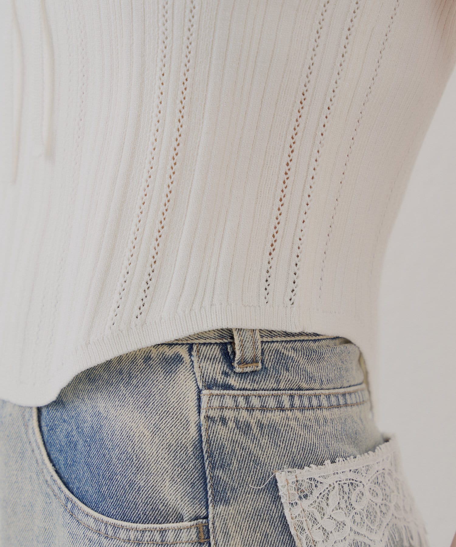 ・繊細な透かし編みが、さりげない抜け感を演出してくれます。