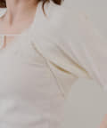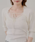 ・胸元の自由に結べるリボンがアクセントに。前で結んだり後ろで結んだりと、気分に合わせてアレンジを楽しめます。