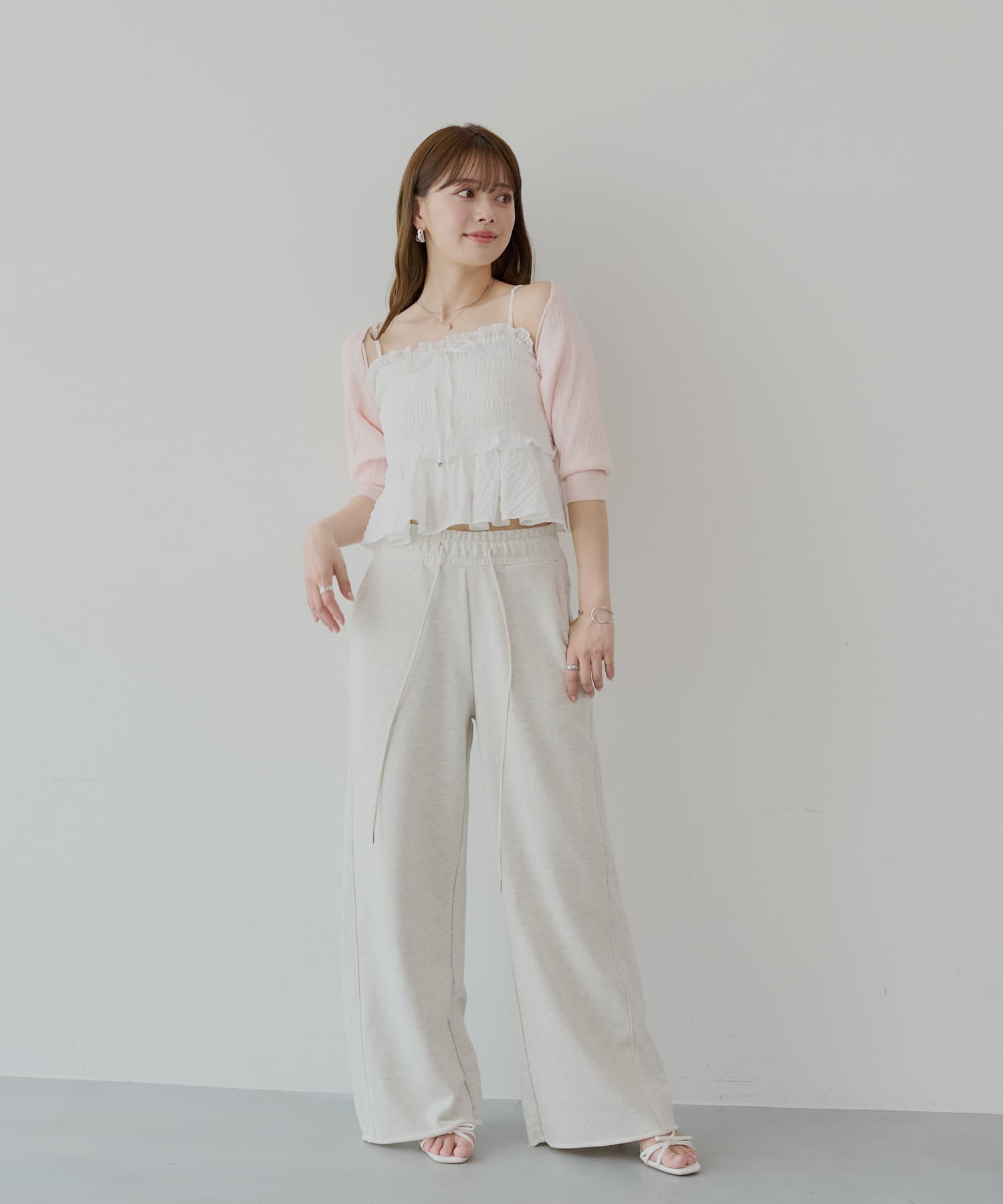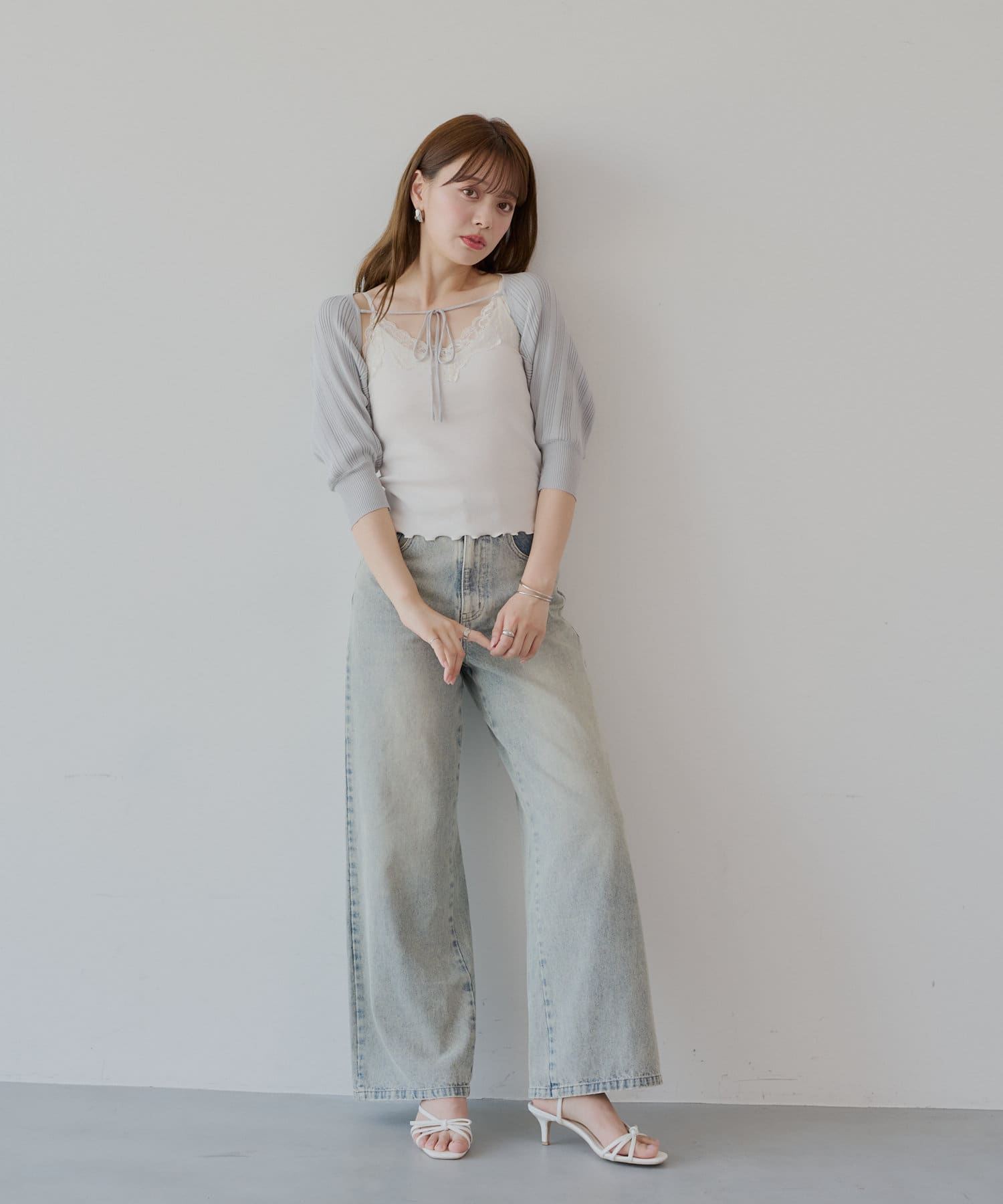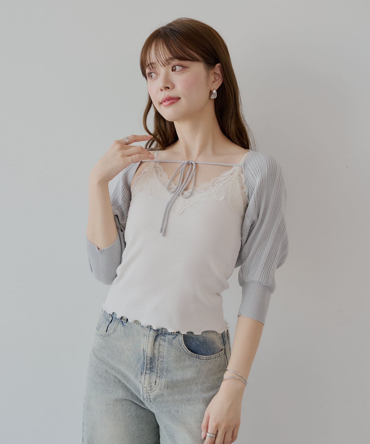 ・キャミソールの上から羽織ると、フェミニンなスタイルにも着ていただけます。