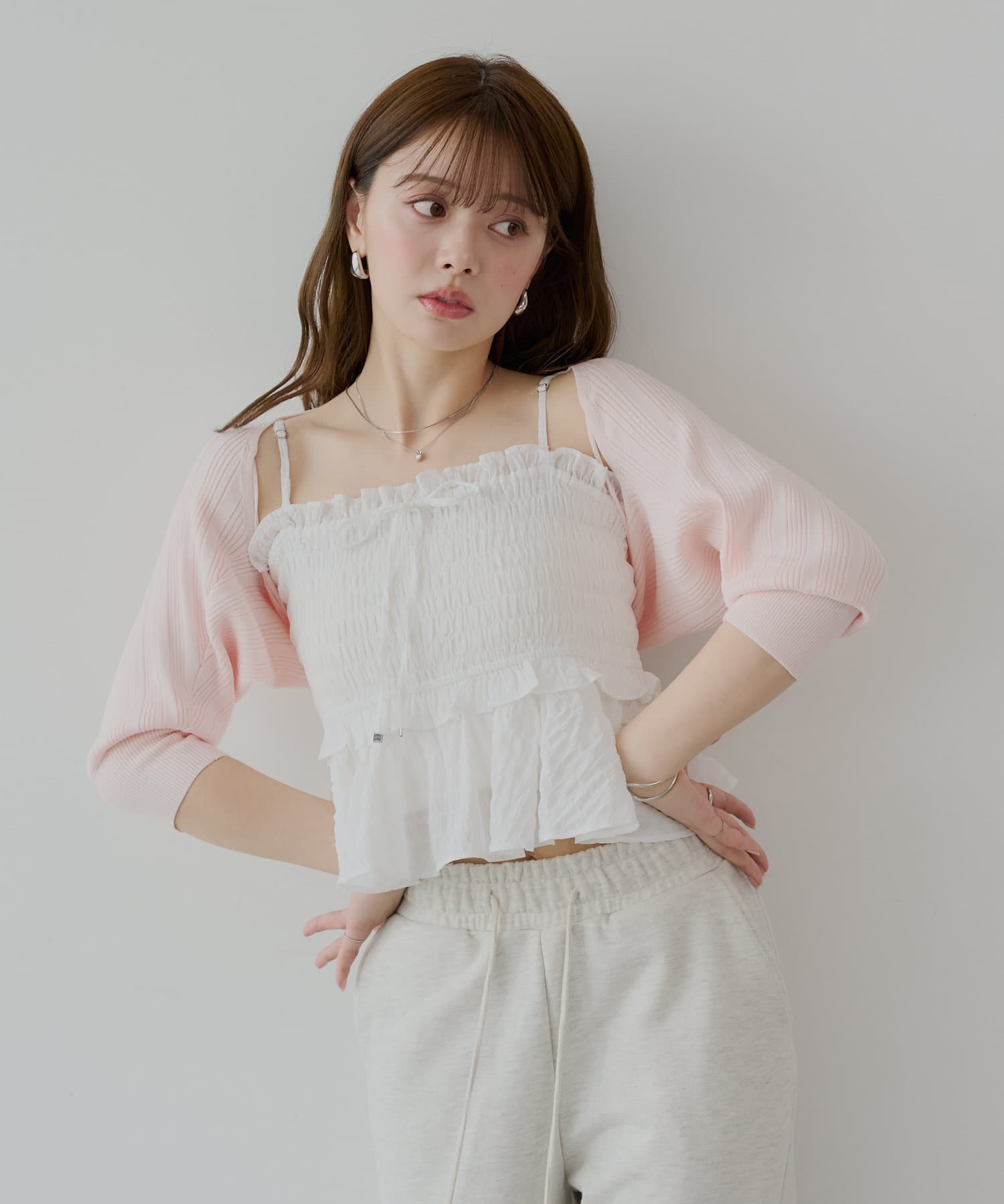 ふんわりシルエットで、抜け感のある着こなしが叶うボレロカーディガン