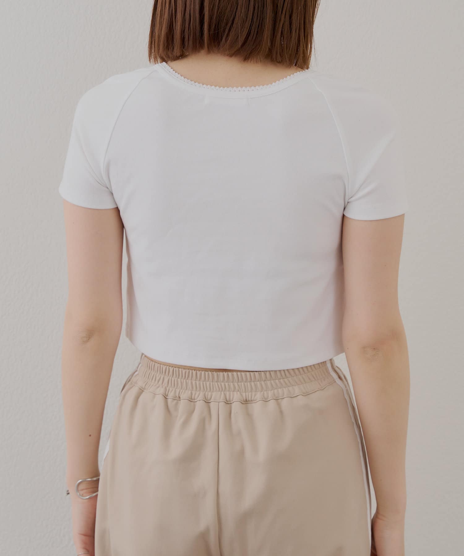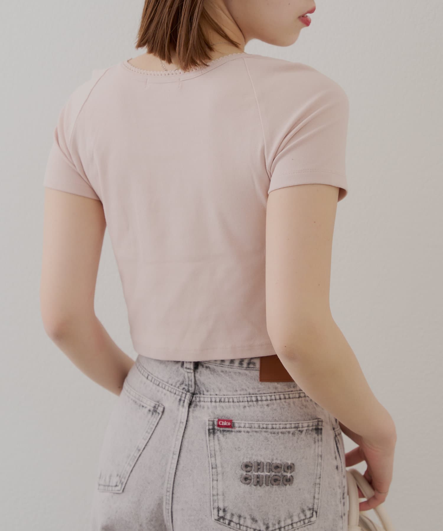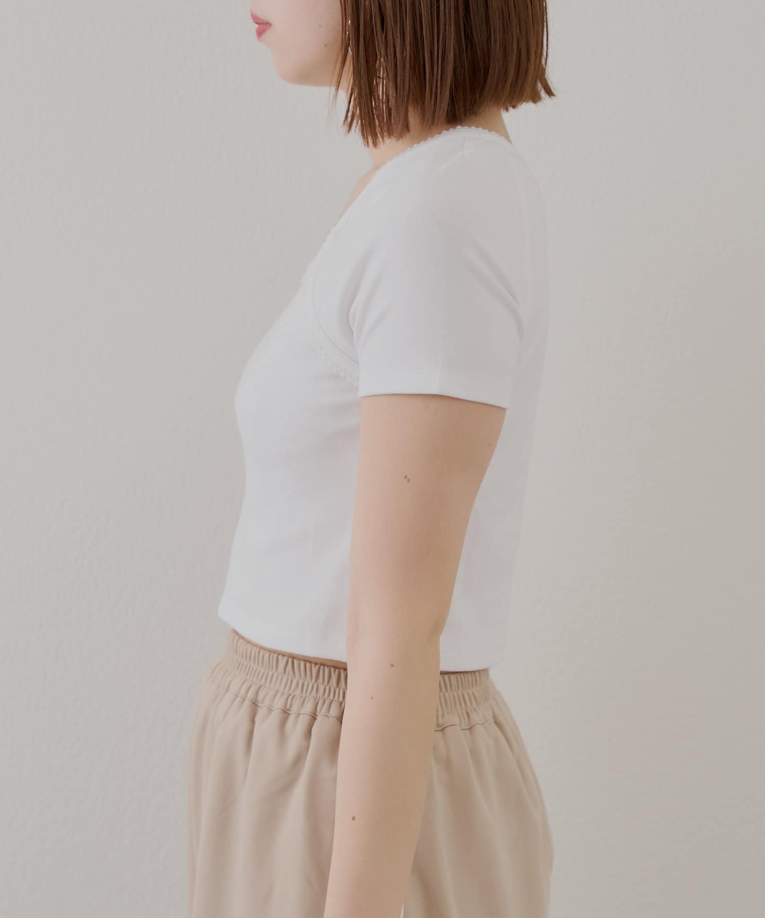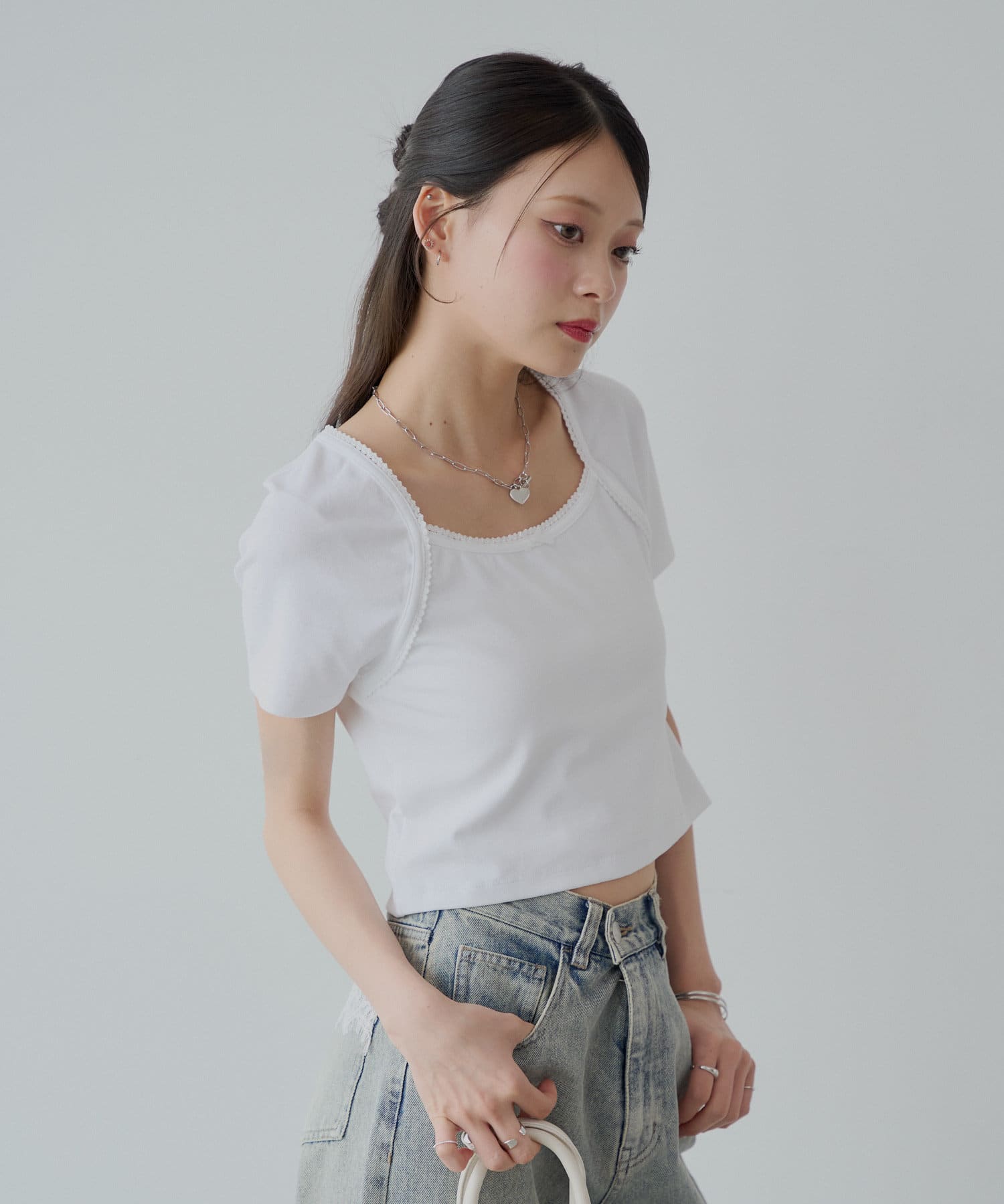 一枚で着映えする、大人可愛いピコレースパフチビT