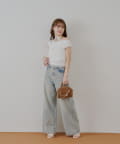 ・デニムを合わせると、上品で大人っぽいスタイルに仕上がります。