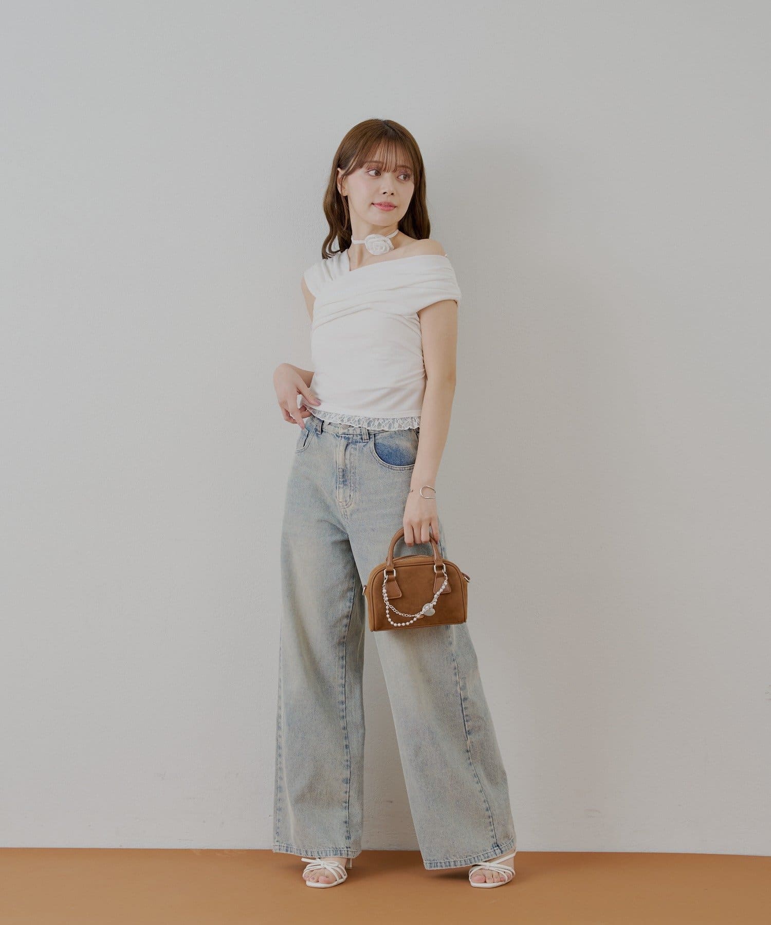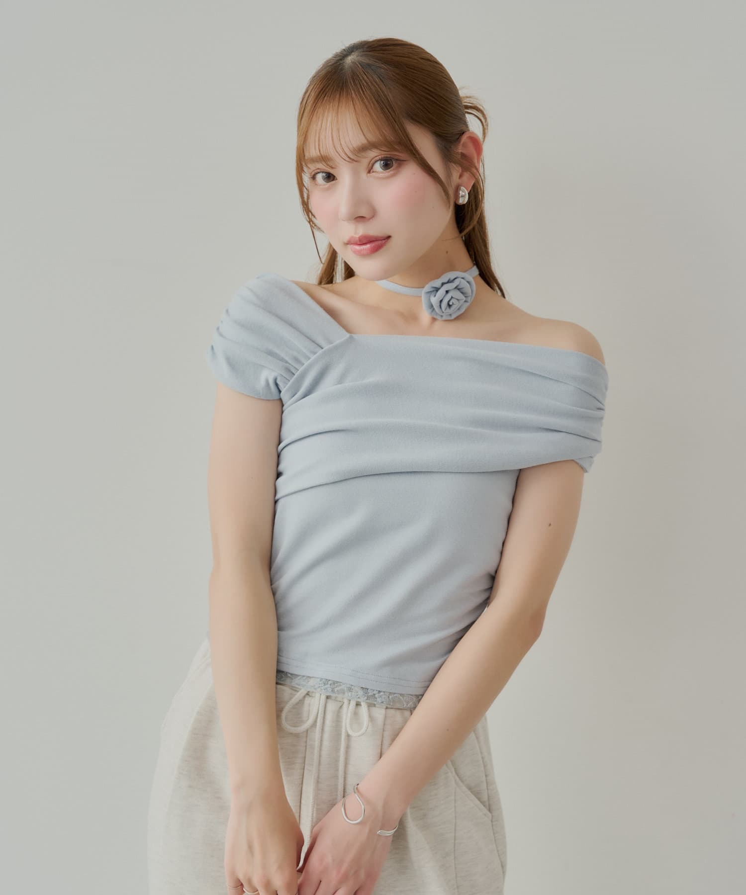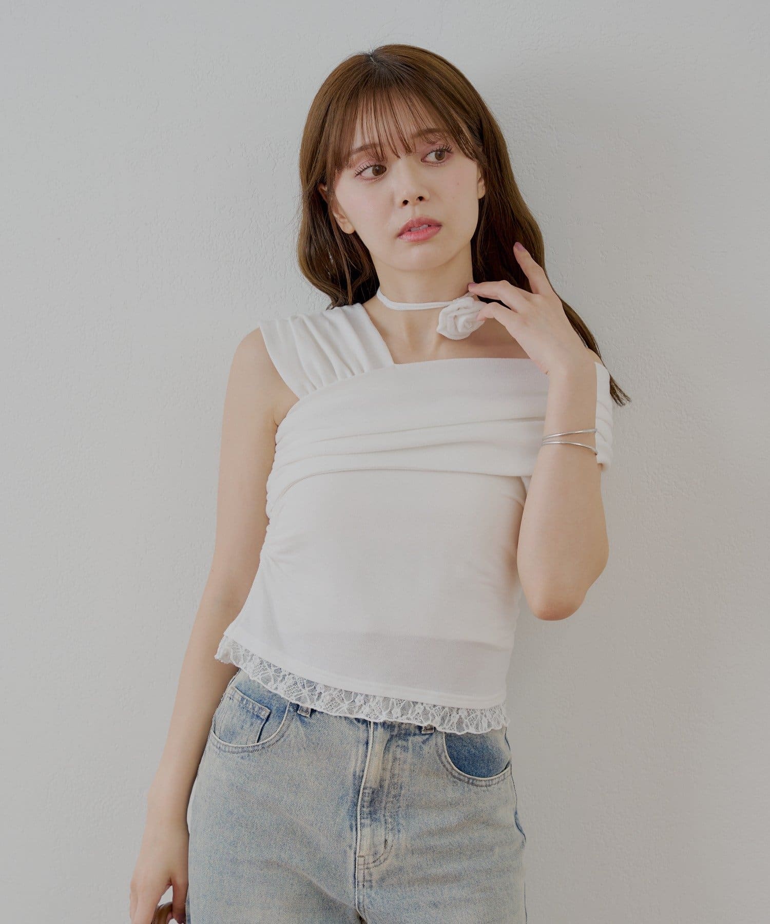 • OUTLET(アウトレット) 【Chico】ローズチョーカー付ワンショル裾レースT