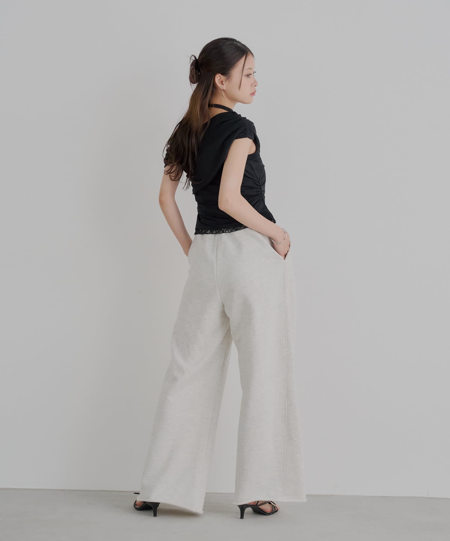 ・ヒールのあるキレイめなサンダルやパンプスを合わせて抜け感をプラスするのがおすすめです。