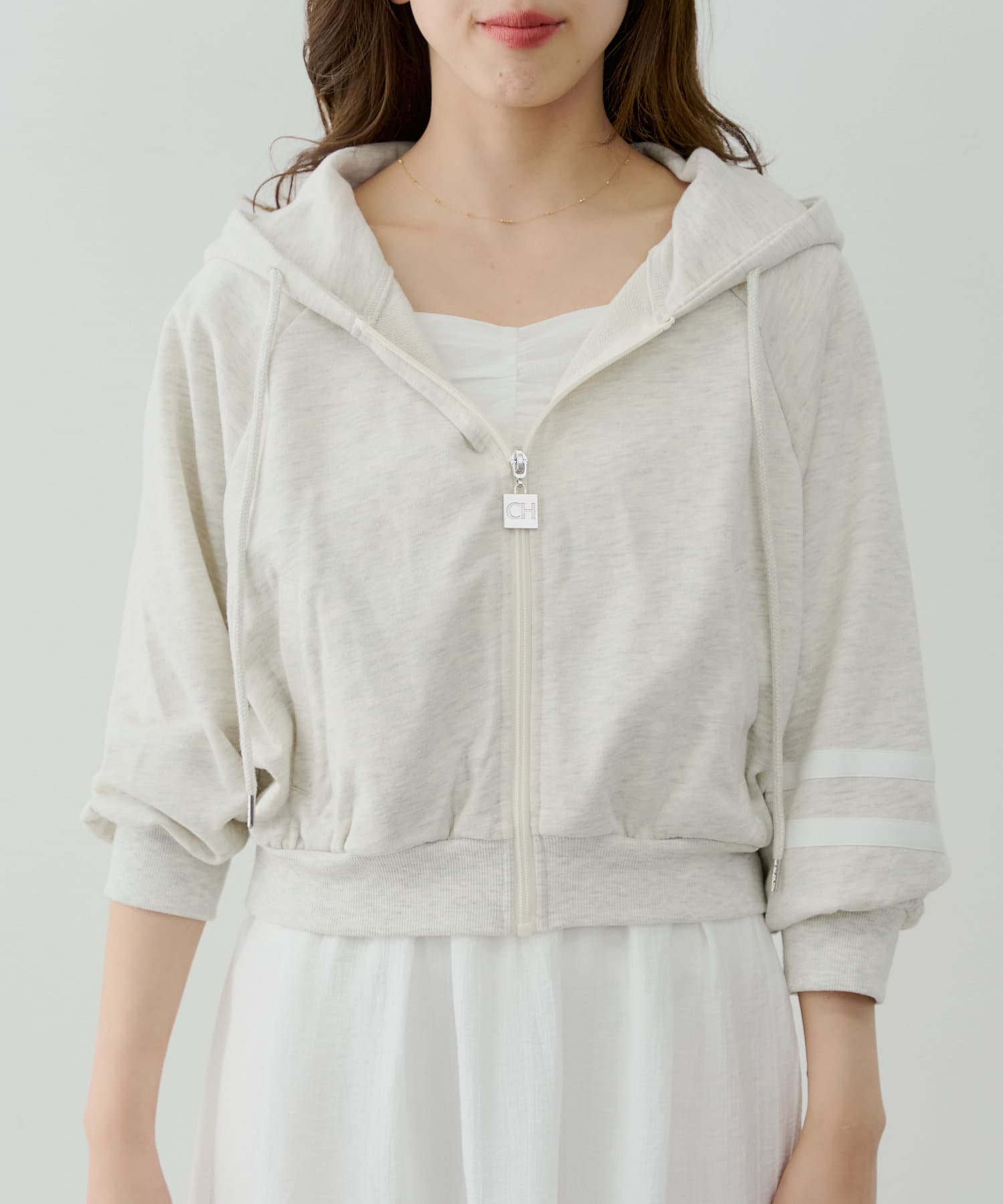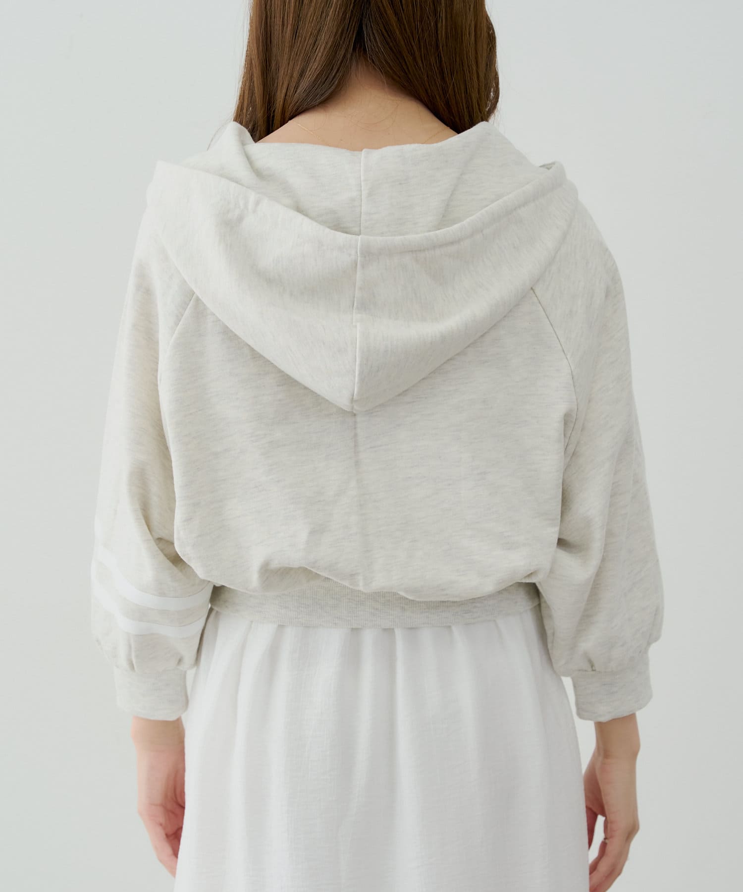 ショート丈袖ラインパーカー