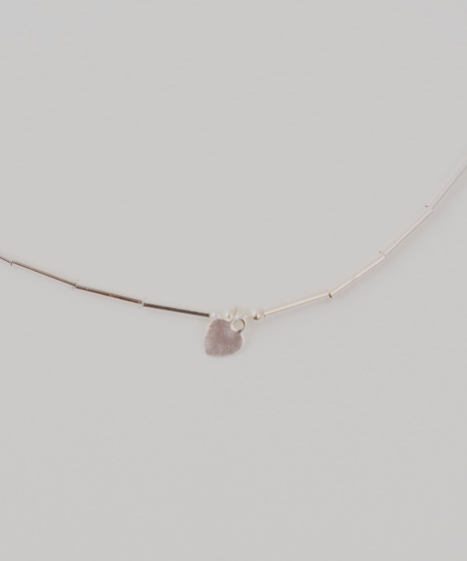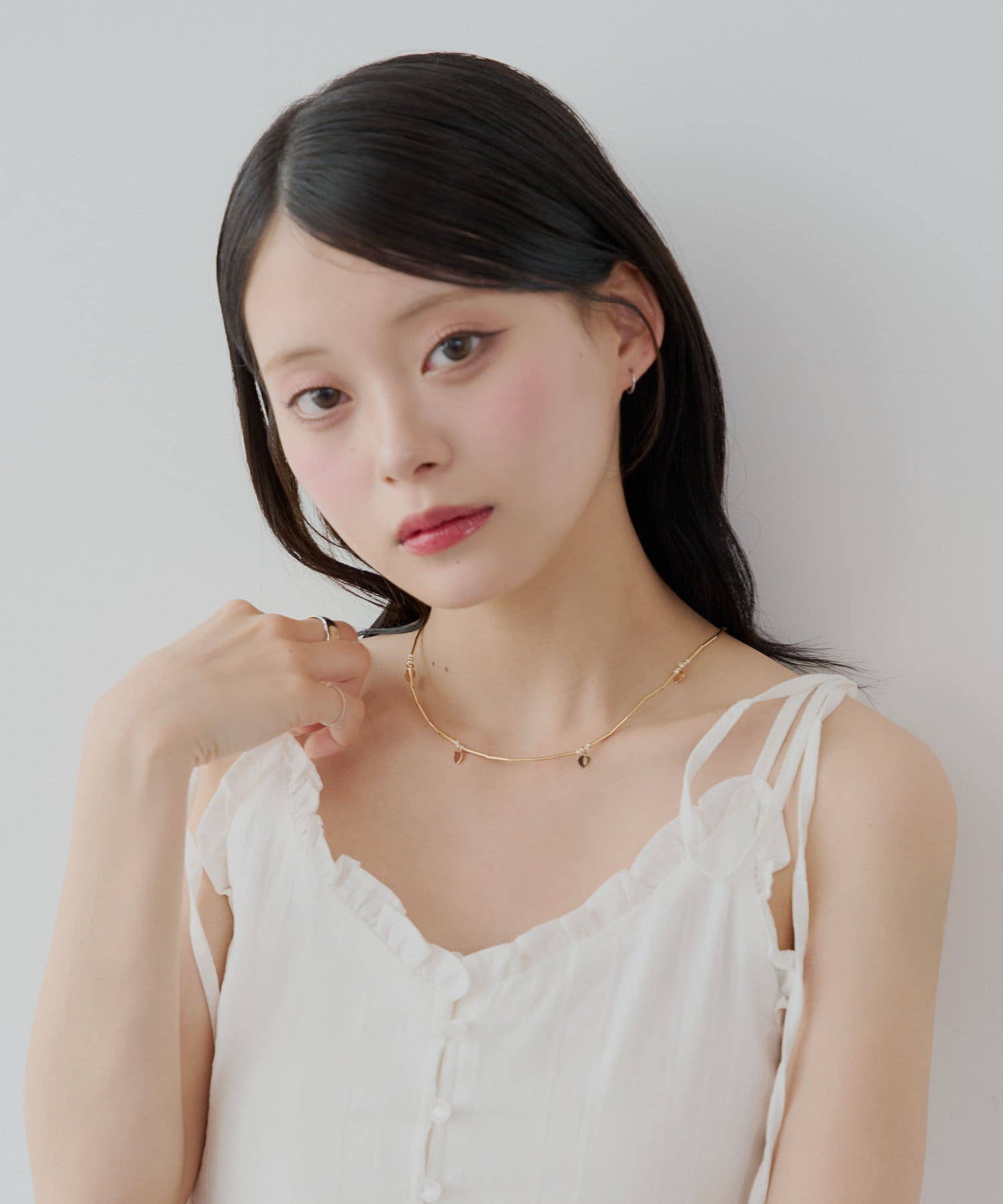 ・ネックレスはどんなスタイルにも合わせやすく、ハートモチーフのチャームがさりげないアクセントに◎