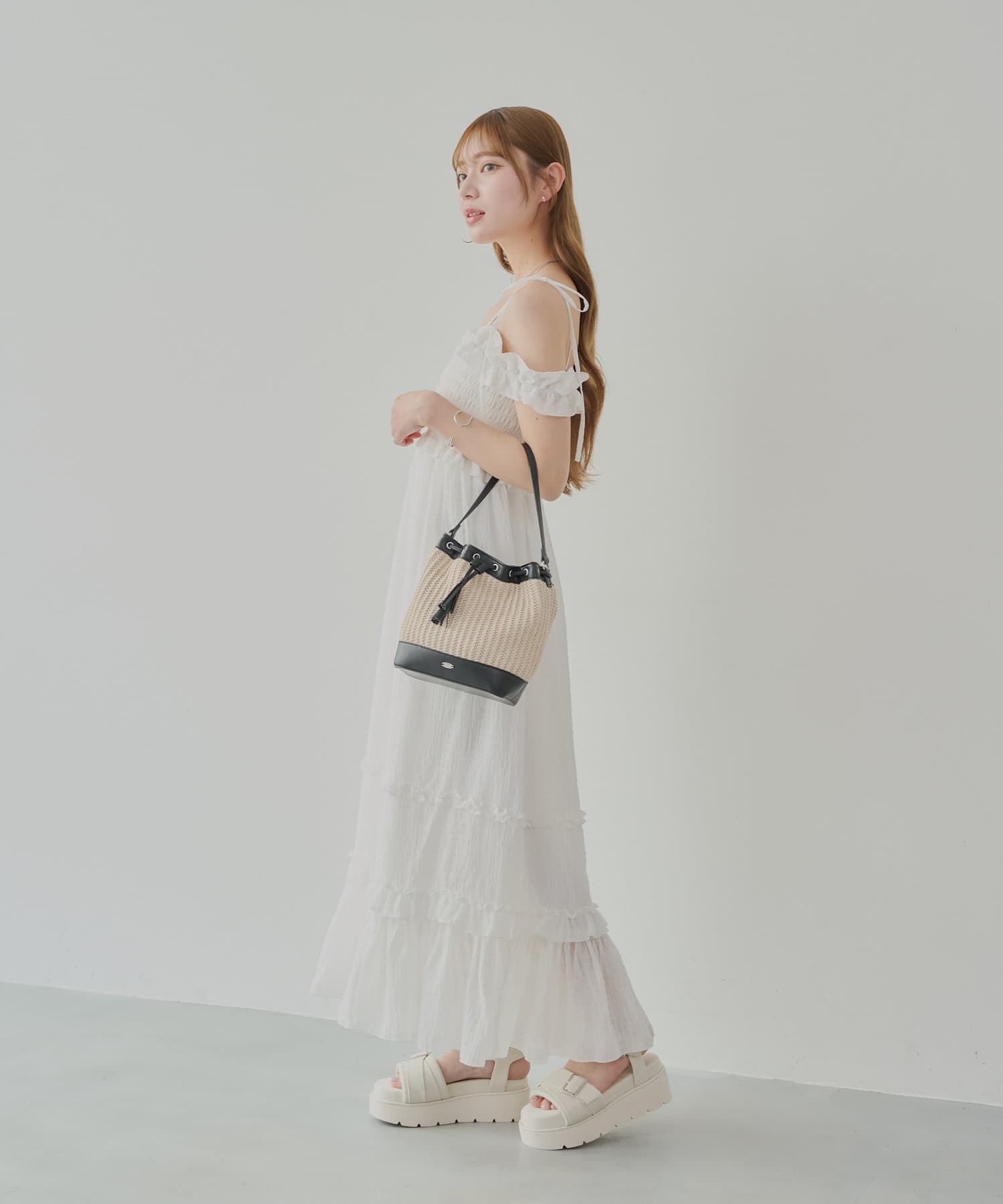可愛らしさと上品さを兼ね備えた雑材巾着ショルダー