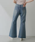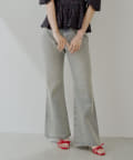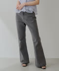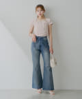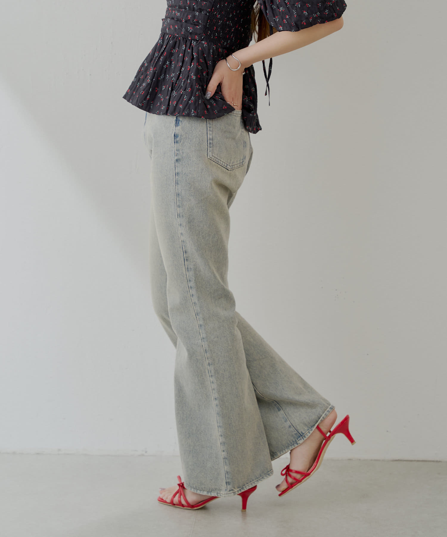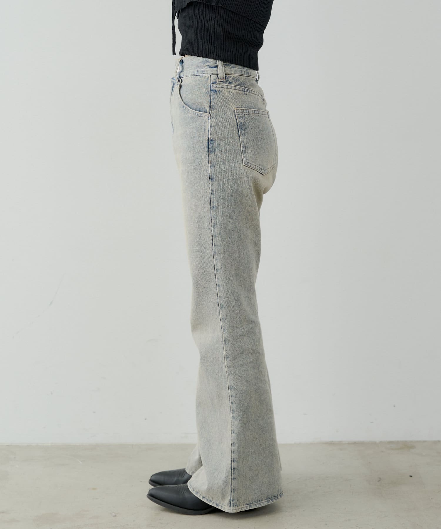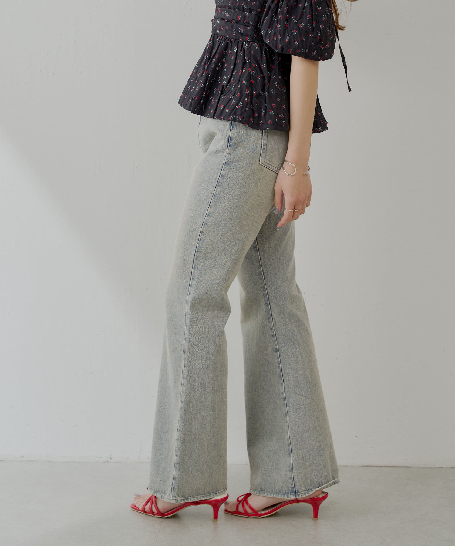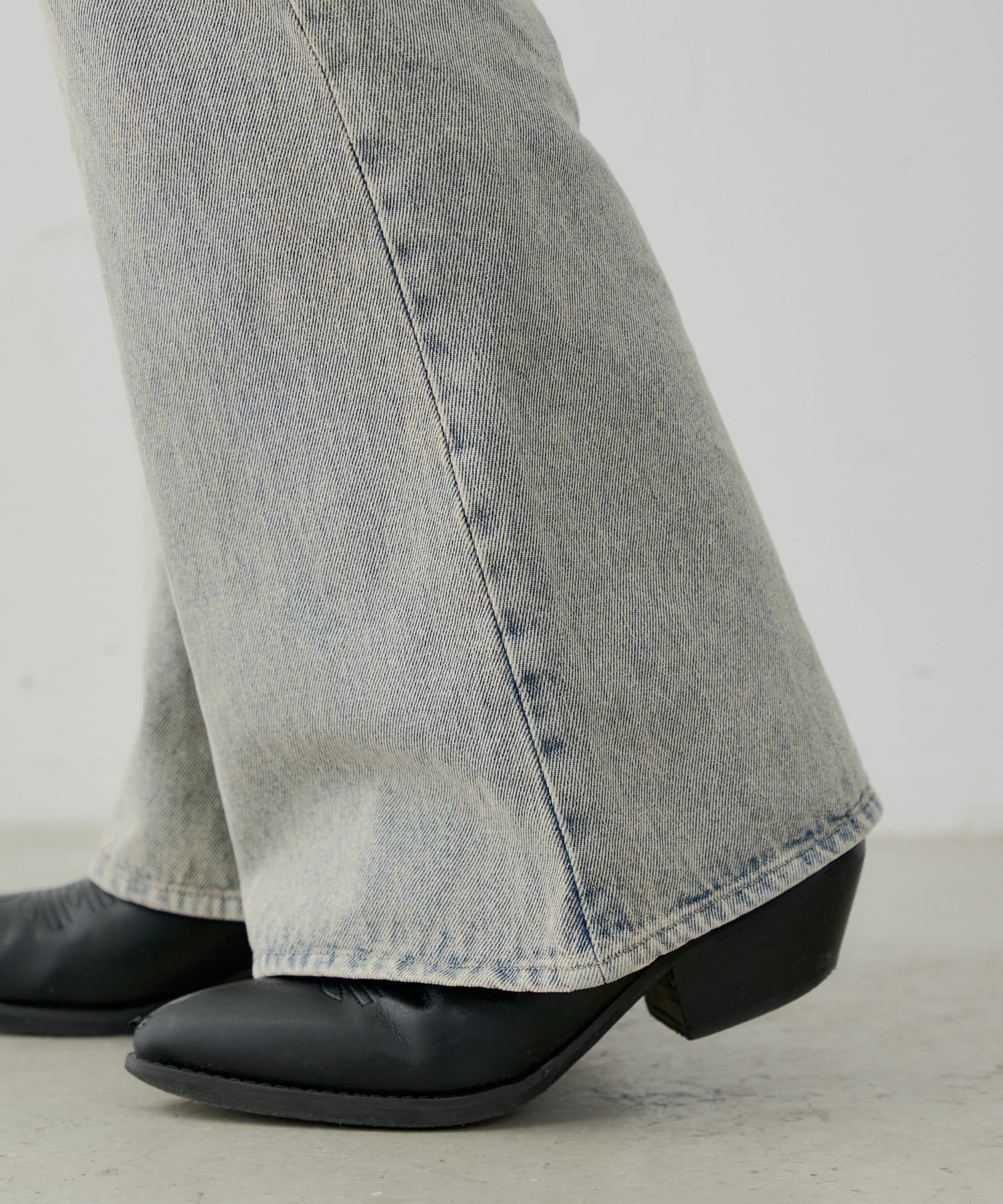 ・こなれ感たっぷりのウォッシュ加工が施されたタイトフレアデニム。