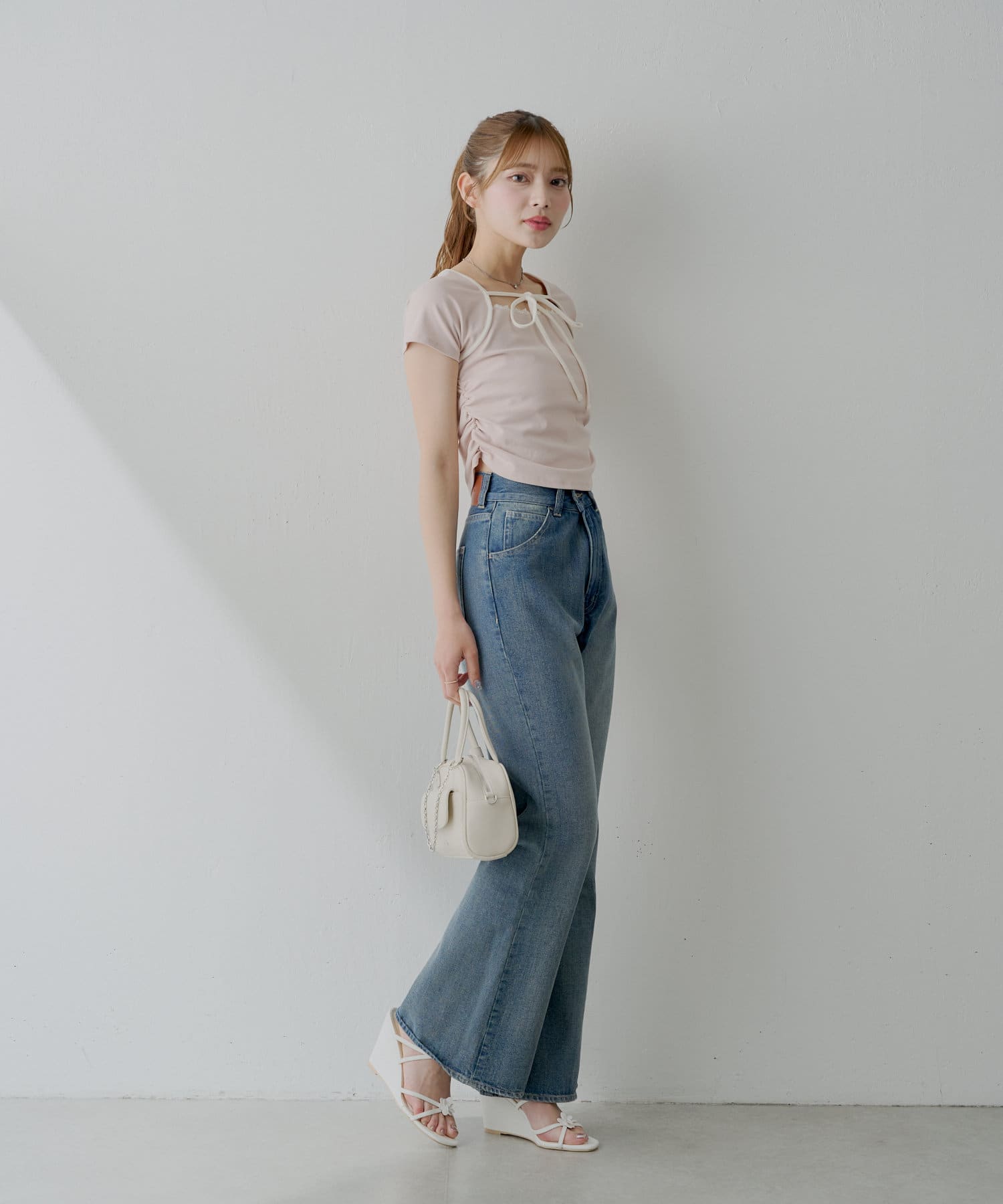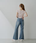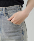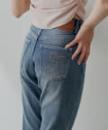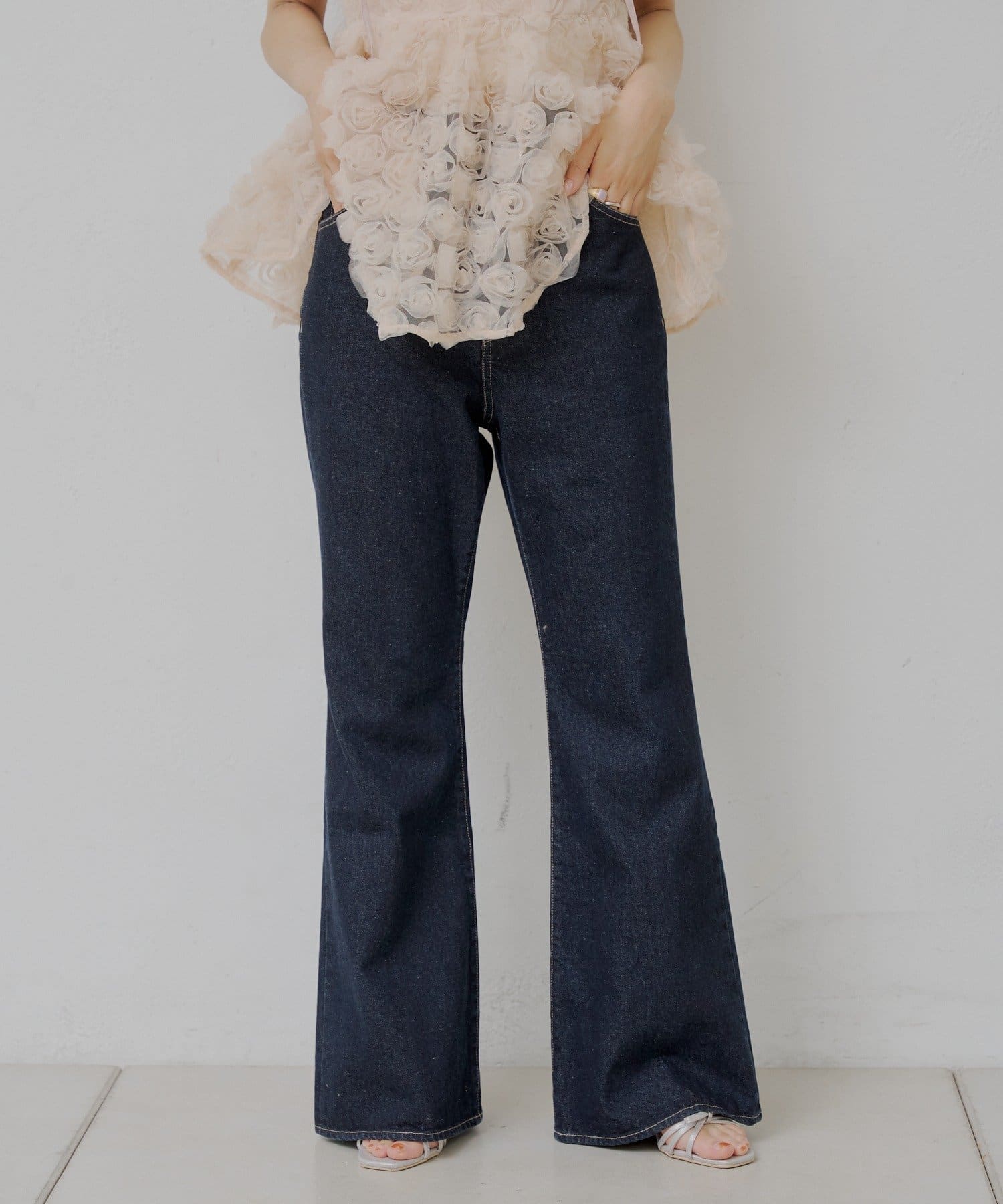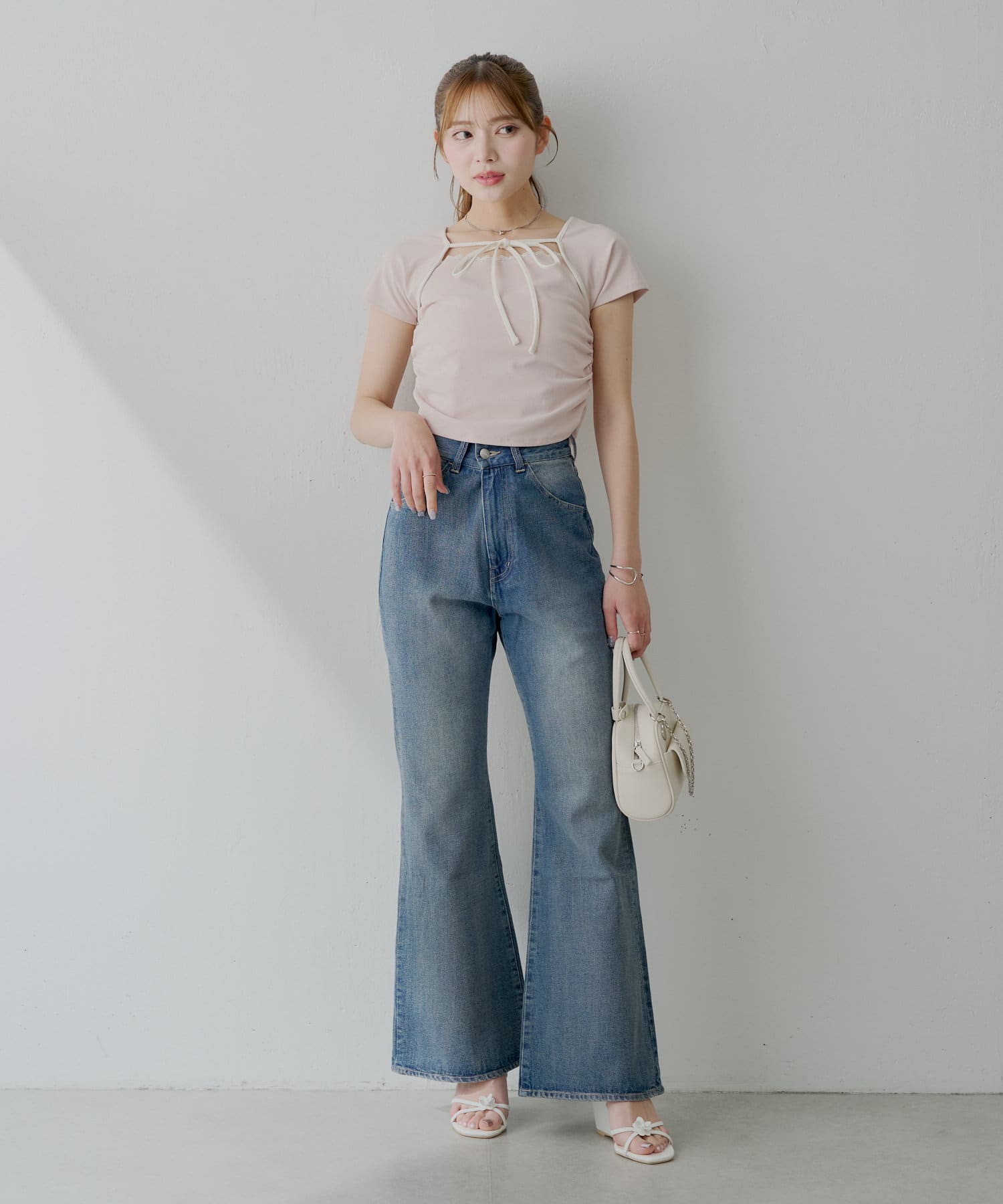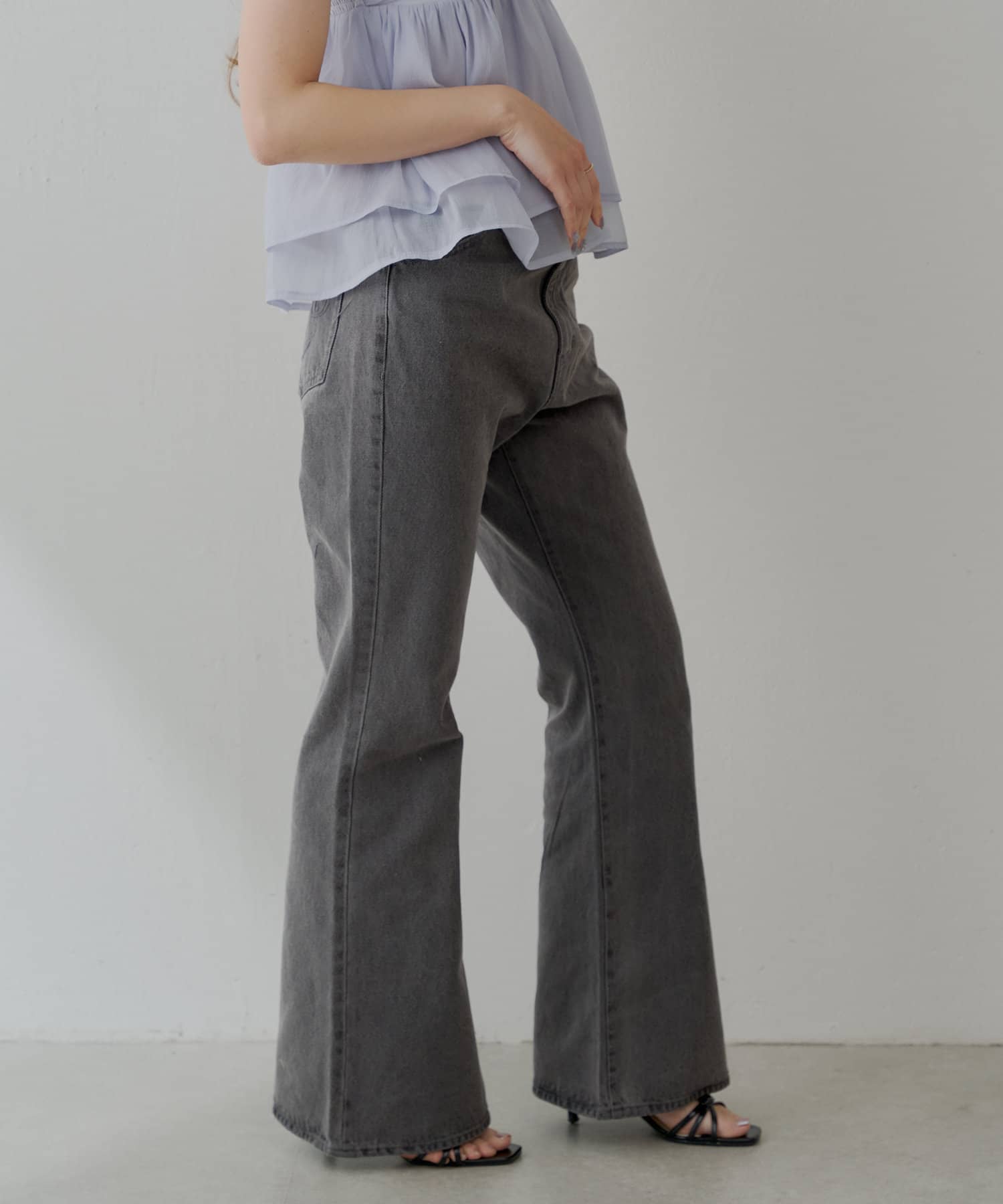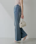 ・こなれ感たっぷりのウォッシュ加工が施されたタイトフレアデニム。